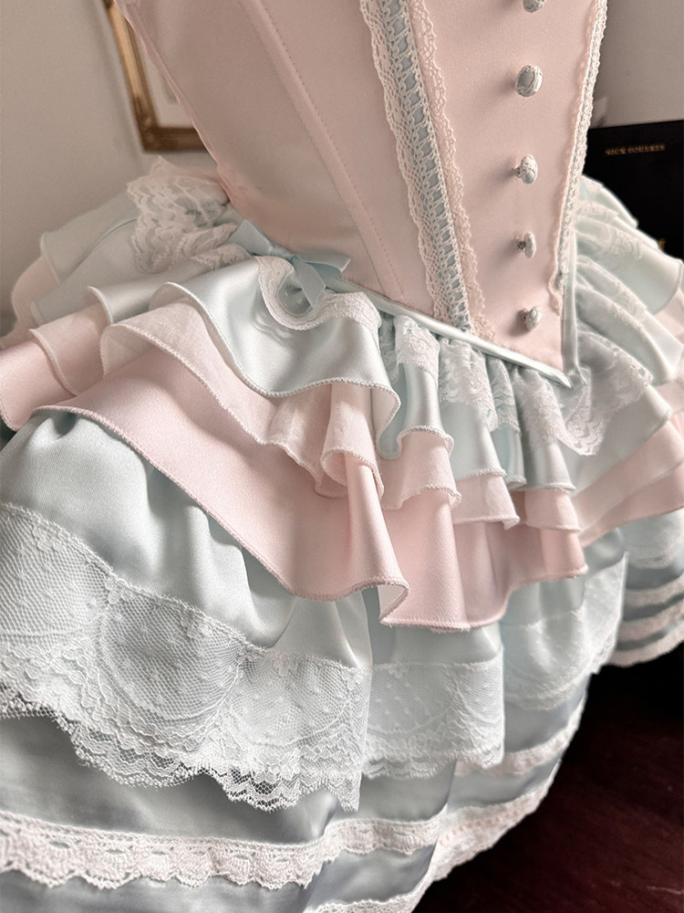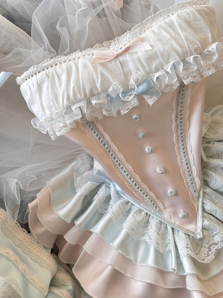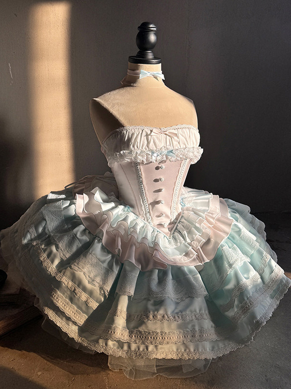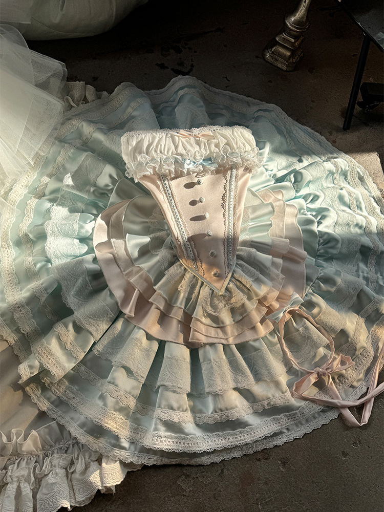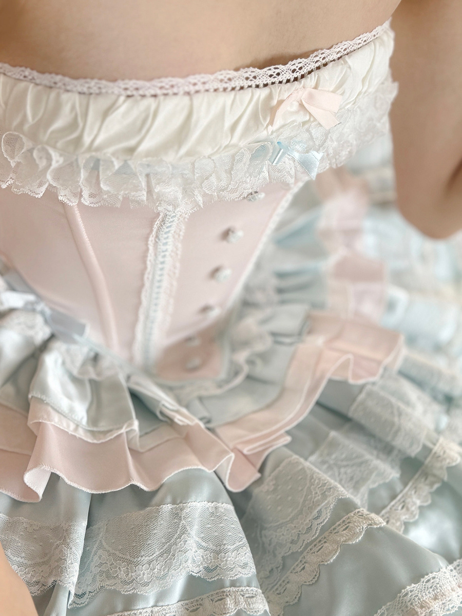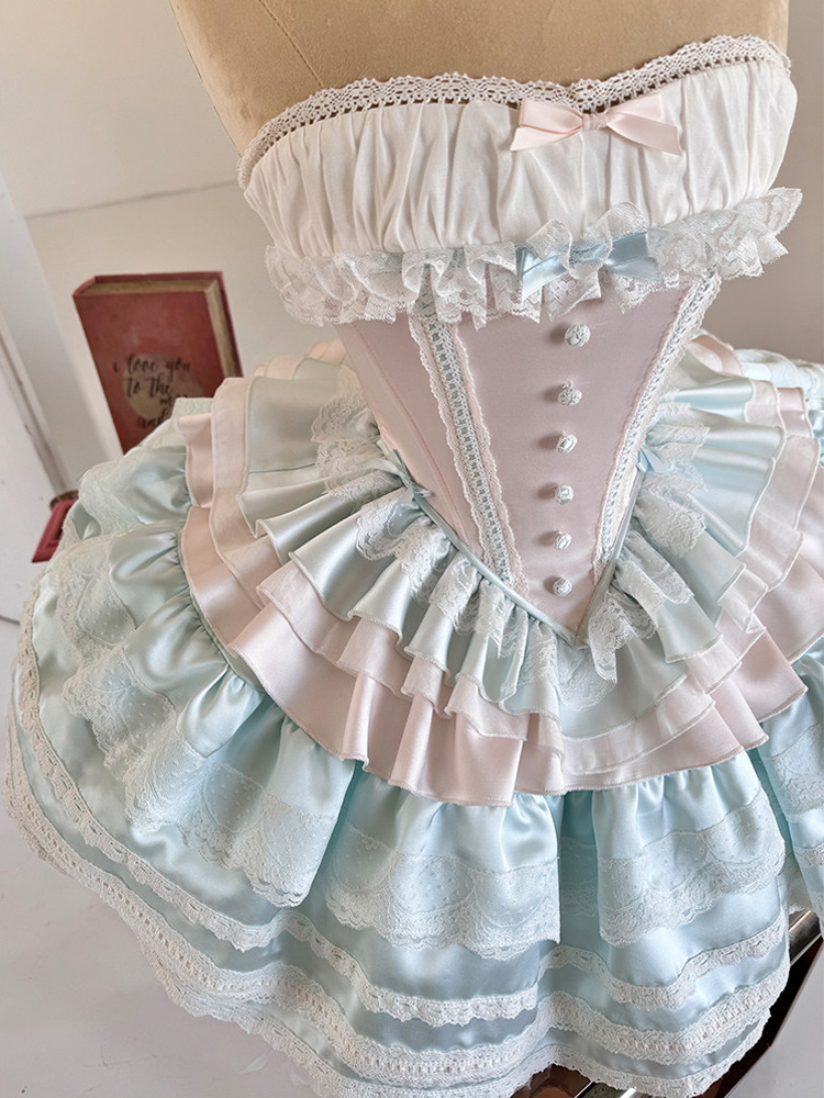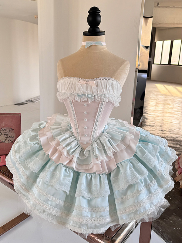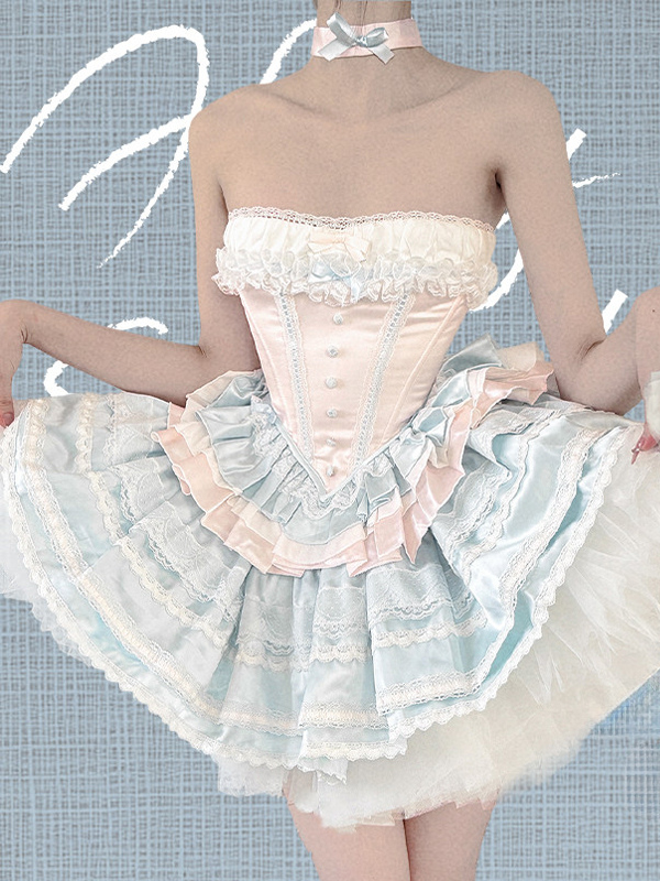 Ballet Lolita Dress Light Sky Blue Top Skirt Ruffles Bows Classic Sleeveless Dress Sets