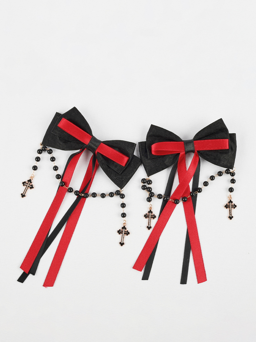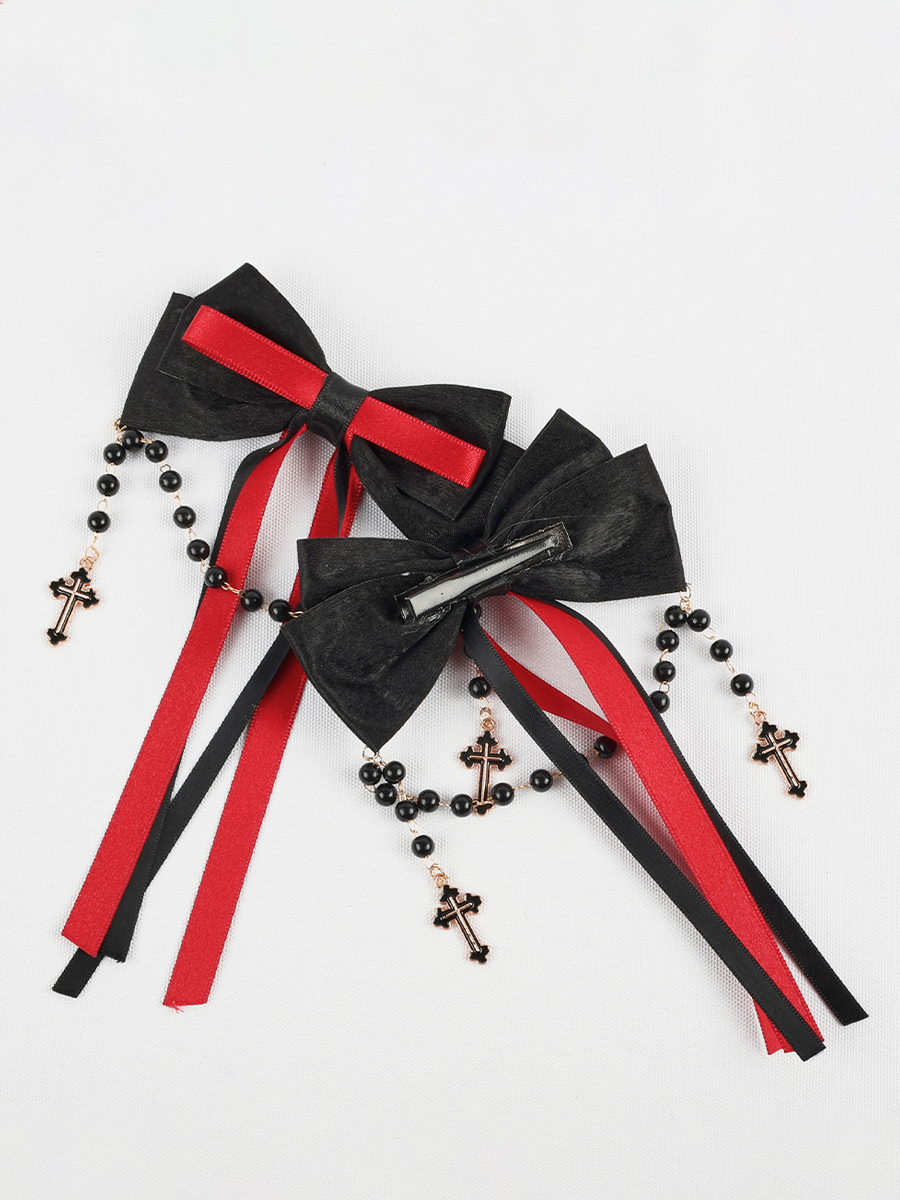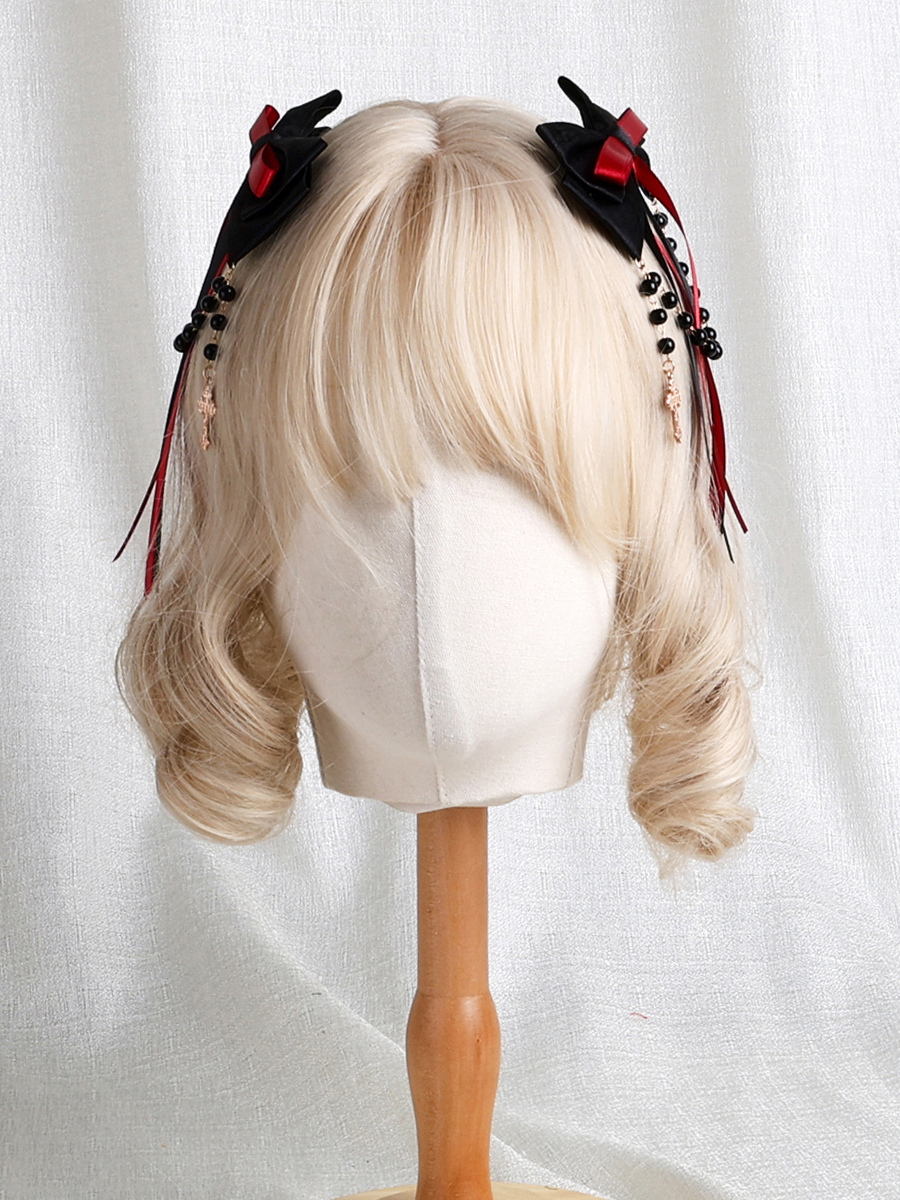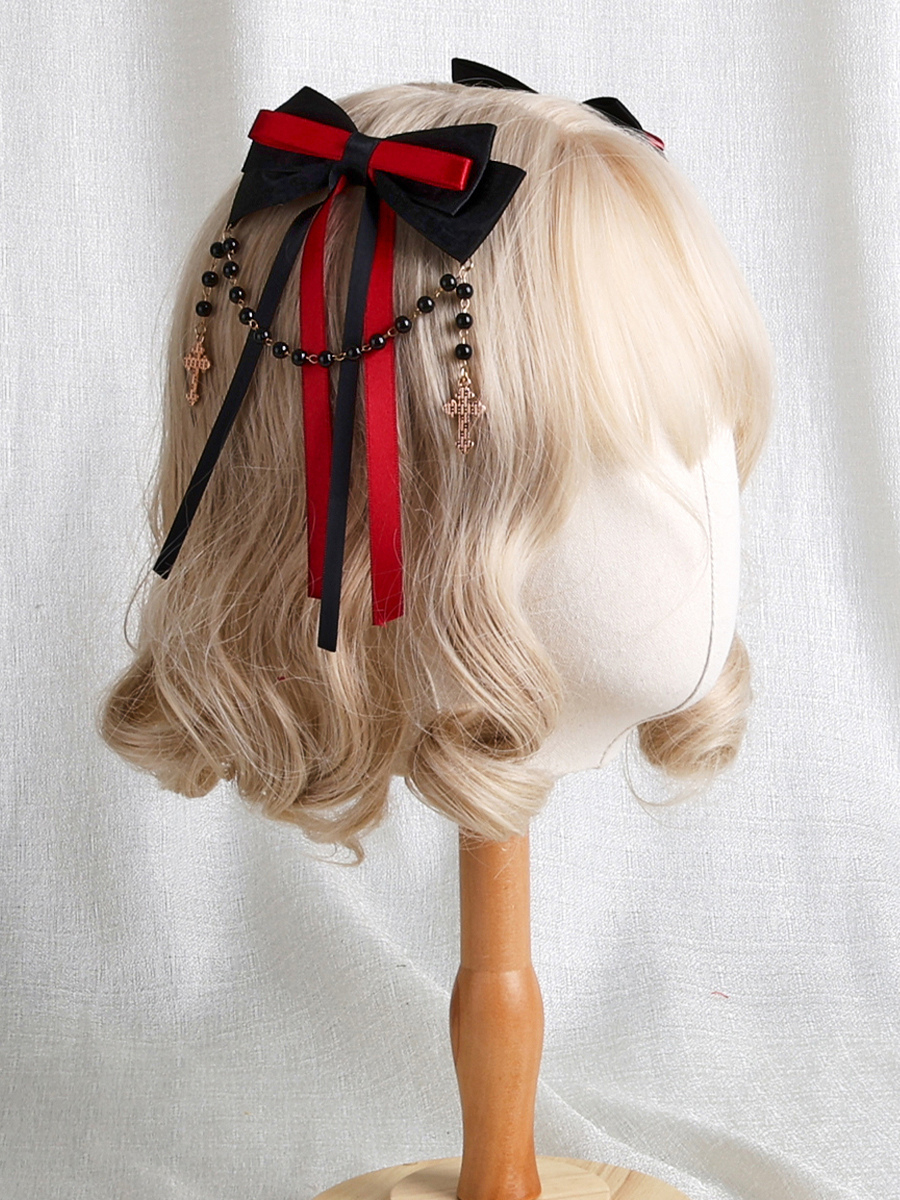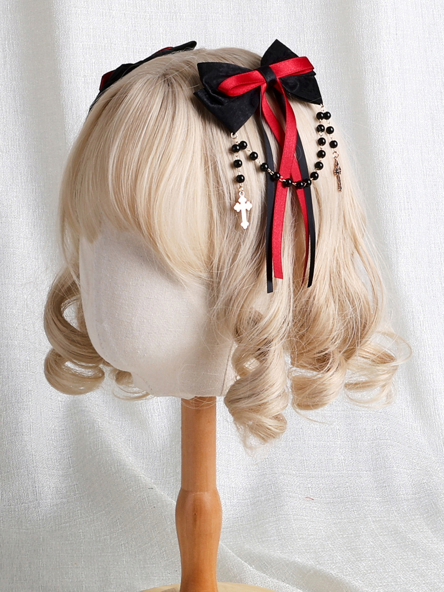 Accesorio para la cabeza de lolita gótica con volantes de encaje rojo y negro y lazos