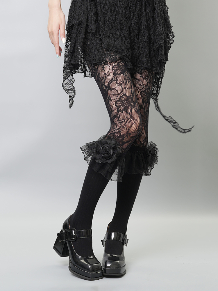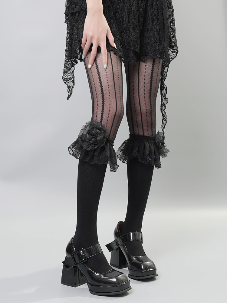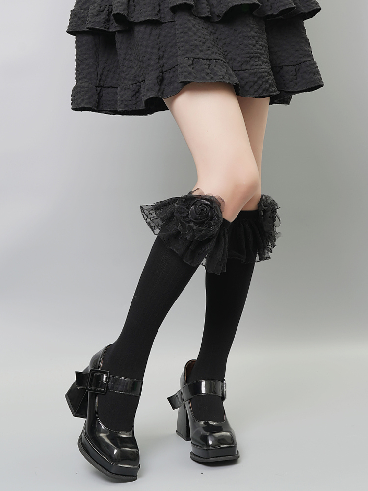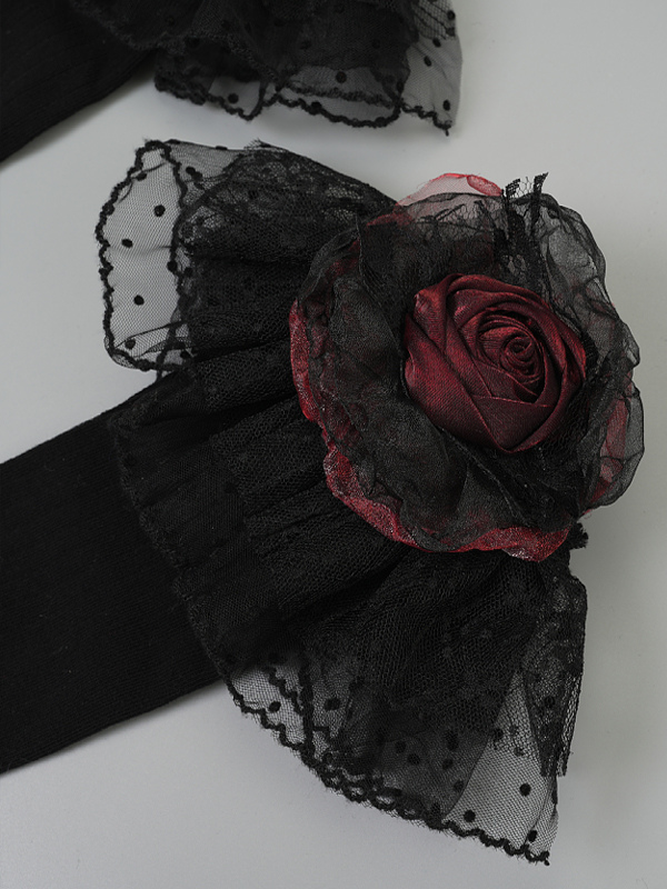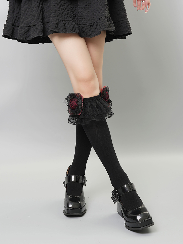 Calcetines góticos de lolita hasta la pantorrilla con rosas rojas y negras