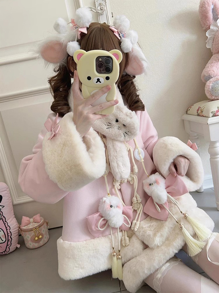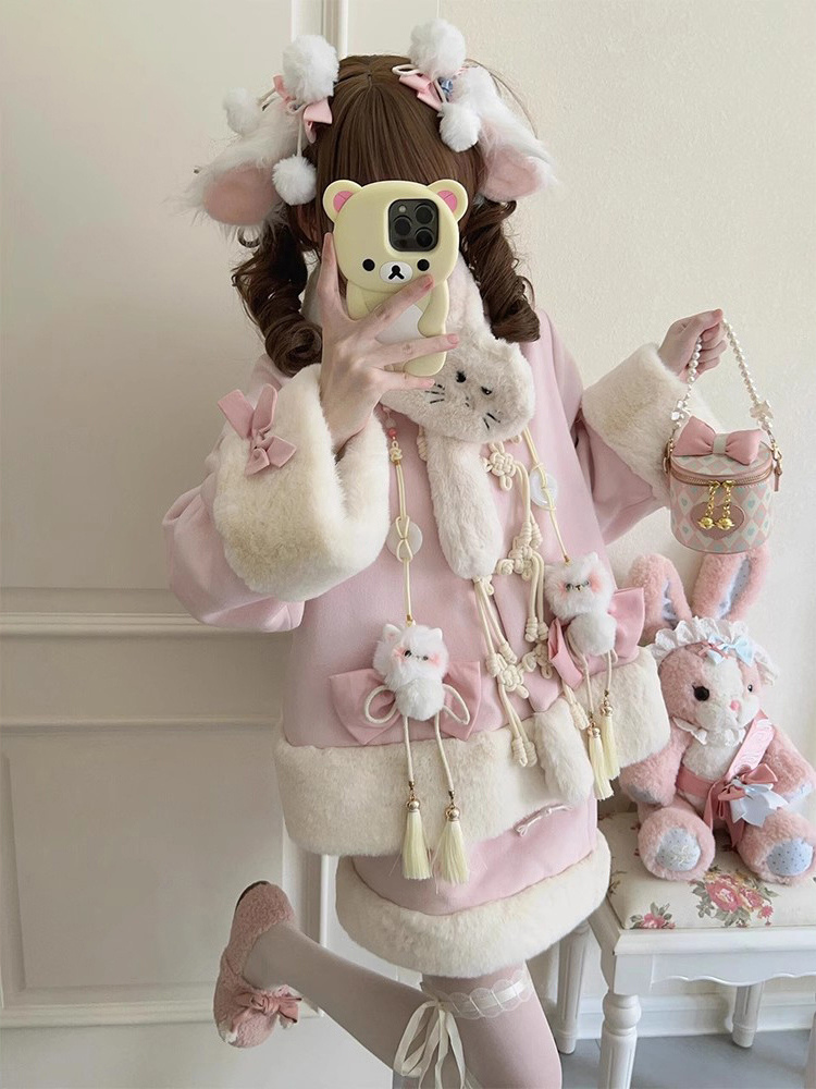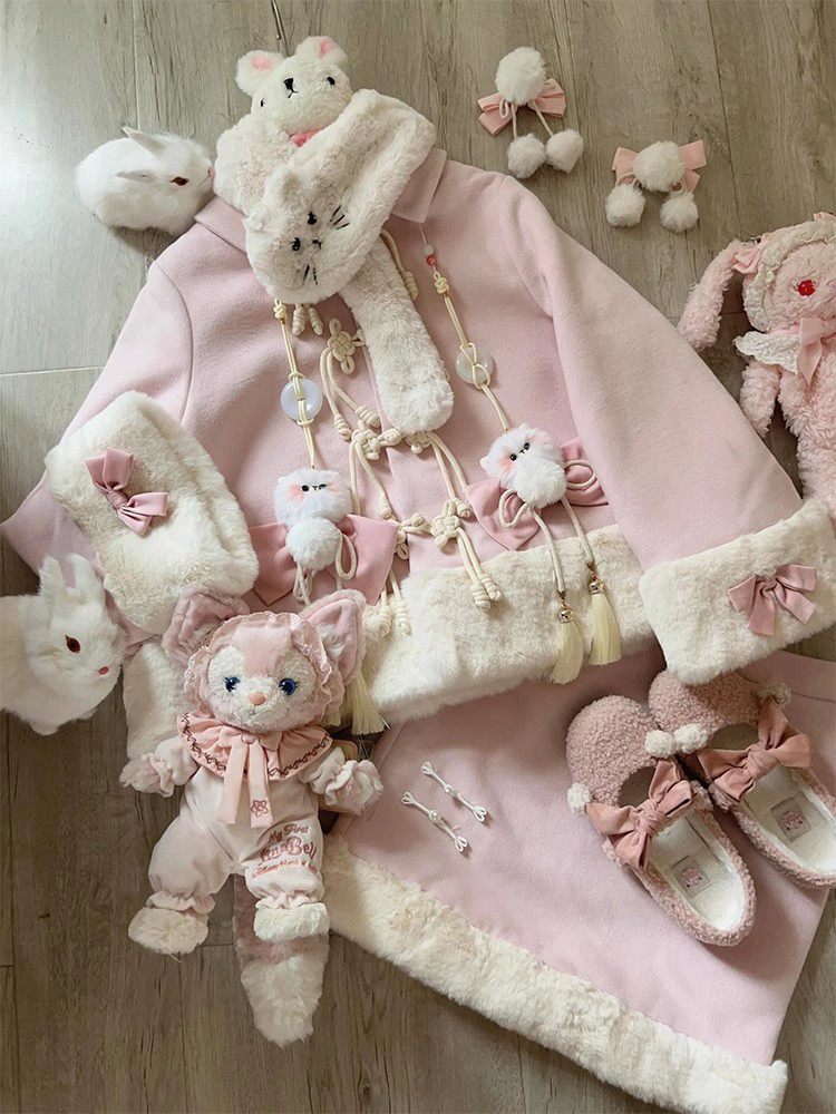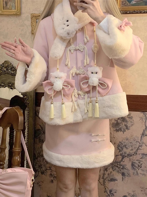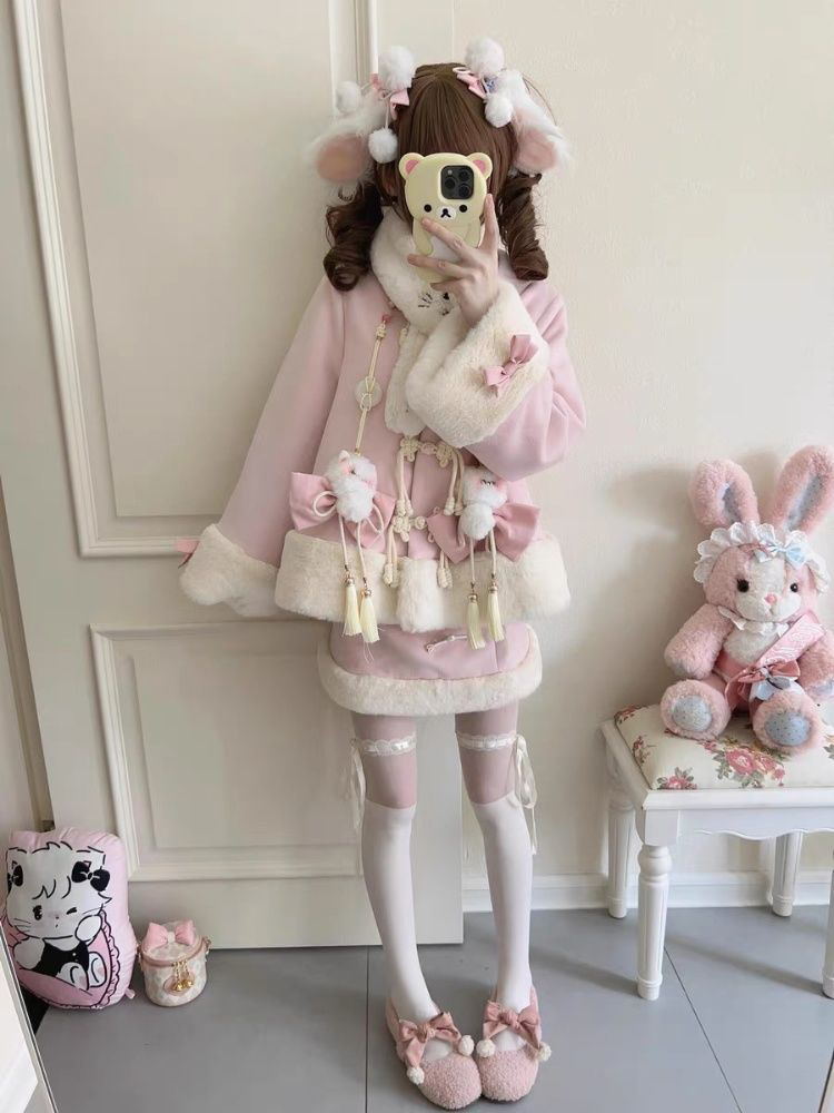 Conjunto de falda y abrigo de manga larga rosa de estilo dulce Lolita