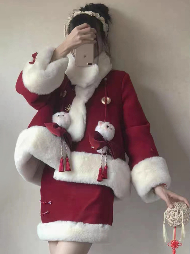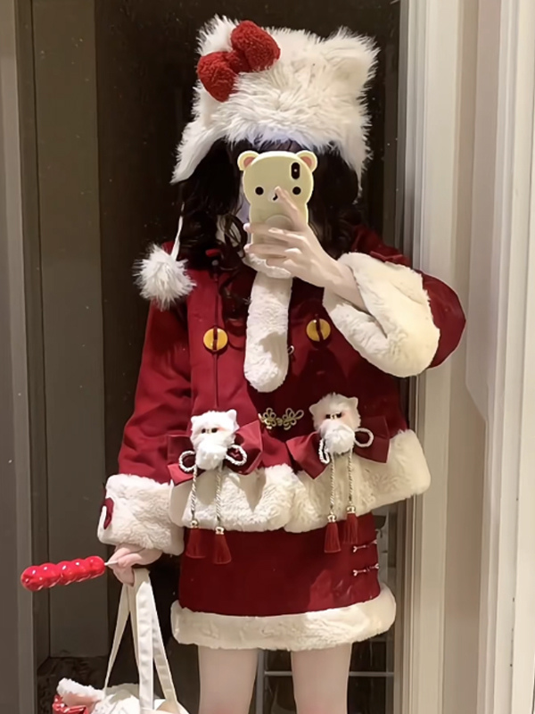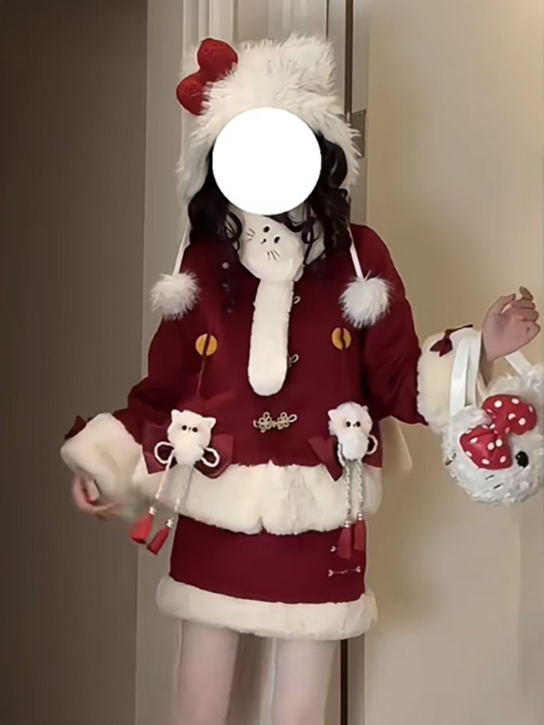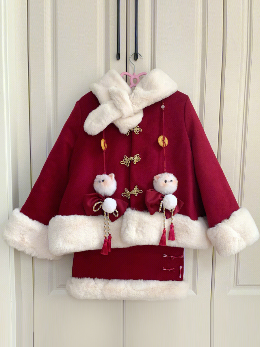 Conjunto de falda y abrigo de manga larga rosa de estilo dulce Lolita