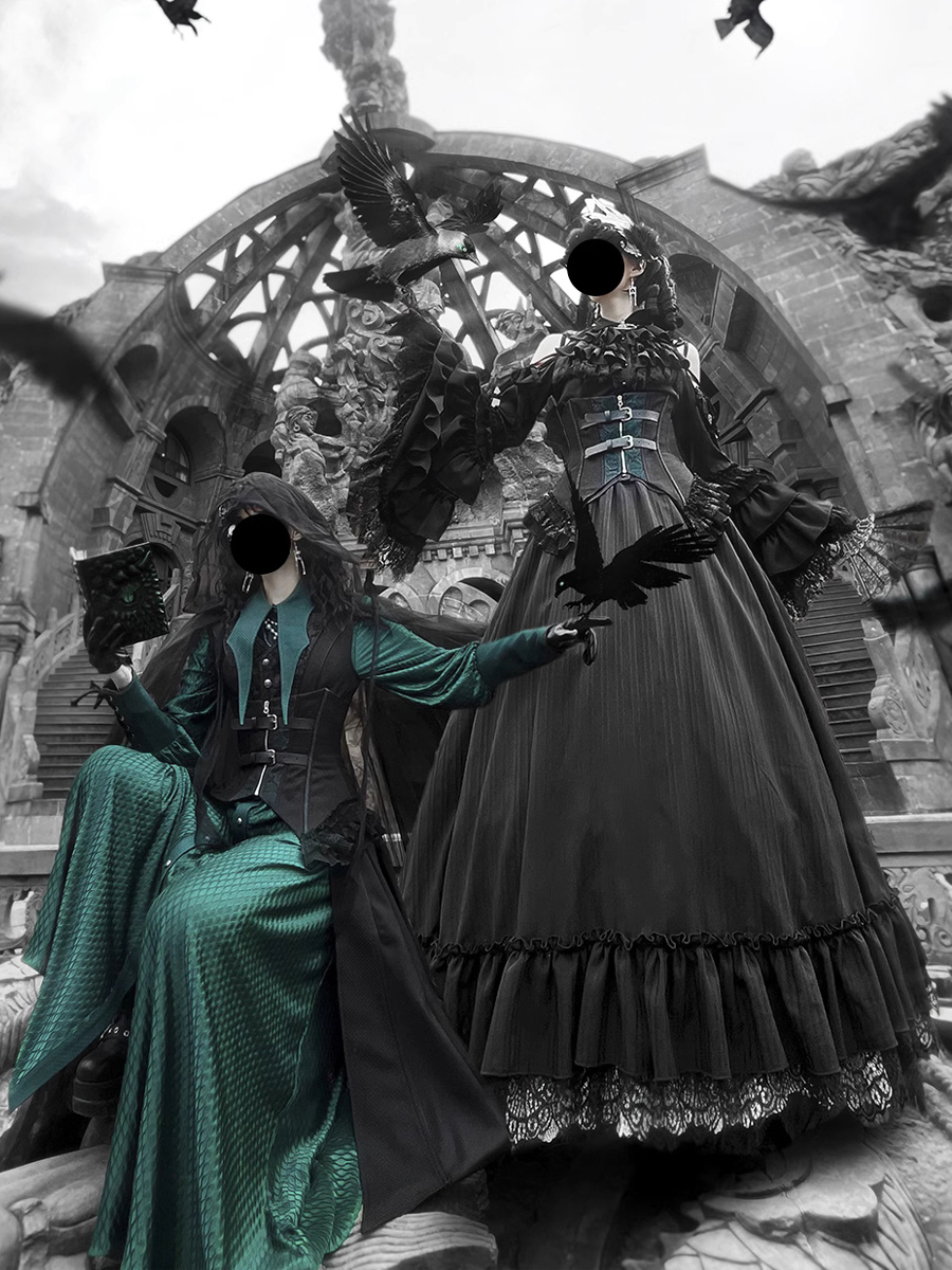 Conjunto Prince Gothic Ouji Lolita con camisa y chaleco de manga larga negros