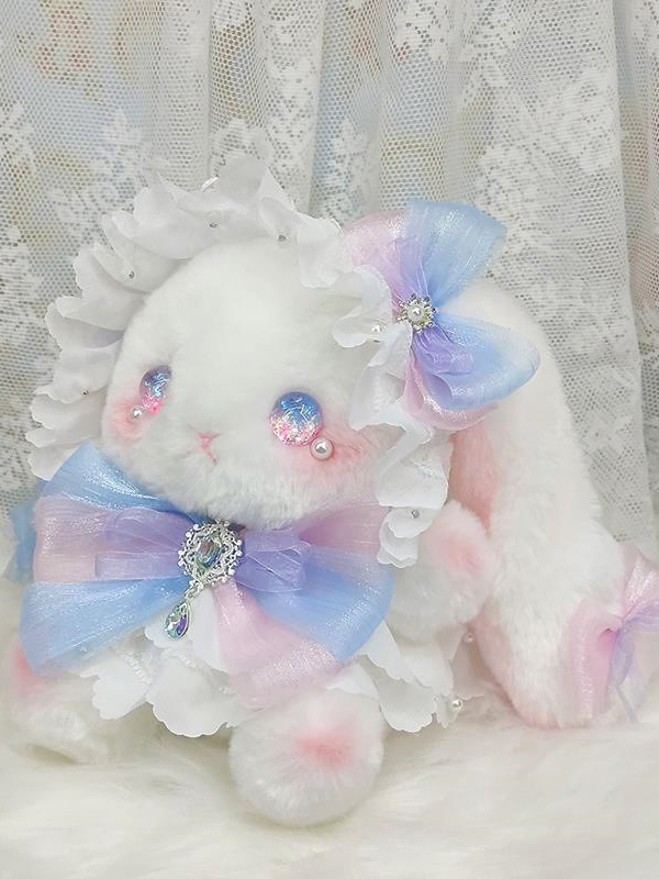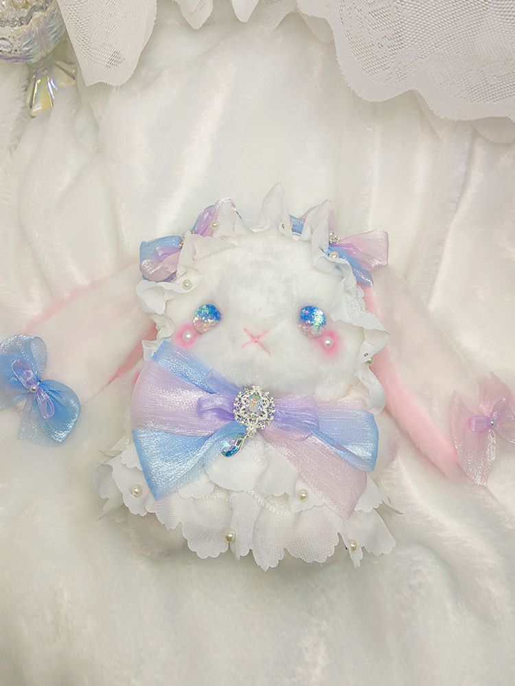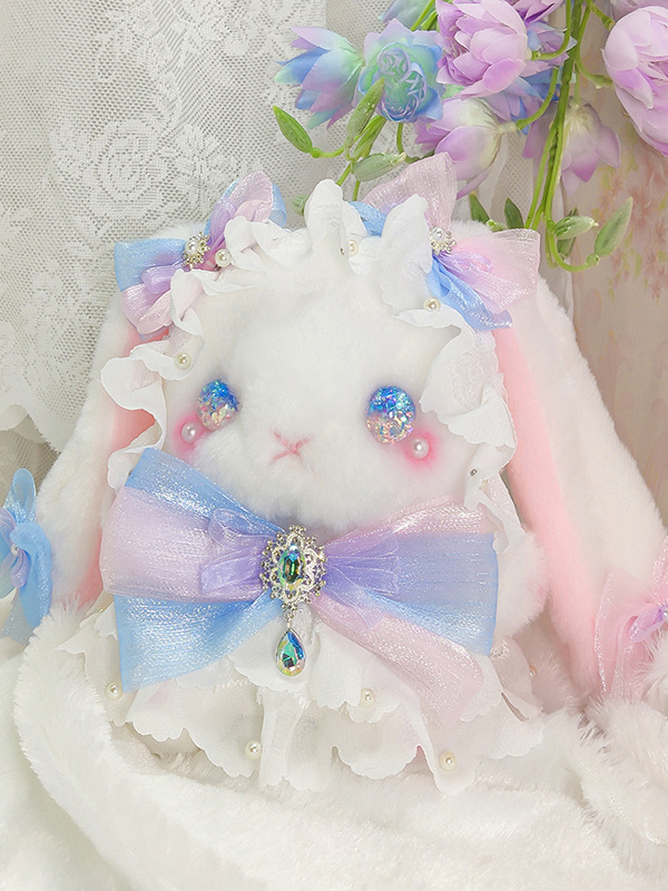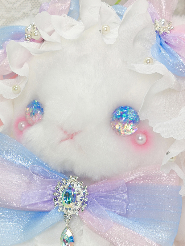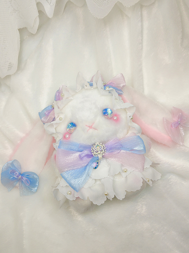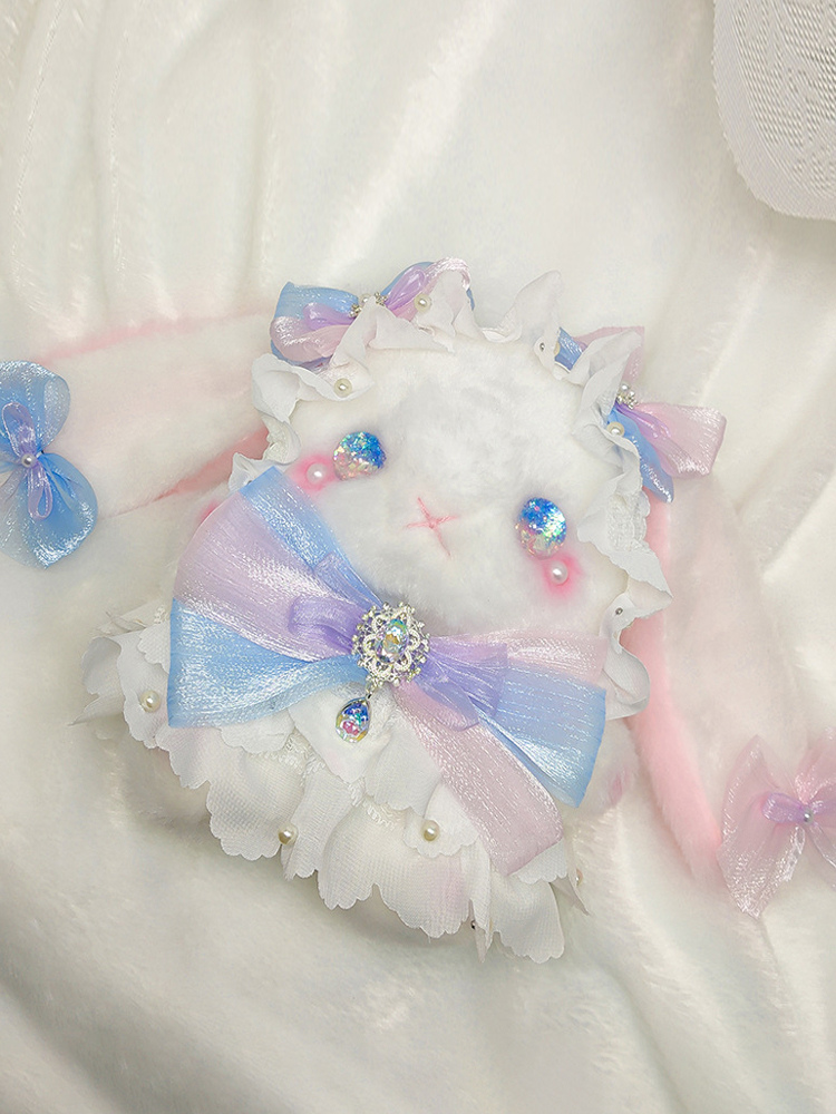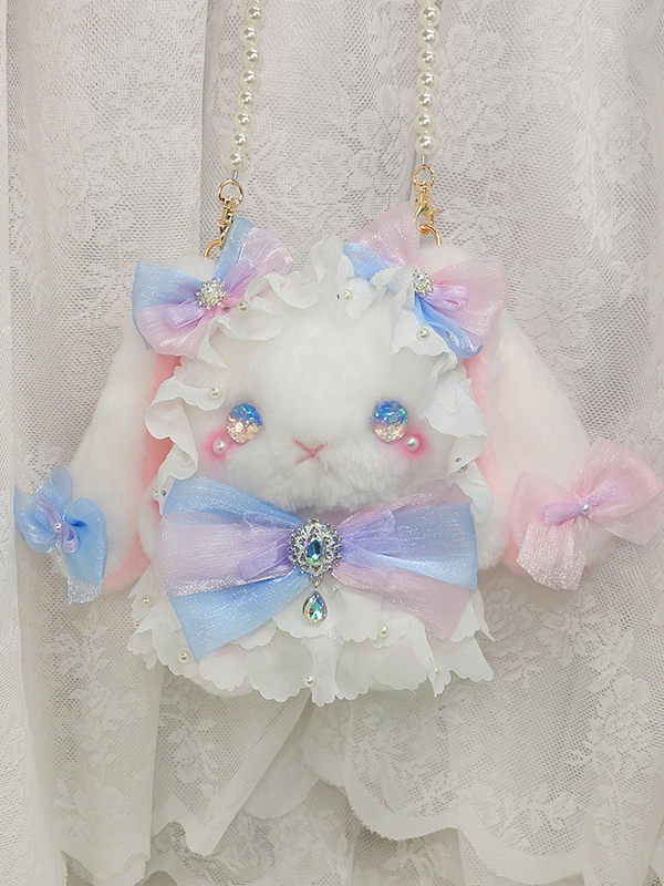 Lindo bolso de mano Kawaii Lolita con diseño de conejo poliéster blanco volantes y pedrería bolso cruzado con estampado de conejo accesorios Lolita