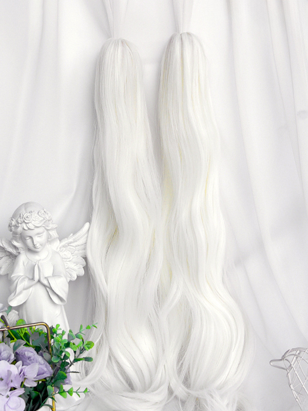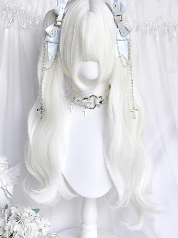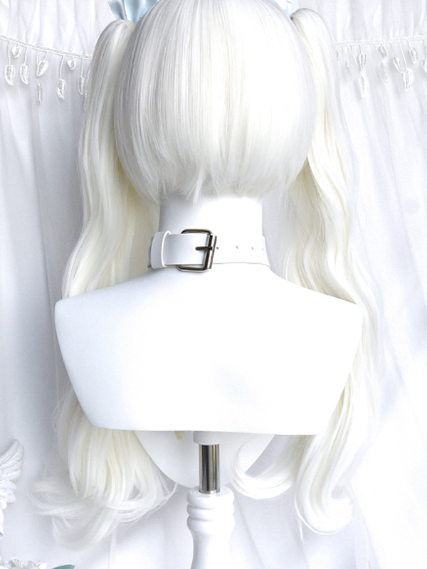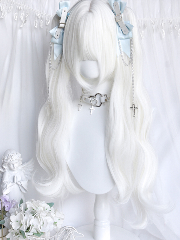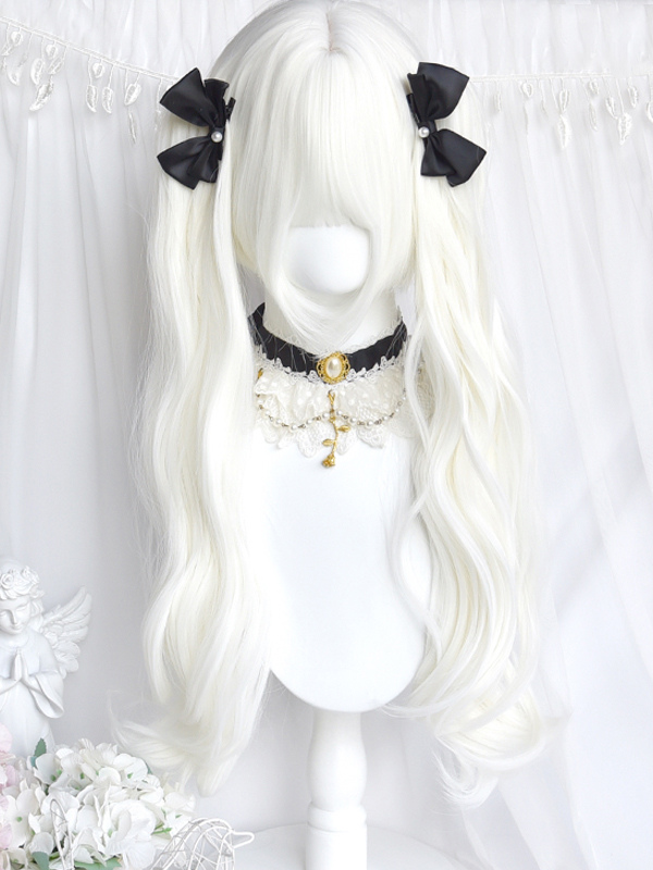 Peluca ROCLolita blanca de fibra resistente al calor con dos coletas rizadas y flequillo accesorios Lolita