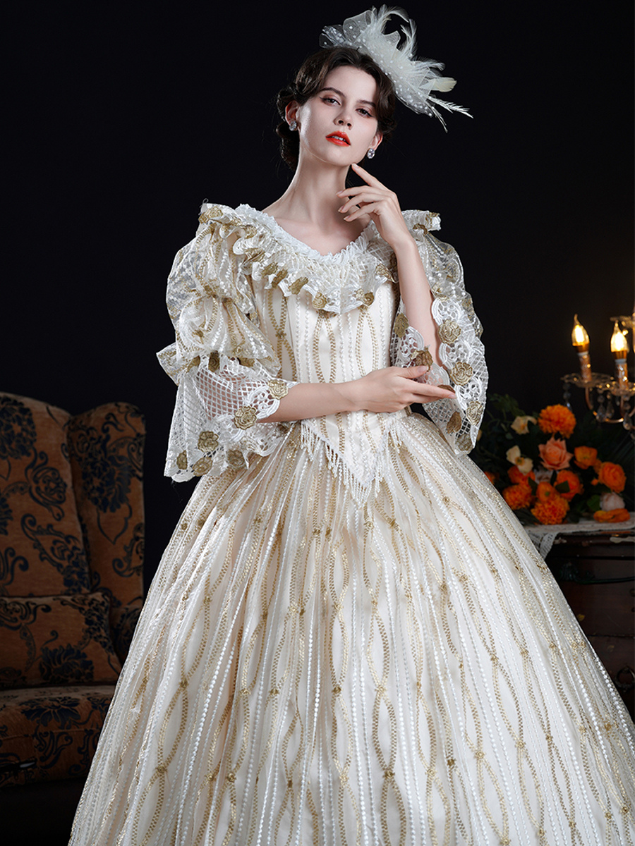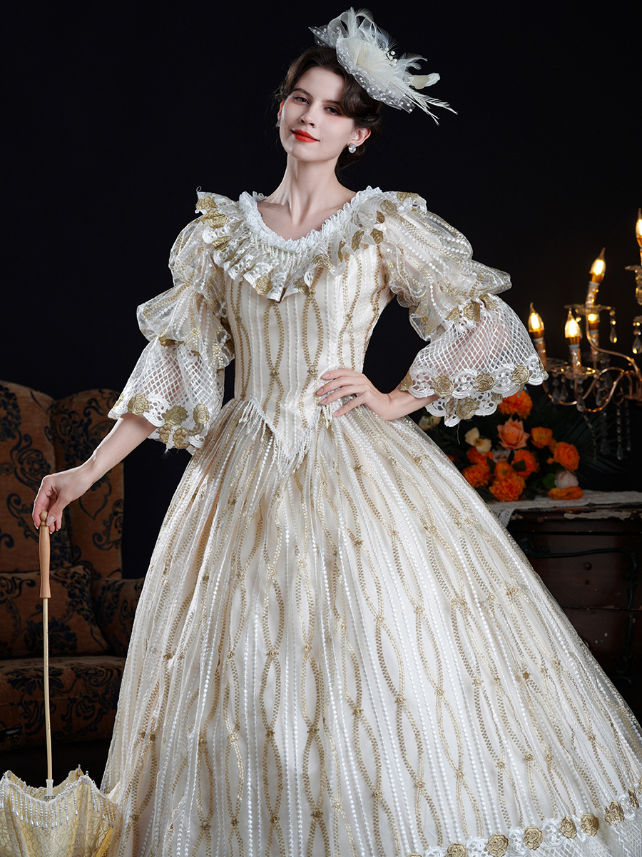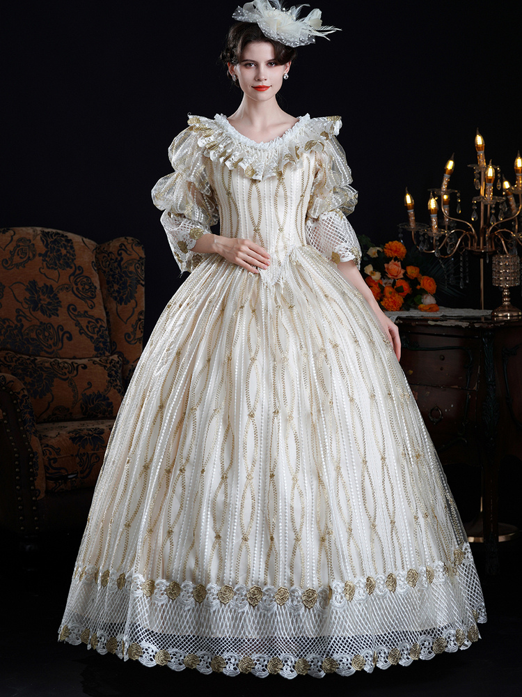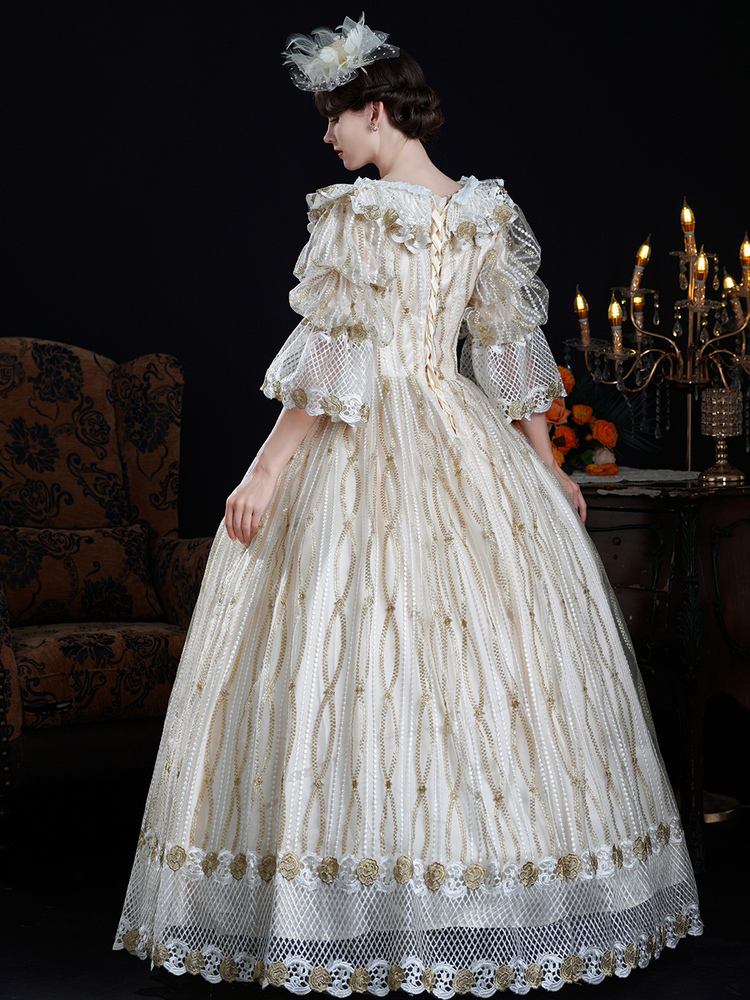 Vestido barroco rococó vintage vestido de baile victoriano poliéster mangas 3/4 encaje champán vestidos Lolita