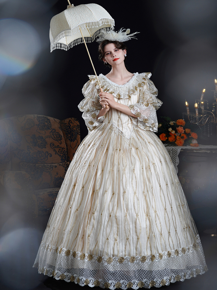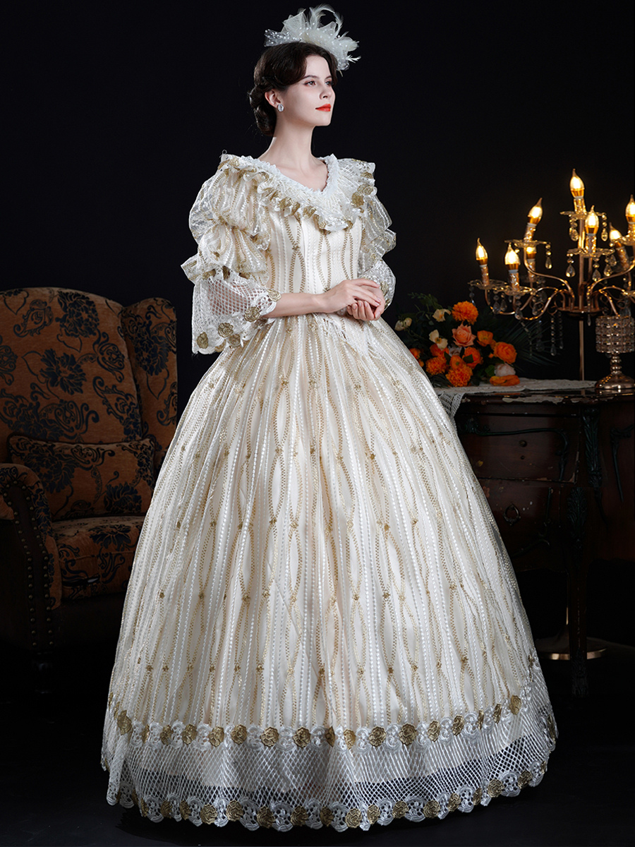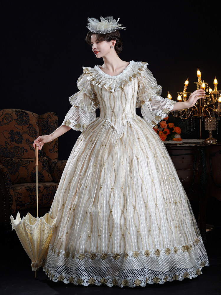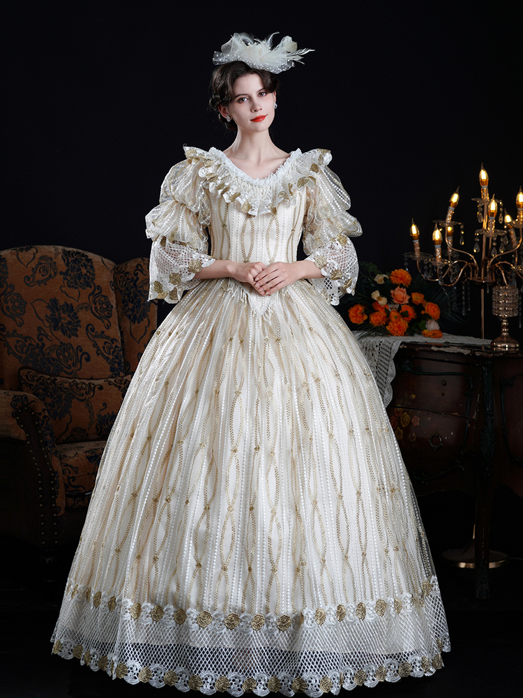 Vestido barroco rococó vintage vestido de baile victoriano poliéster mangas 3/4 encaje champán vestidos Lolita