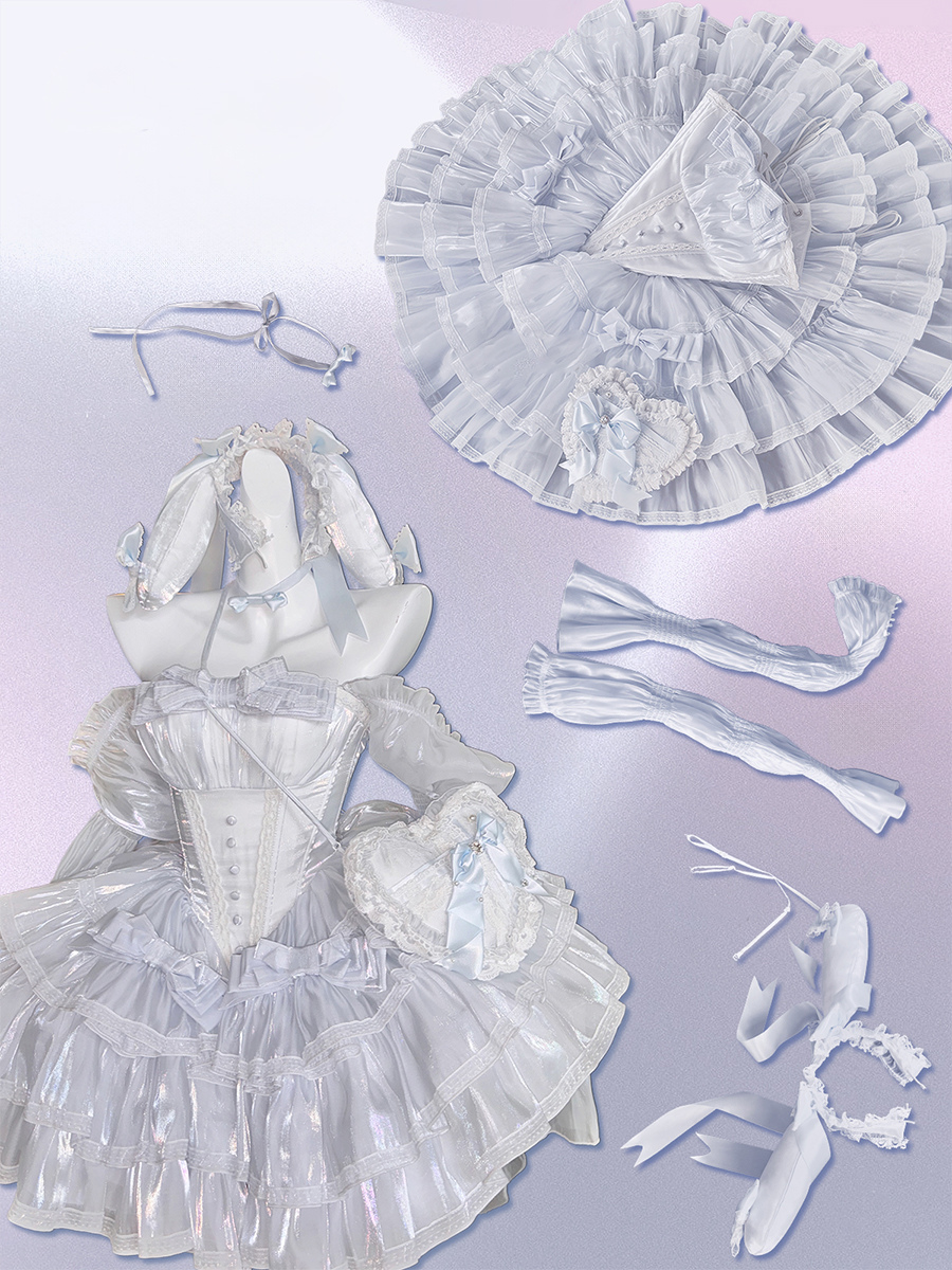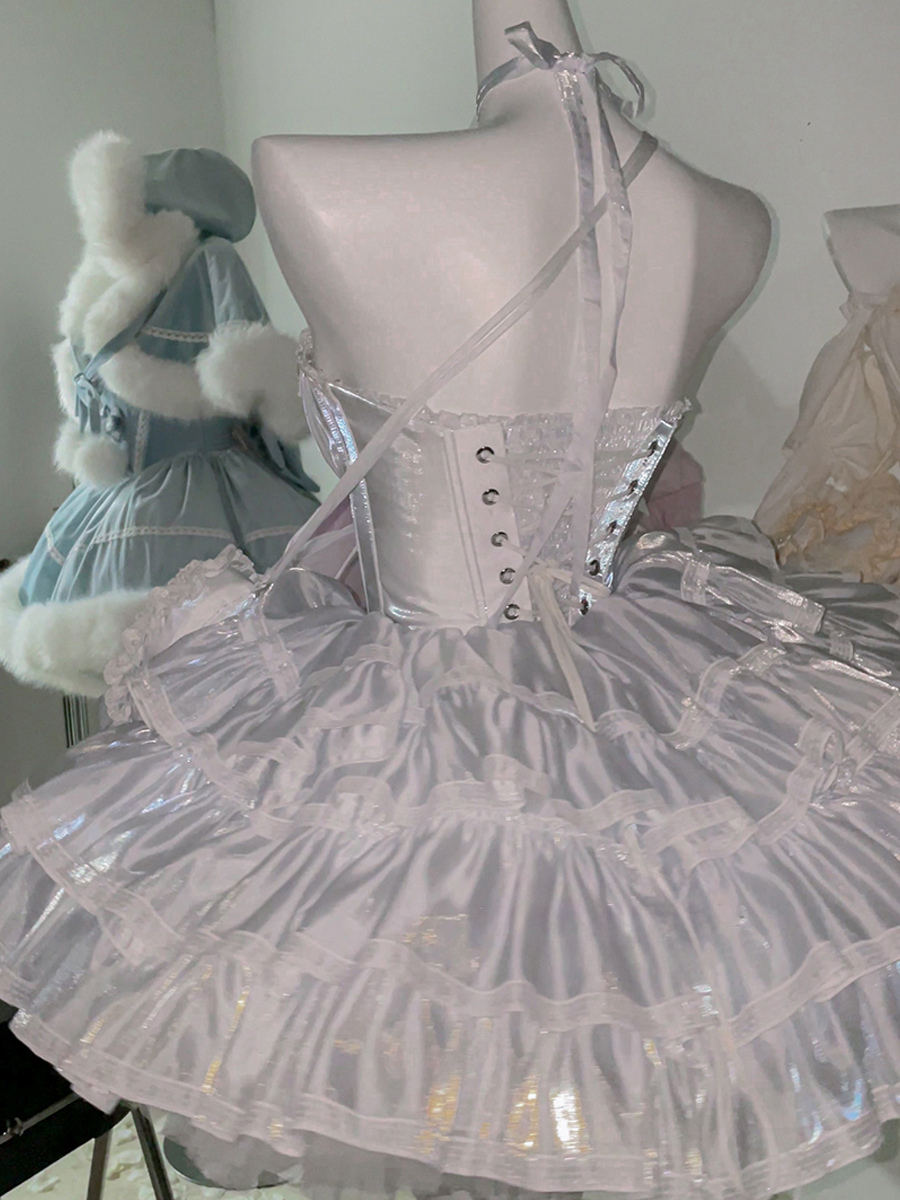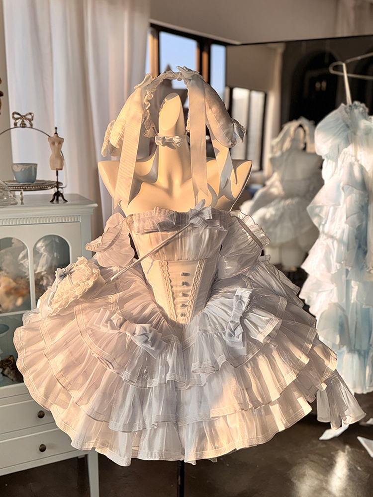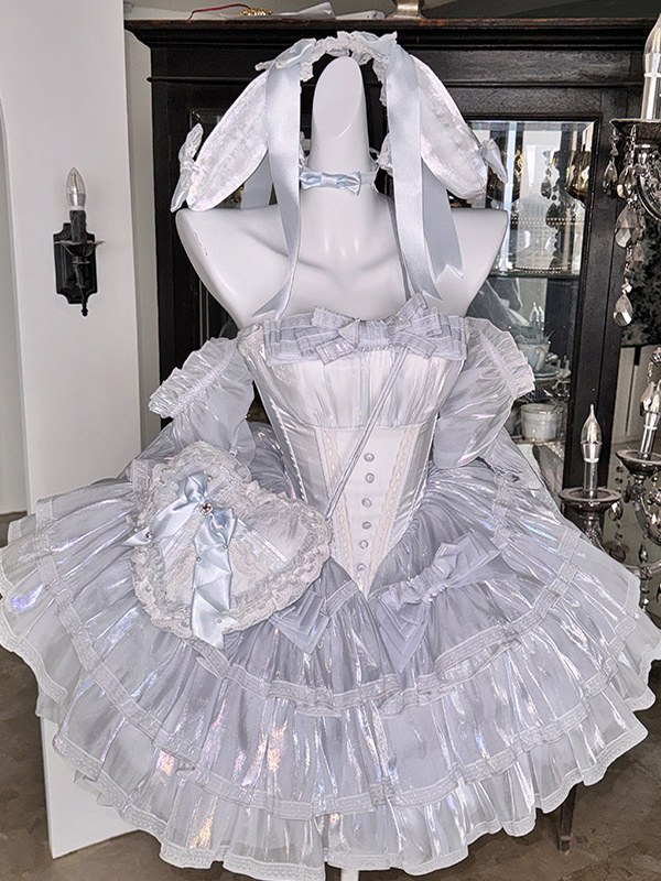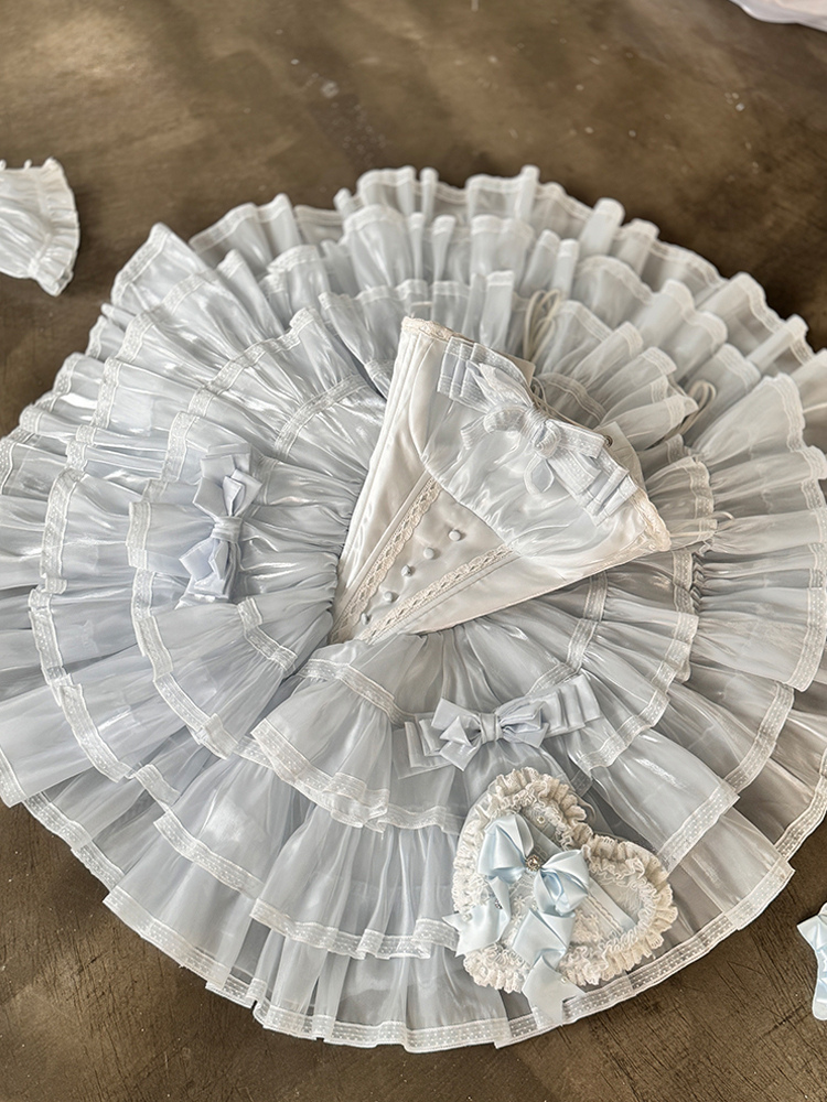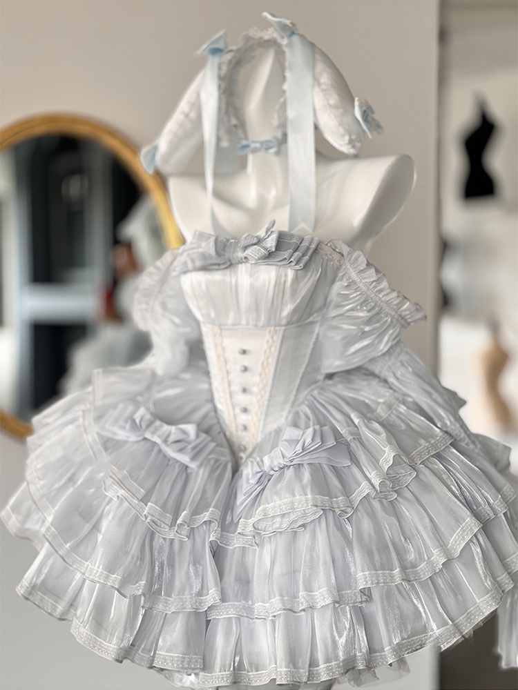 Vestido de Lolita azul con mangas largas y encaje ideal para fiestas de té de poliéster y con cordones.