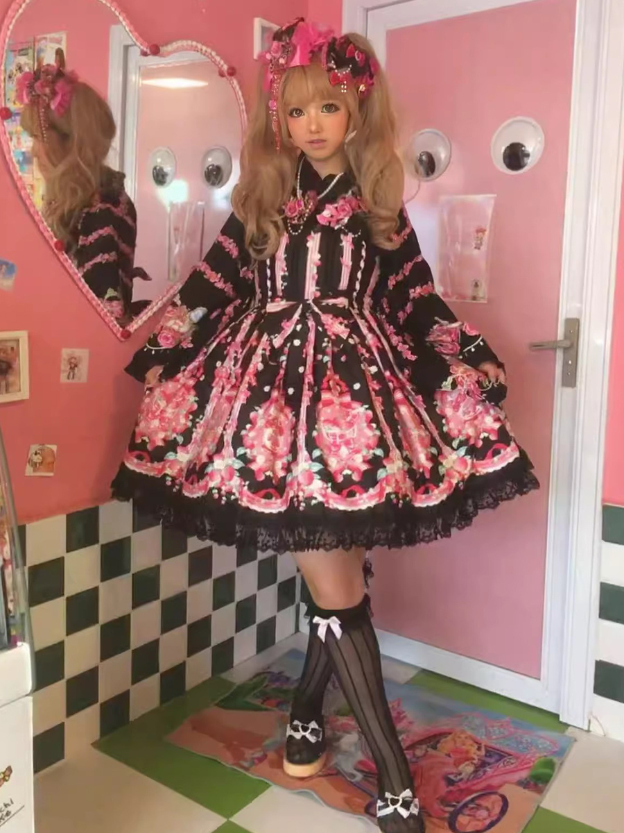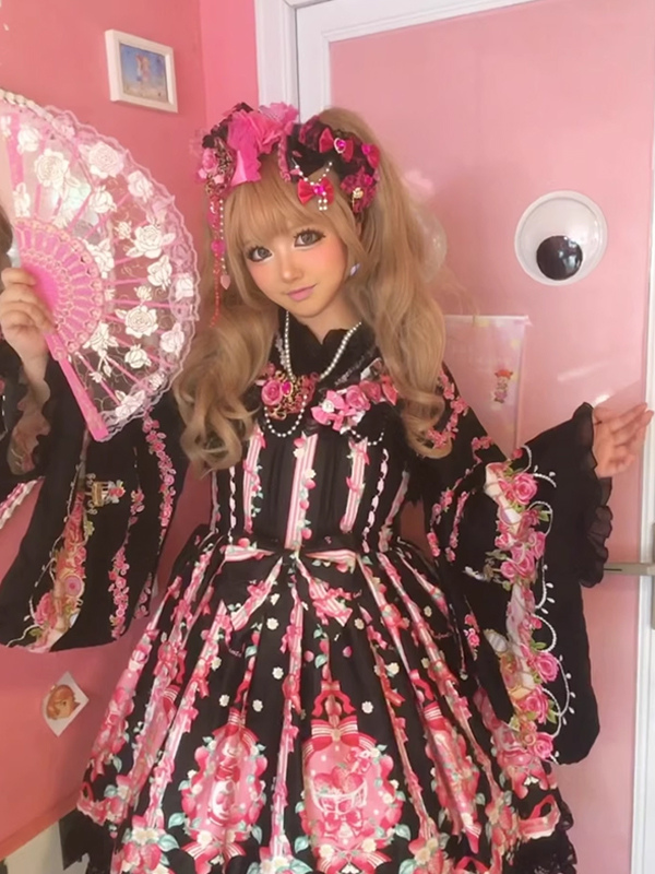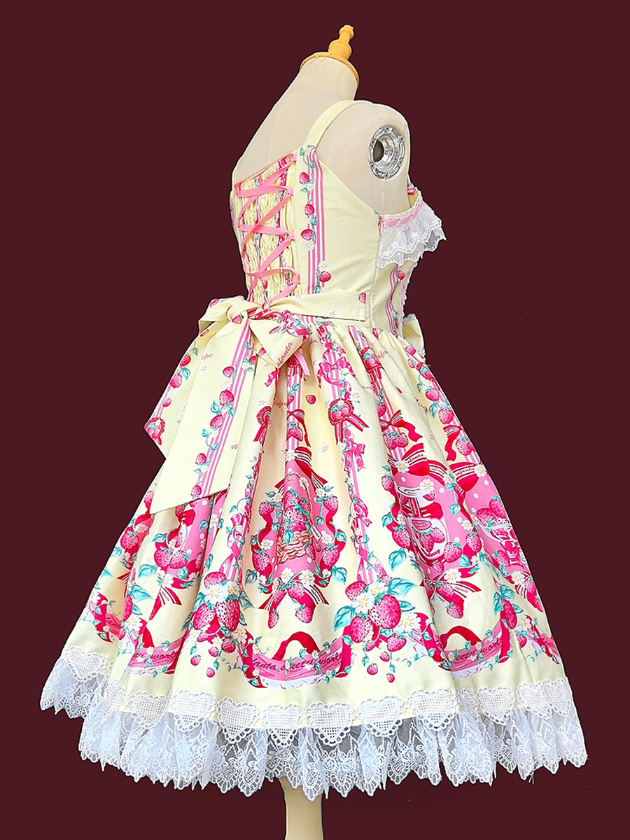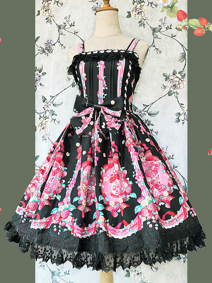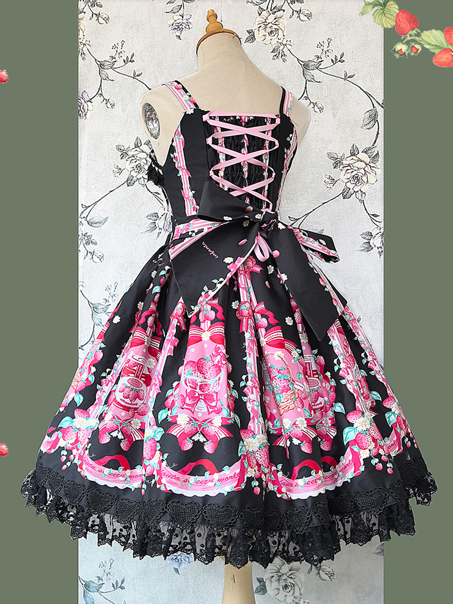 Vestido dulce lolita con estampado de fresas sin mangas de encaje y lazo