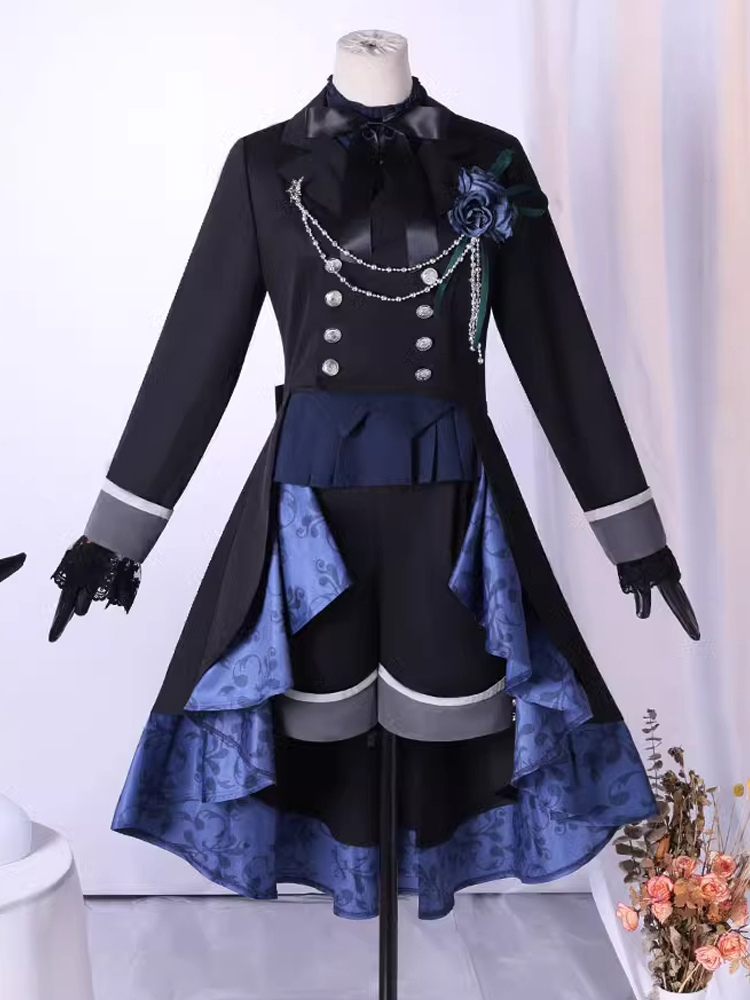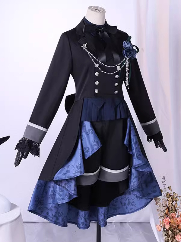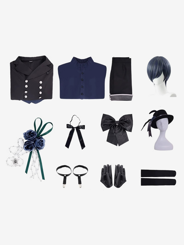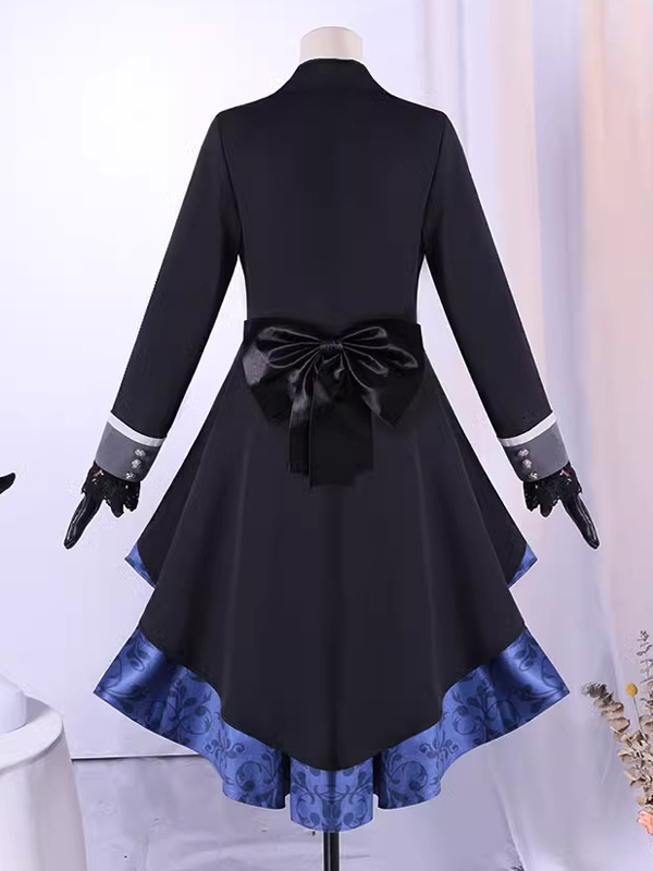 Vestido Lolita de cosplay con lazos festivos negros camiseta de manga larga pantalones y corbata conjunto con pelucas.