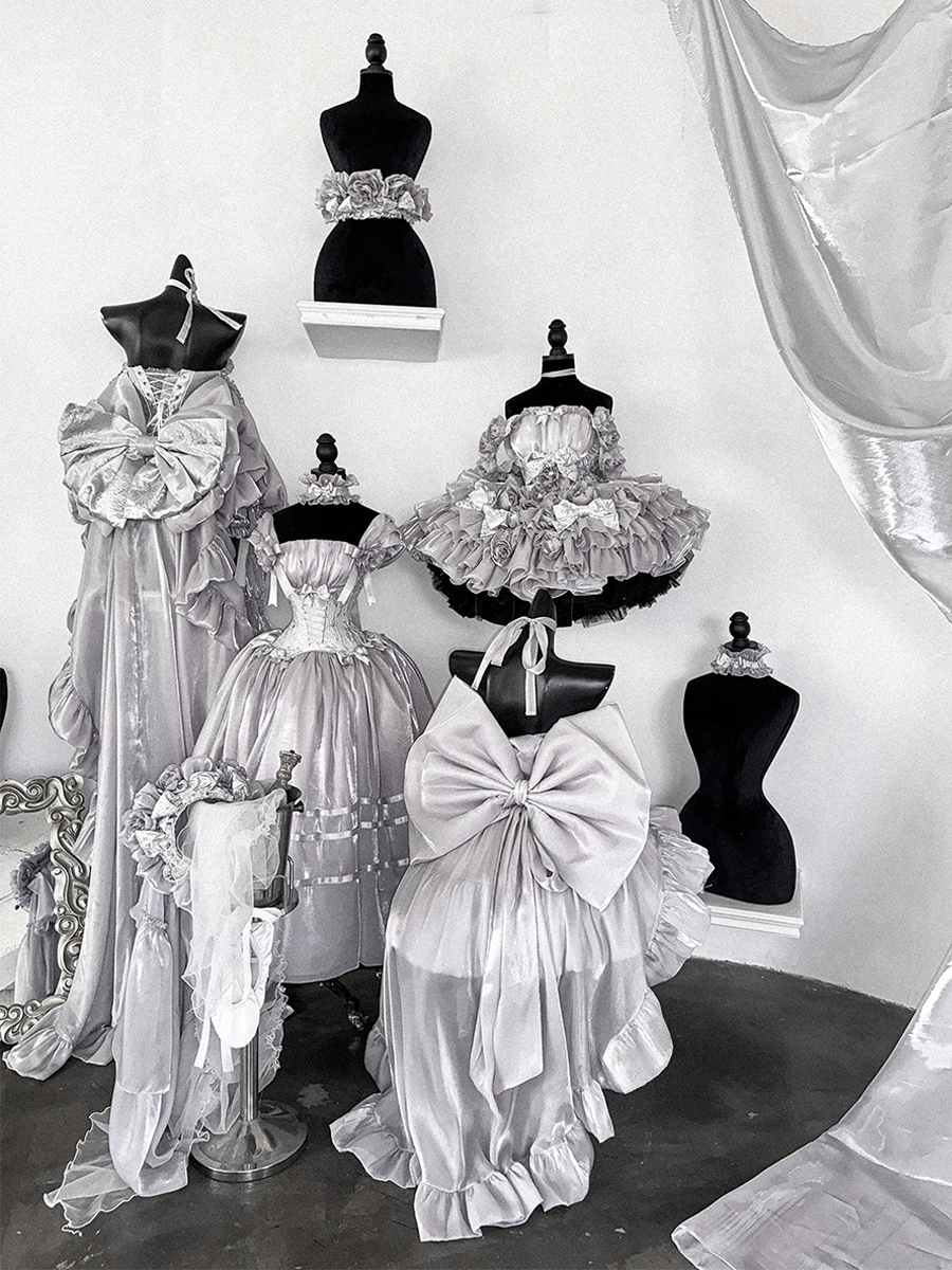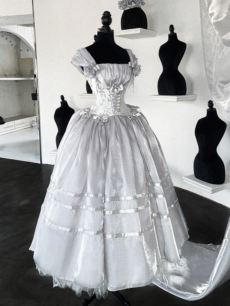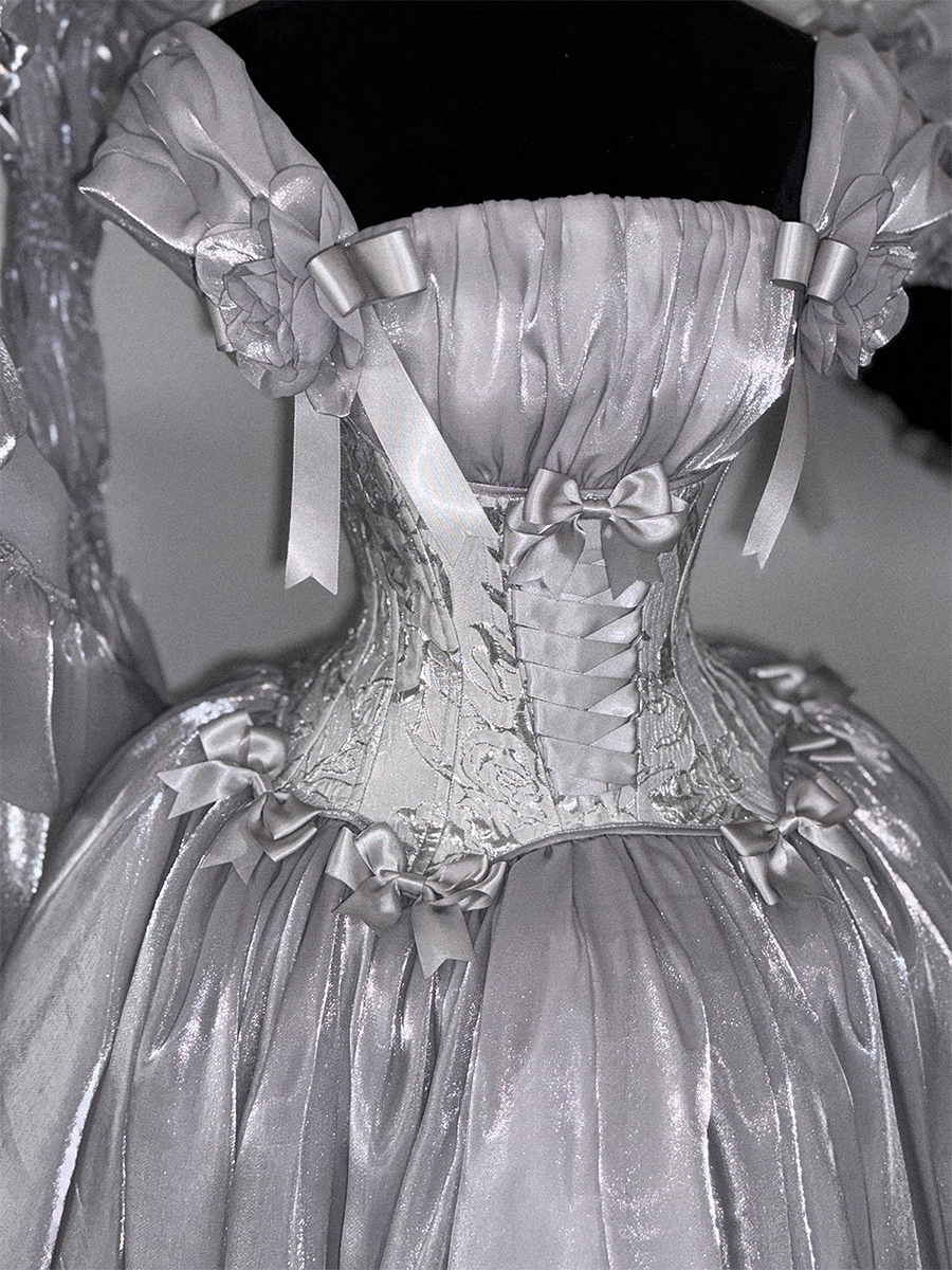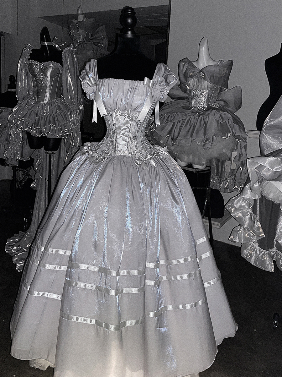 Vestido Lolita dulce de princesa para fiesta de té sin mangas con lazos accesorio vestido Lolita plateado dulce largo hasta los tobillos