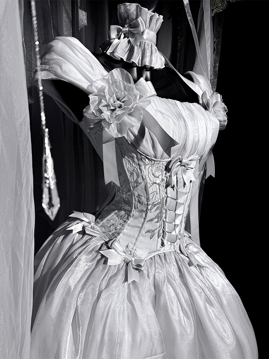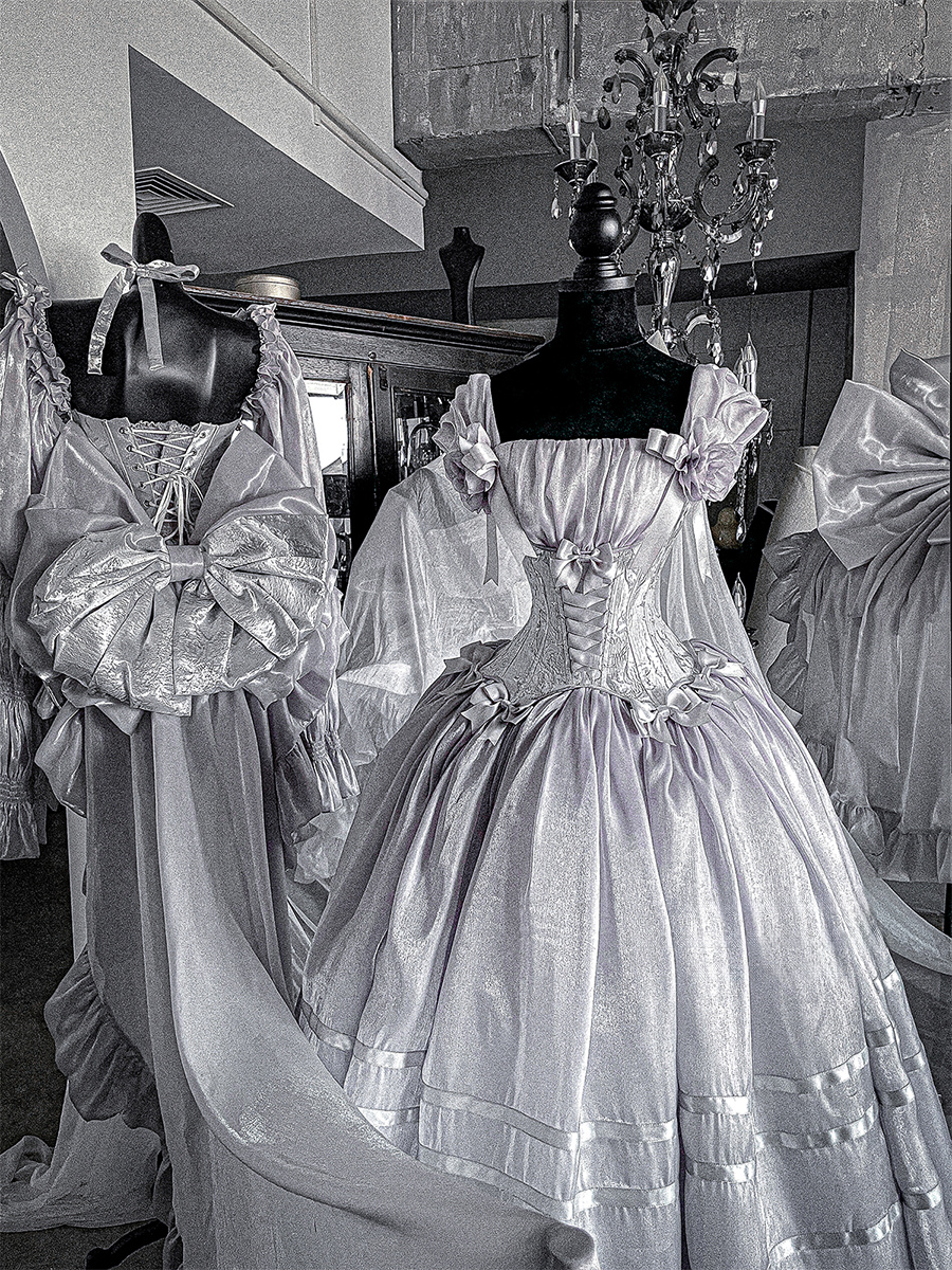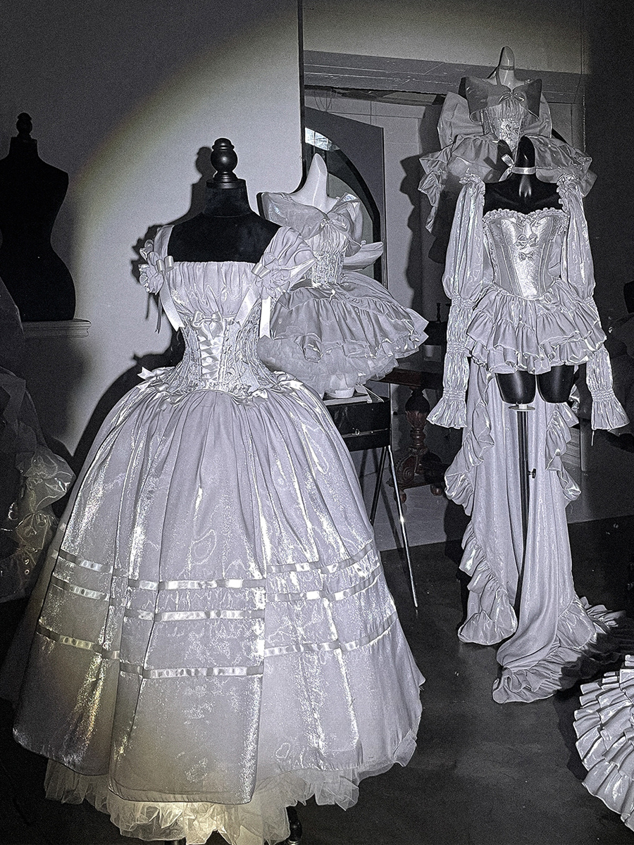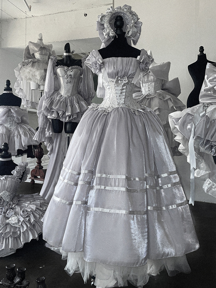 Vestido Lolita dulce de princesa para fiesta de té sin mangas con lazos accesorio vestido Lolita plateado dulce largo hasta los tobillos