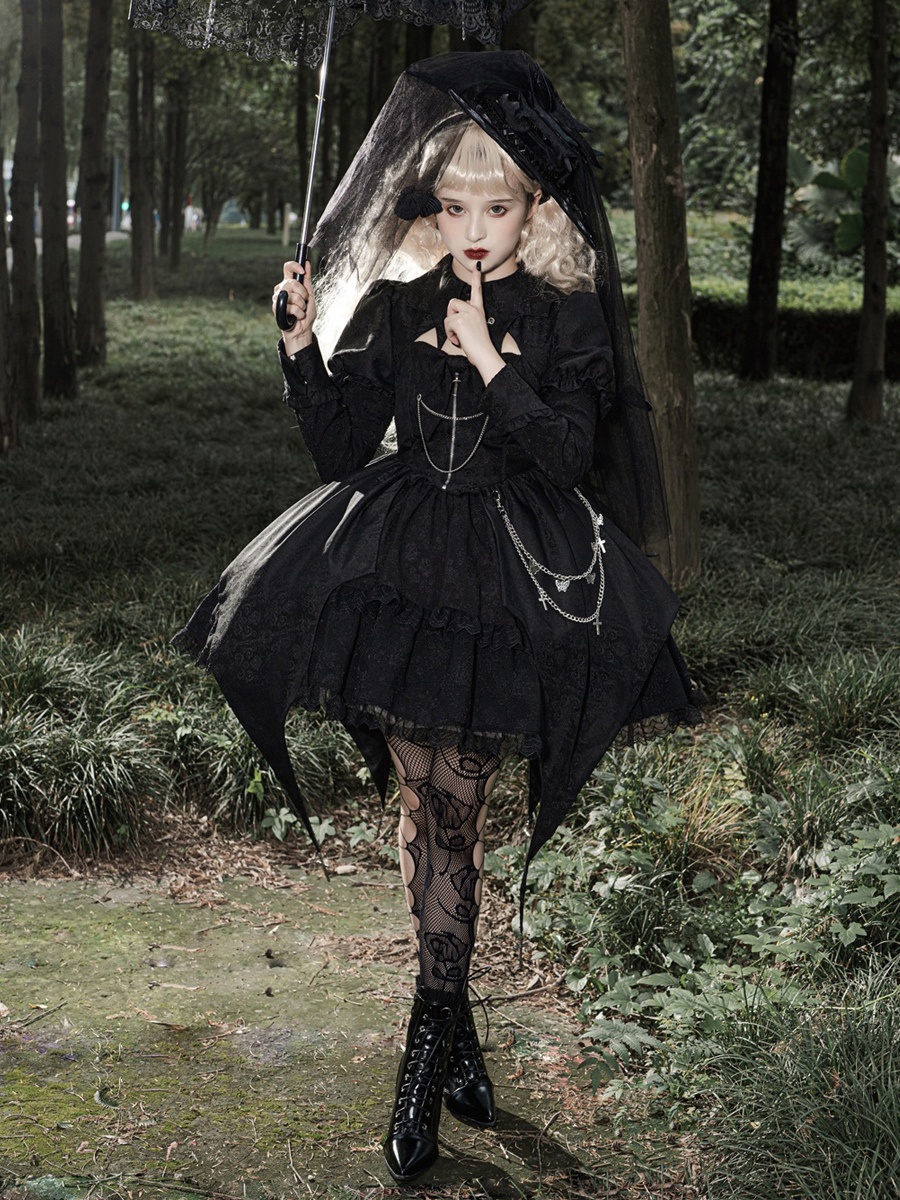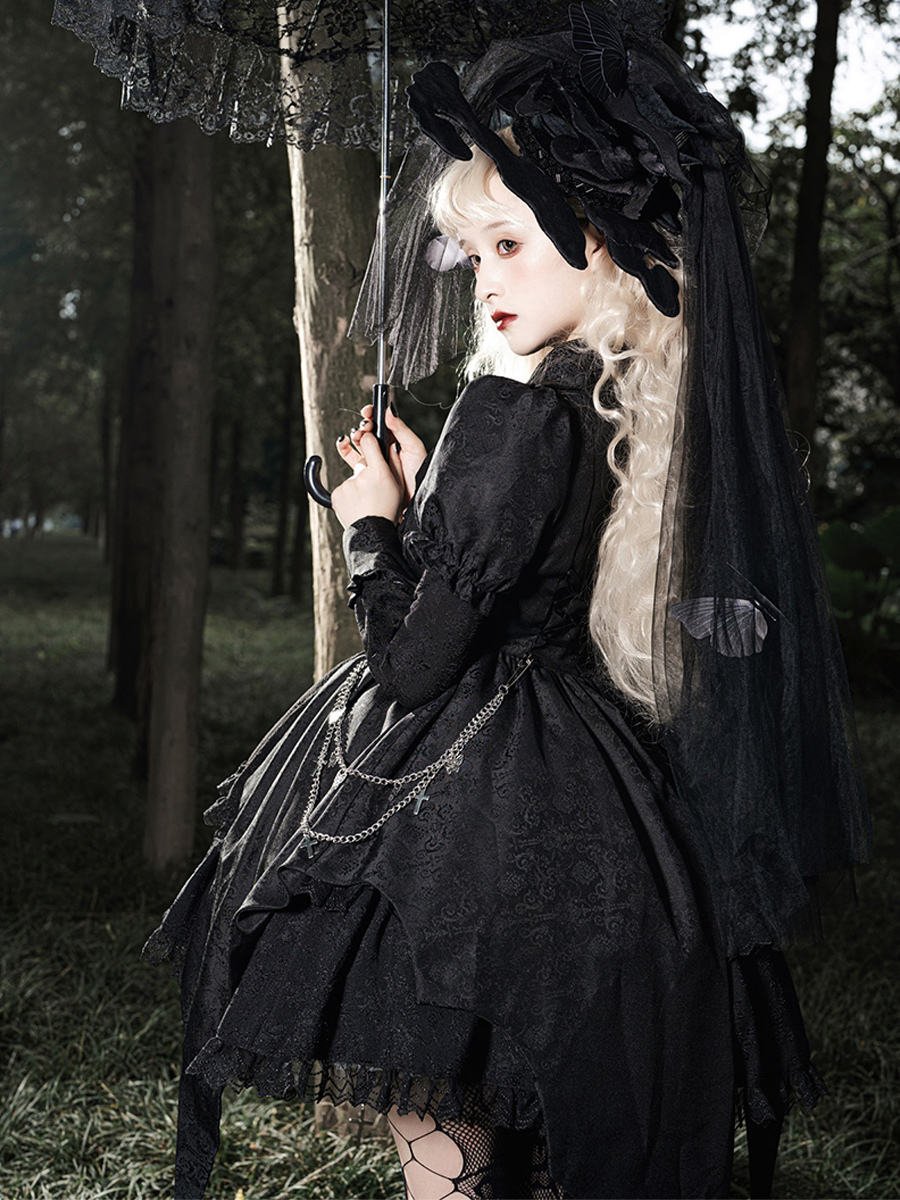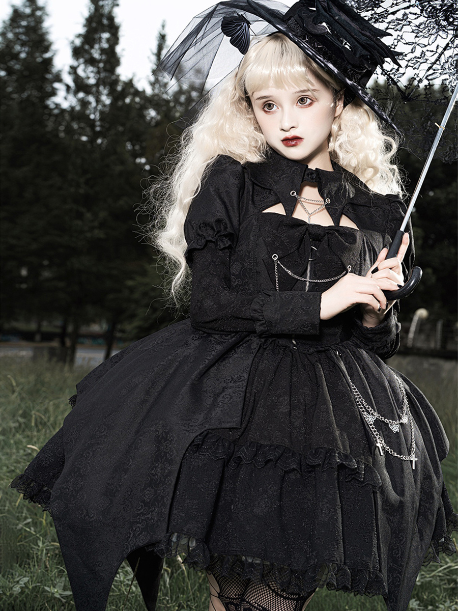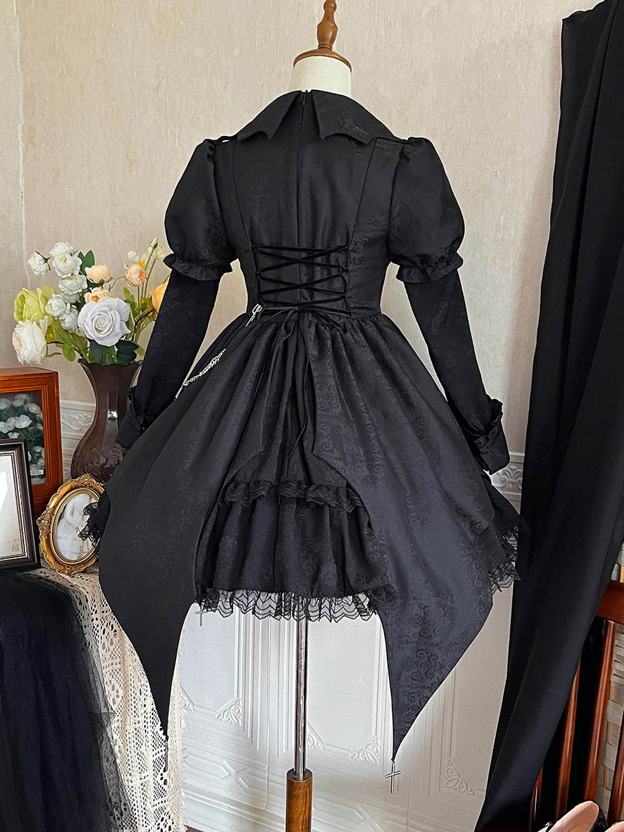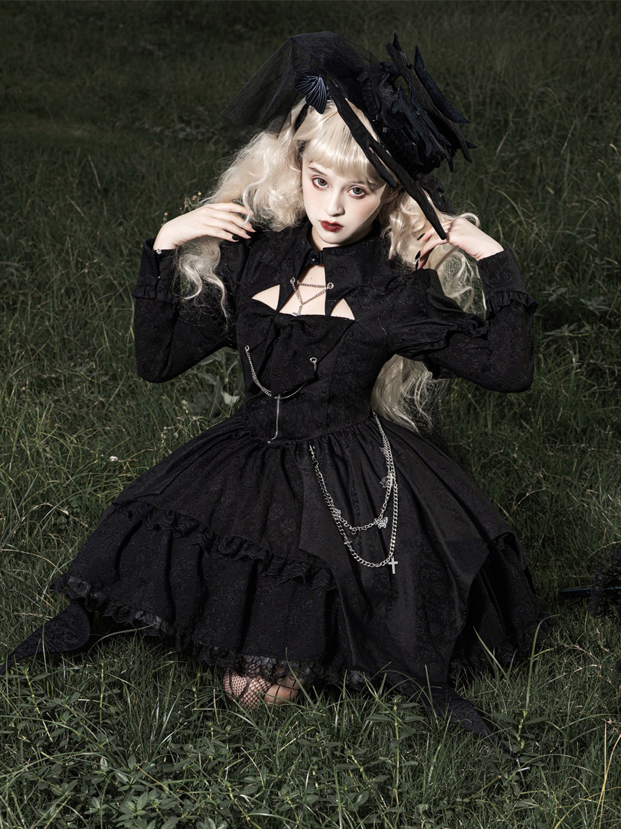 Vestidos góticos de lolita con cadenas y volantes vestidos negros de manga larga