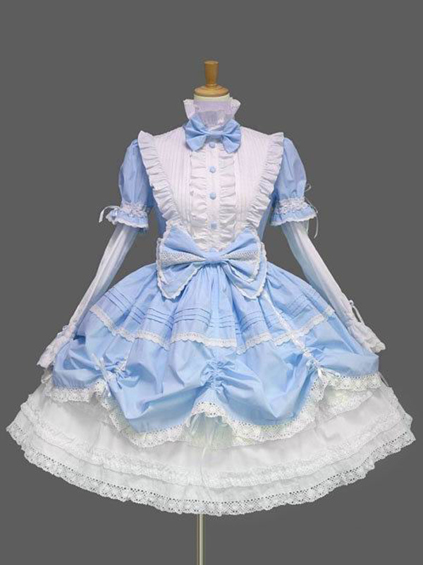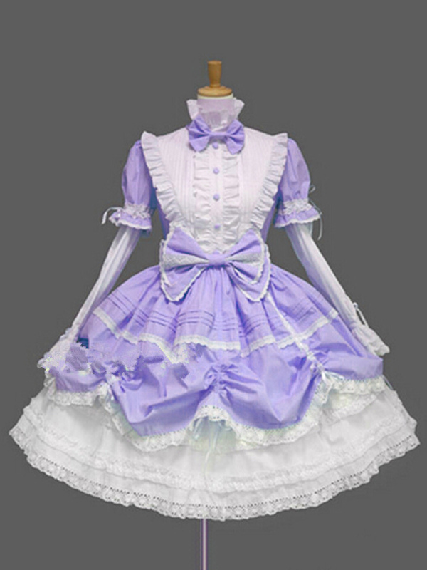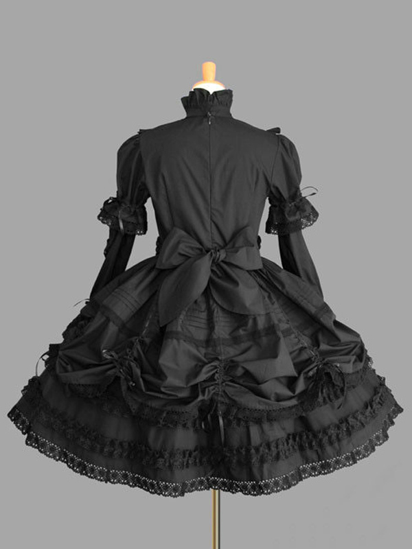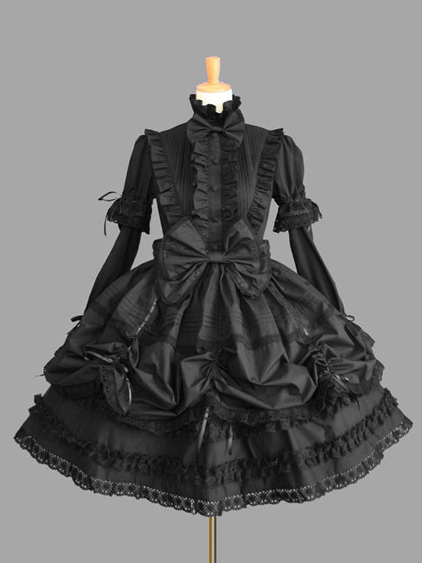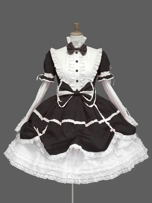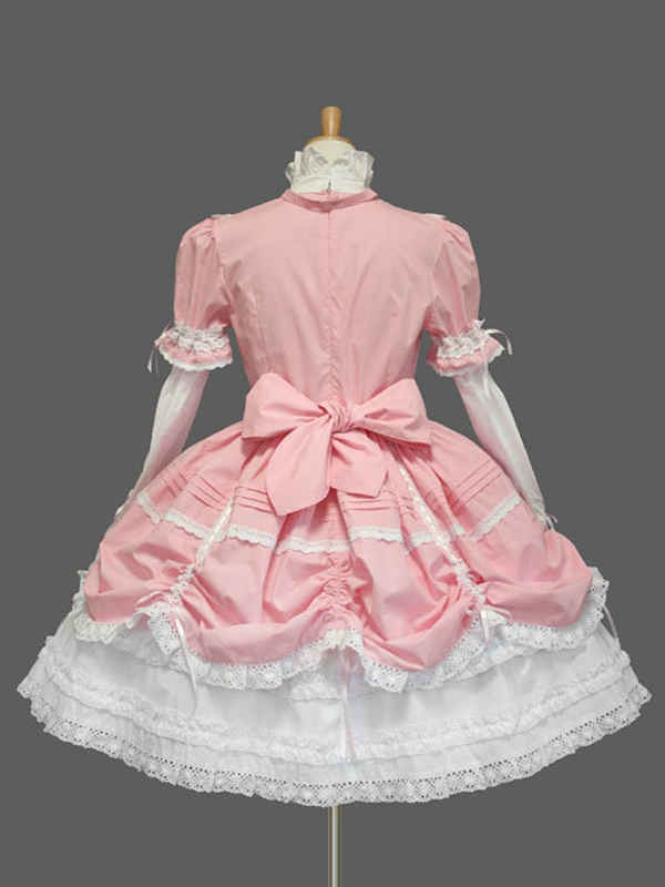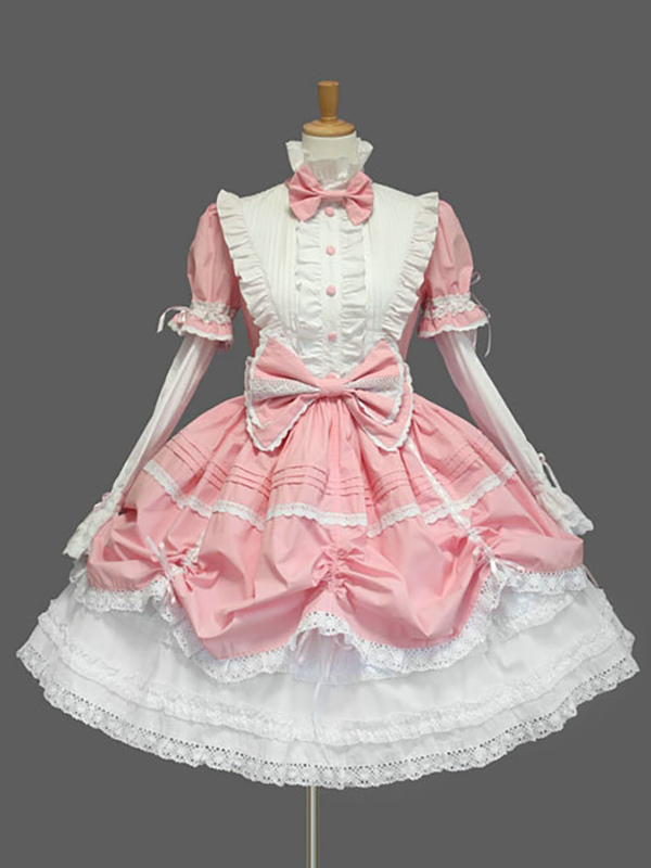 Vestidos góticos de lolita con lazos rosa negro y blanco vestido de manga larga