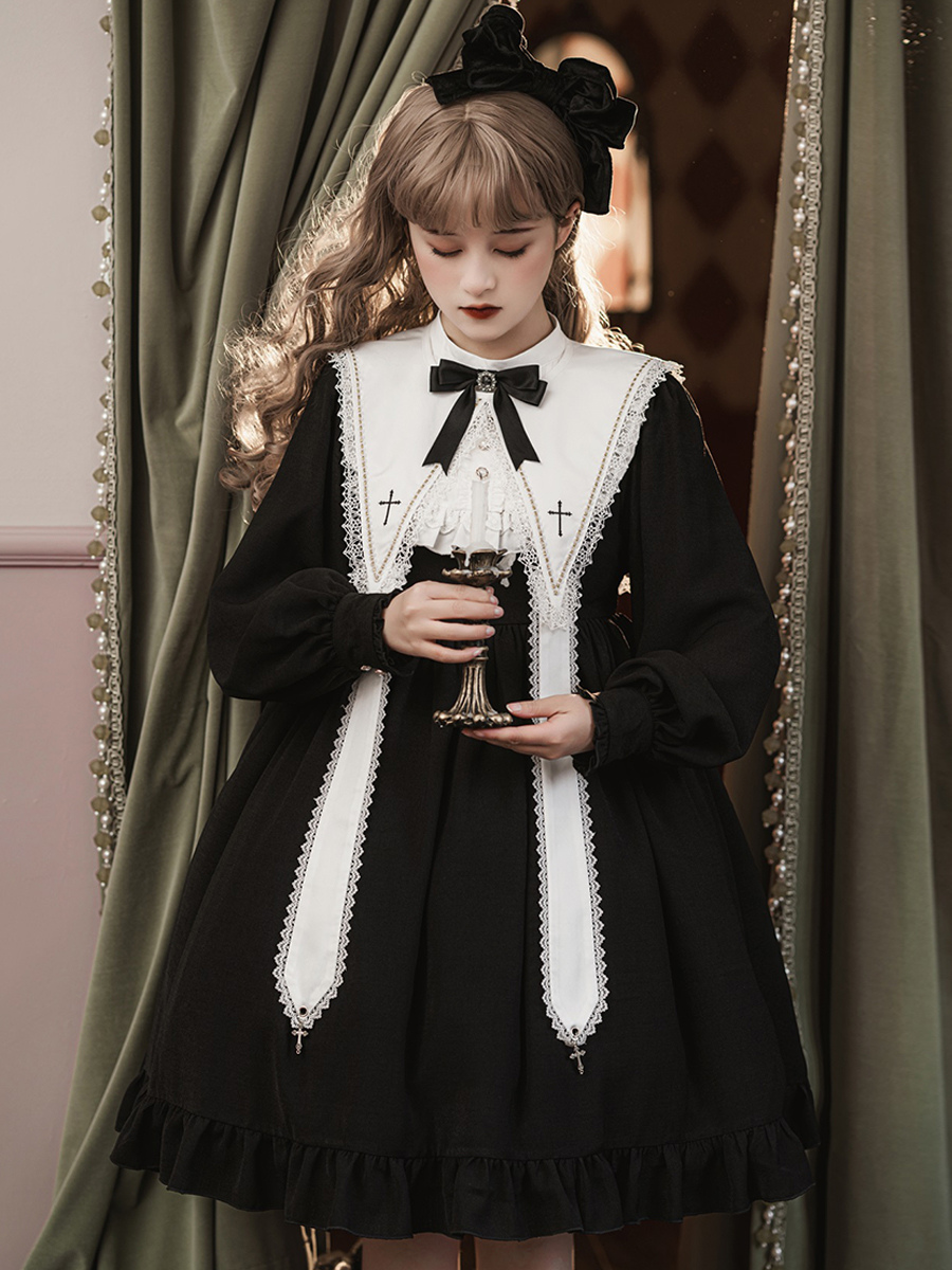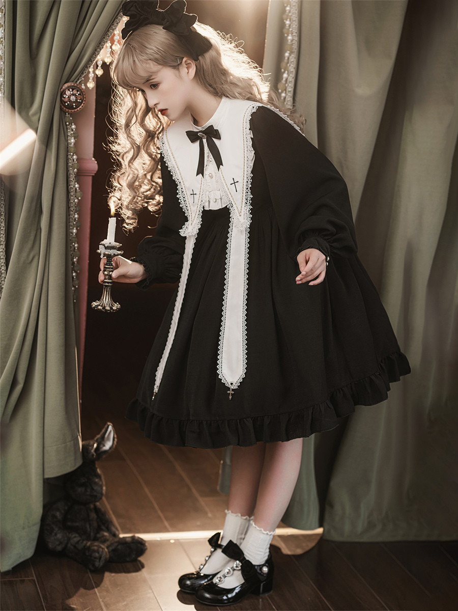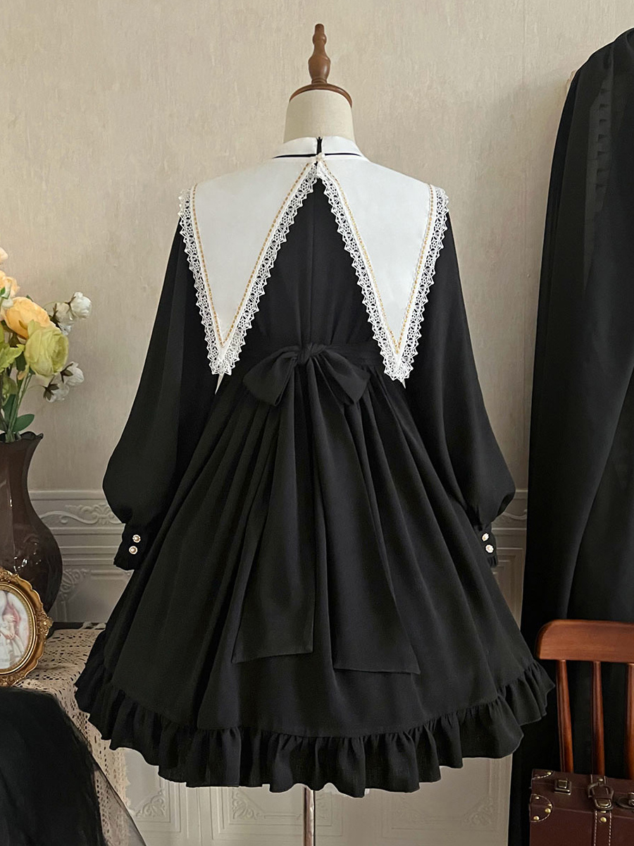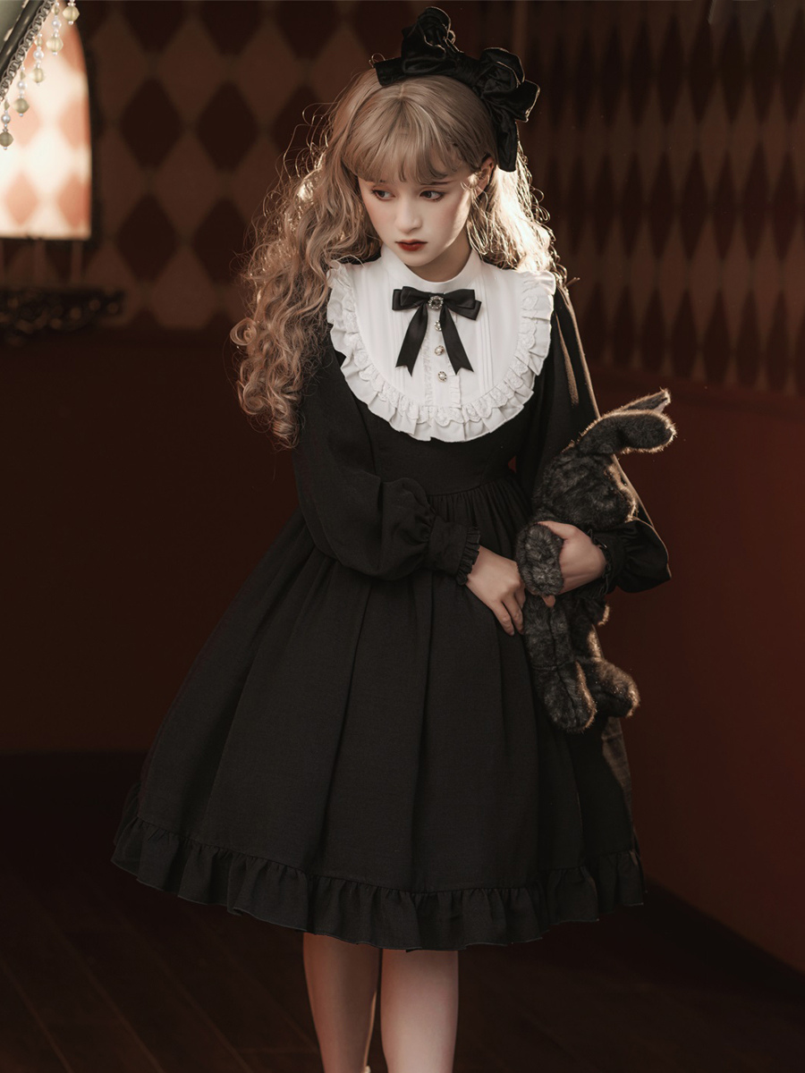 Vestidos góticos de lolita con volantes bicolor manga larga negros