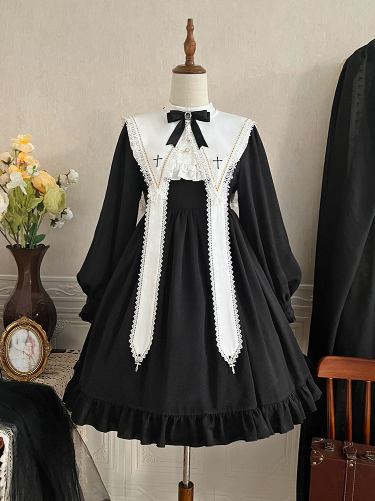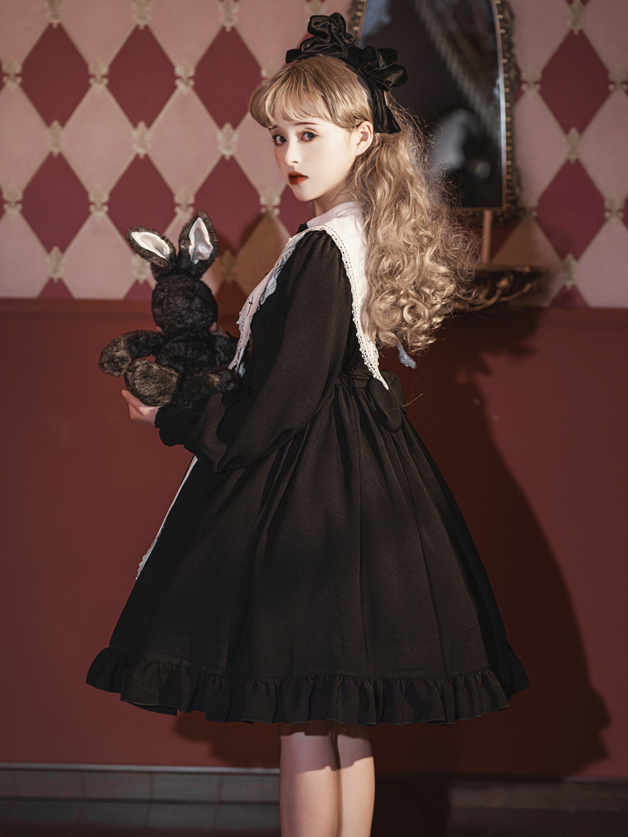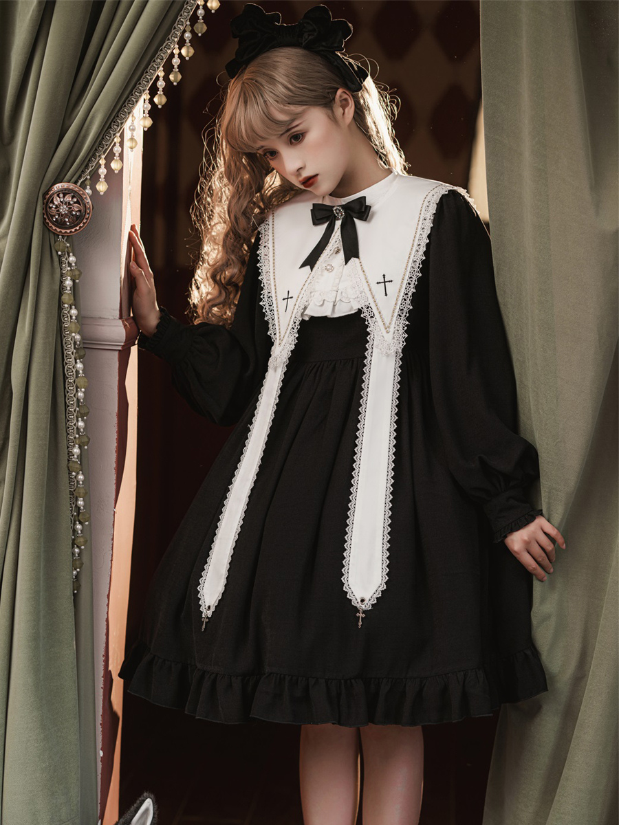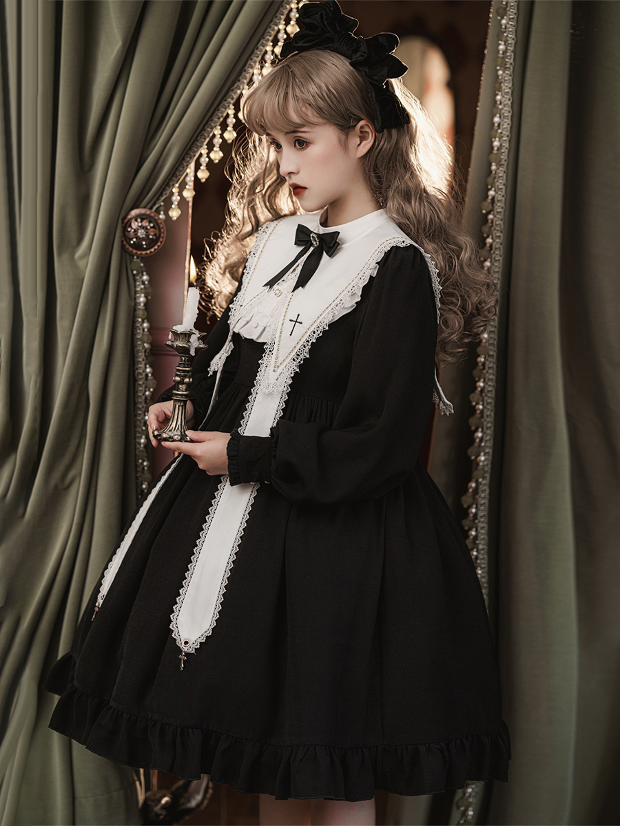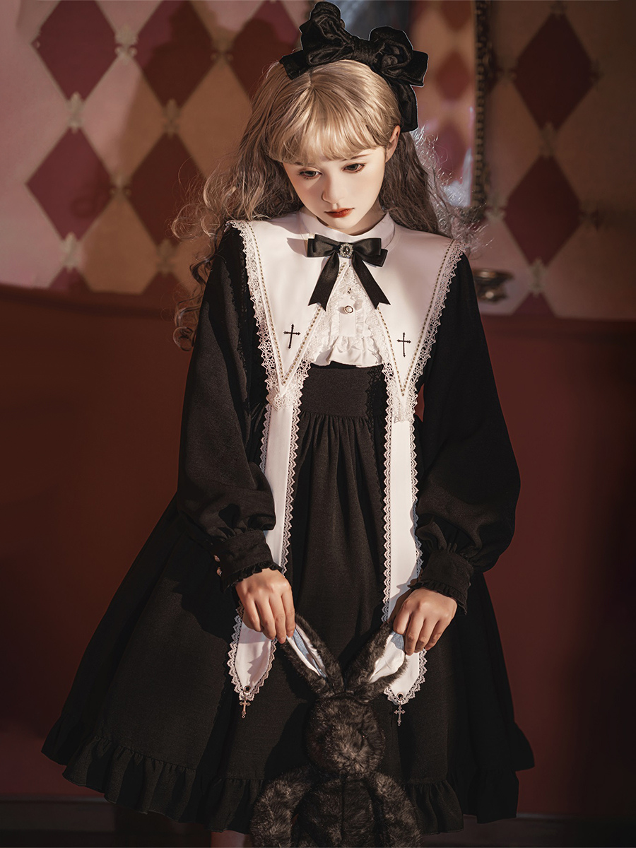 Vestidos góticos de lolita con volantes bicolor manga larga negros