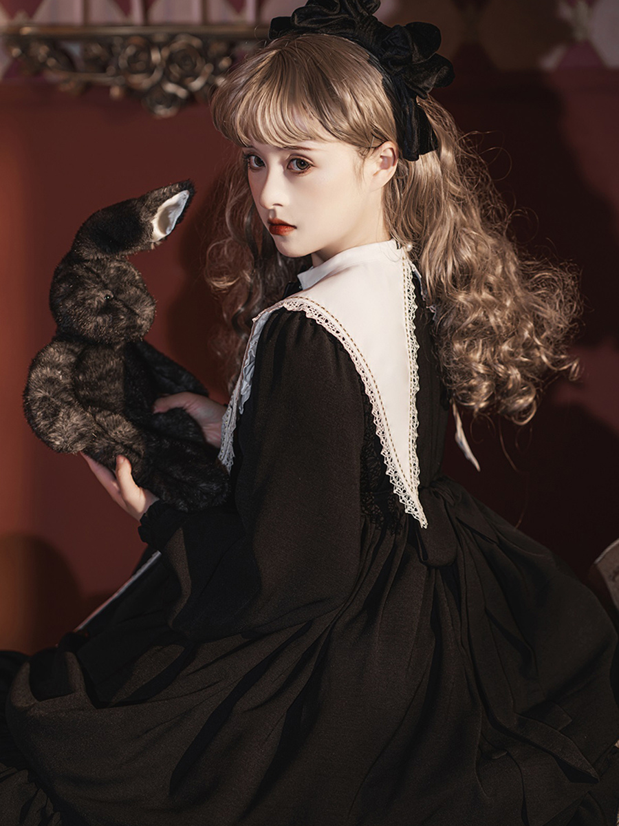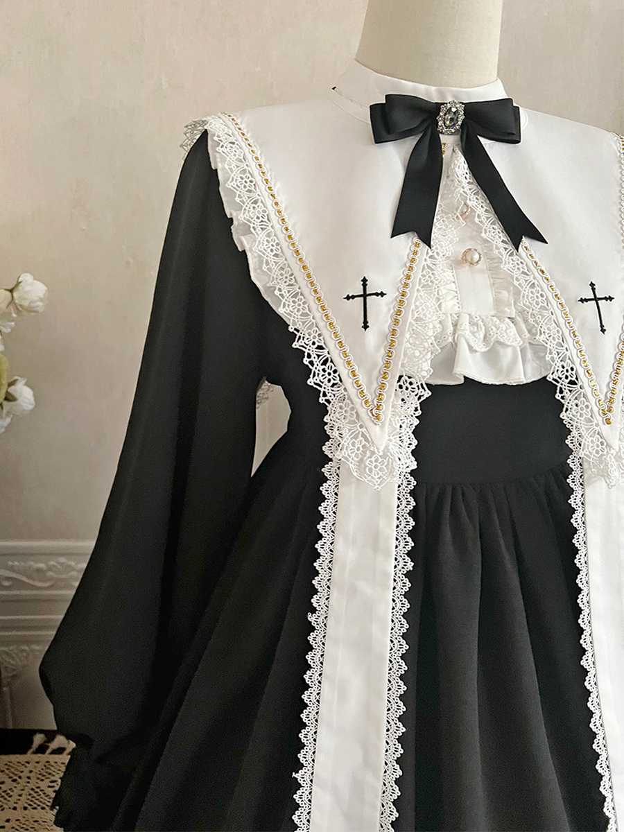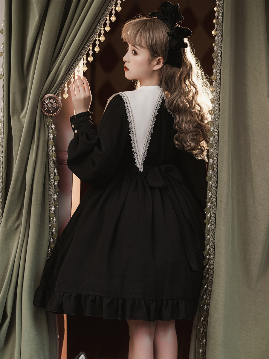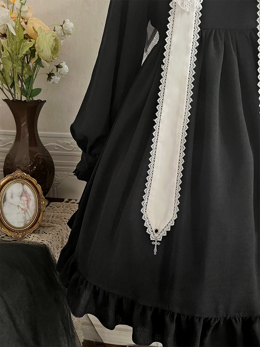 Vestidos góticos de lolita con volantes bicolor manga larga negros