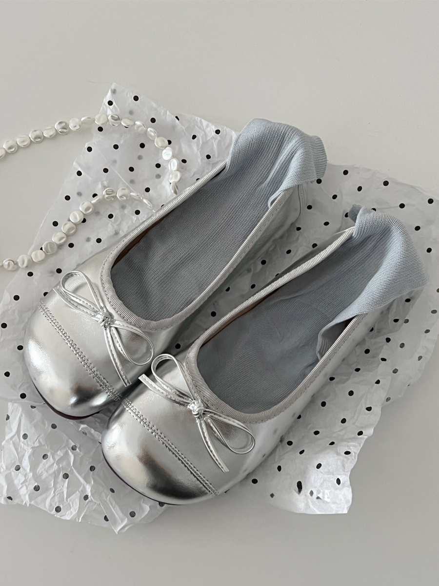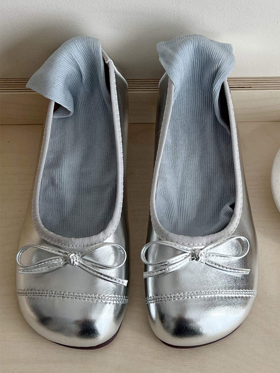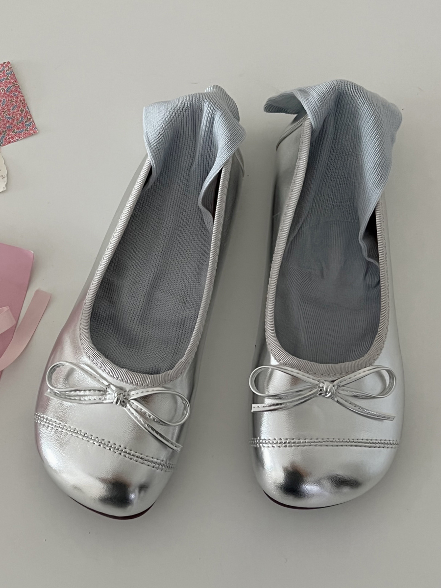 Zapatos de ballet clásicos de lolita con lazos plateados y punta redonda de piel sintética.