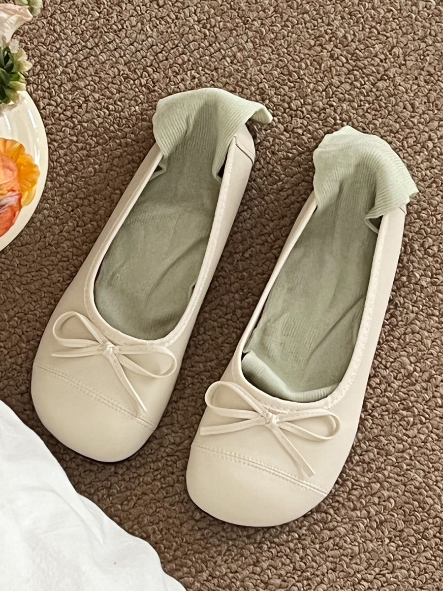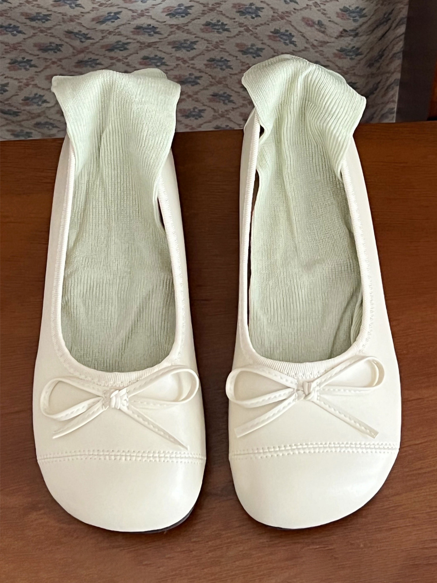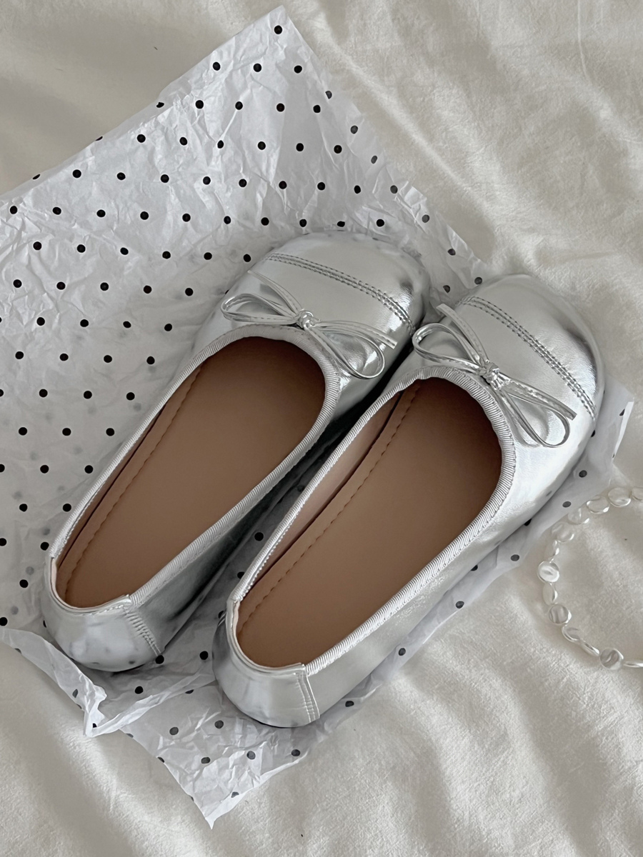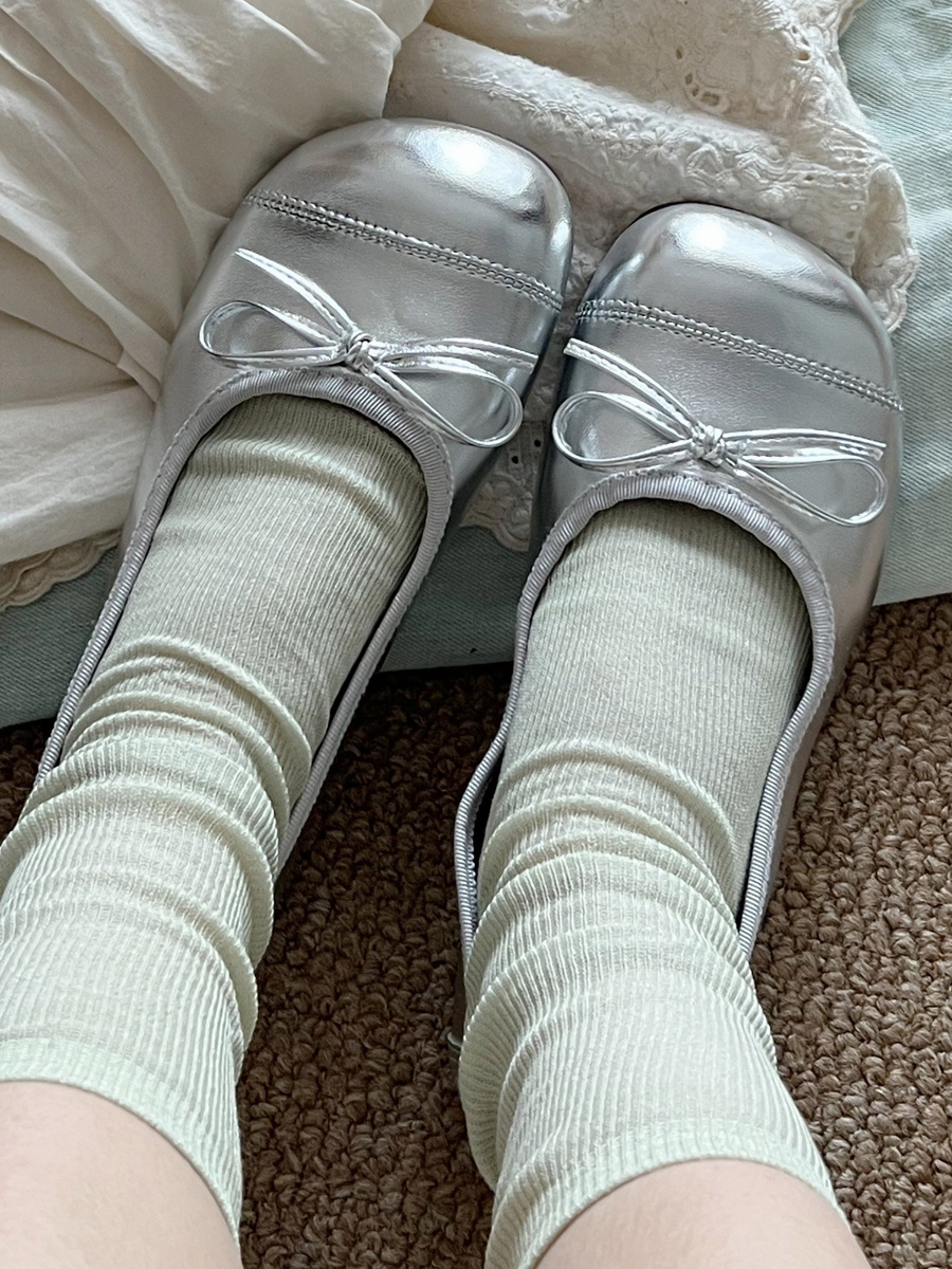 Zapatos de ballet clásicos de lolita con lazos plateados y punta redonda de piel sintética.