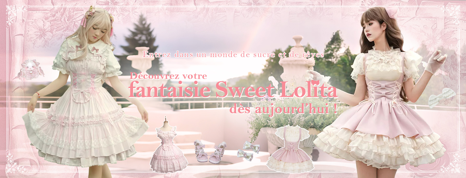 Robe de ballet Hime Lolita rose à nœuds et volants style princesse.