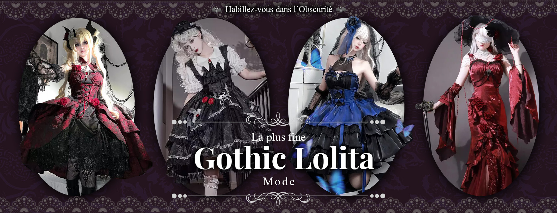 Robe Lolita gothique noire style rétro Lolita vintage dentelle volants manches longues