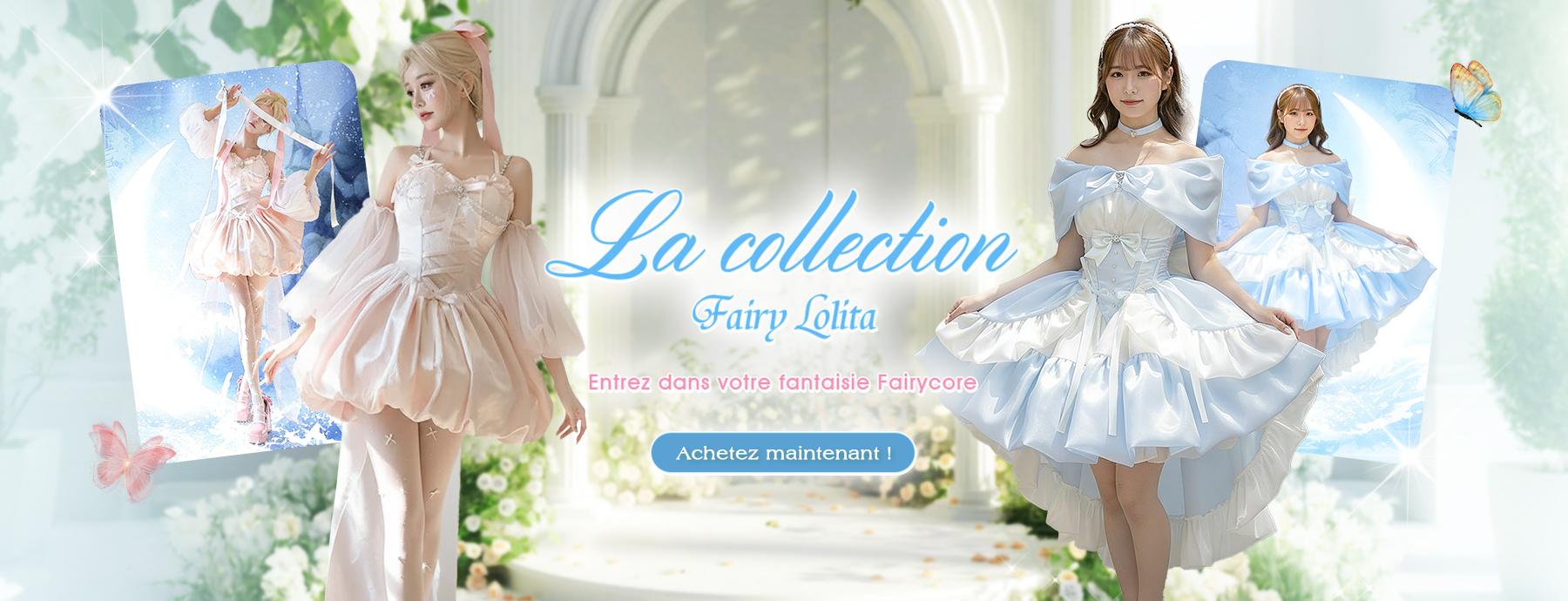 Robe de ballet hime lolita blanche à nœuds volants et lacets manches courtes.