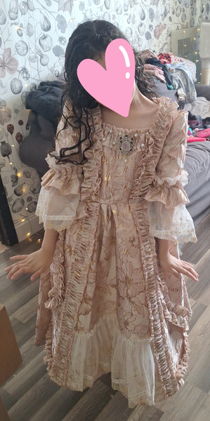 s****7Color:PinkSize:130cmCoupe globale:Fidèle à la tailleI am blown away by how beautiful this dress is in person!! I'll be honest, I thought this site could potentially be a scam based on reddit Lolita girl comments. But I took a chance and that is not the case! This site is legit and my daughter will be wearing this beautiful dress for my Sleepy Hollow wedding (dressed like the child twins, iykyk). I sized up for her and planned to have a seamstress take it in a bit, but it's actually perfect for her form with a little room to grow. We decided a seamstress isn't necessary. So size up if you want your child to have a little breathing space. My daughter is tall for 7y/o, so the dress will not drag, but I'm okay with the length so that she can show off her beautiful shoes to go with it. I expected the flowers to be printed on the dress and these are embroidered. I am more than pleased with this dress and we will be back for more of these period pieces!24/07/2025