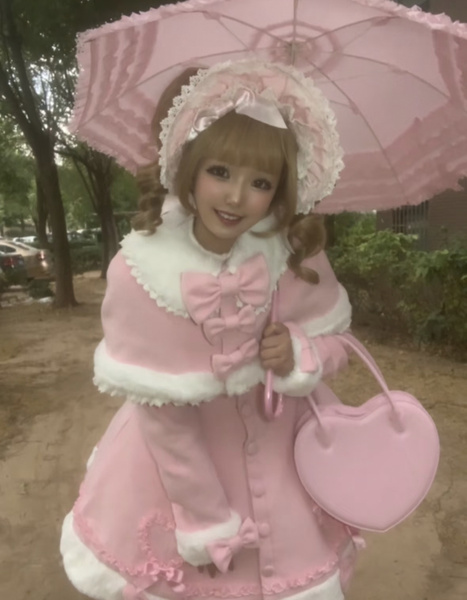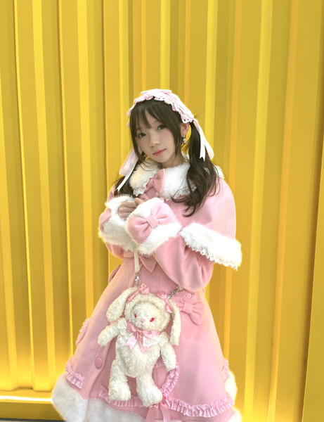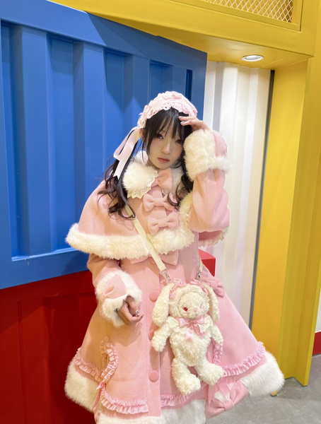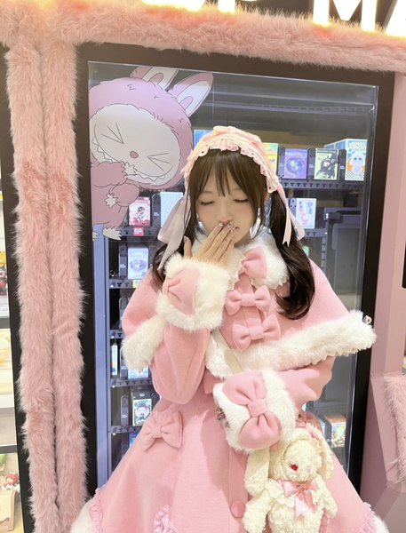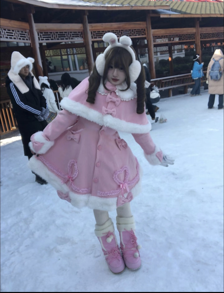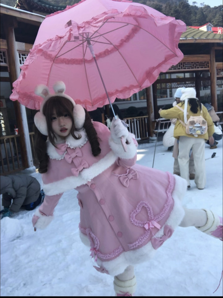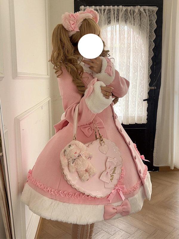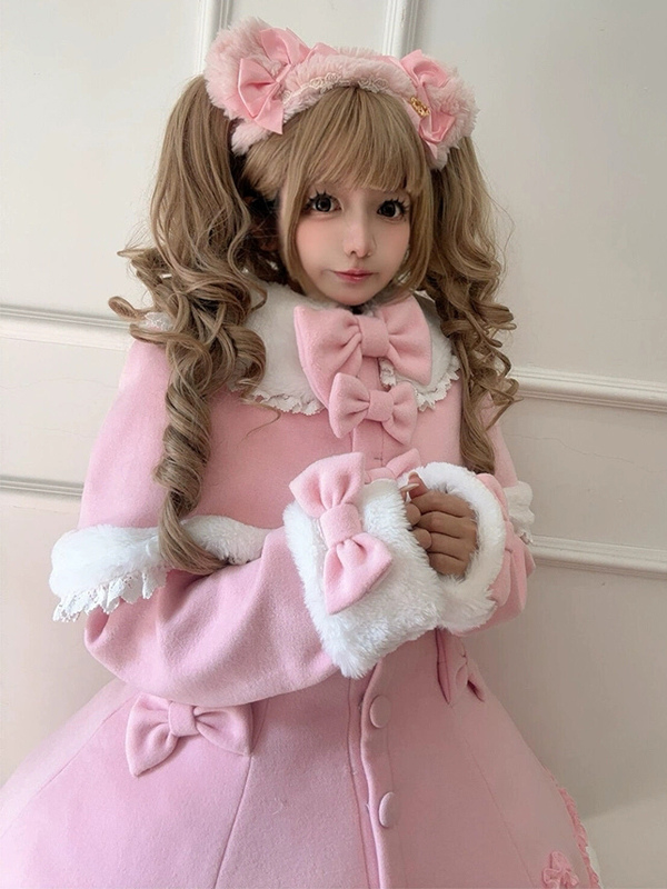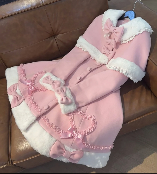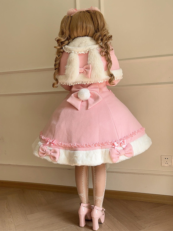 Manteau Lolita Sweet Rose Charmant avec Noeuds, Dentelle et Détails en Cœur – Doux, Élégant et Idéal pour l'Hiver. Note : Portez un jupon pour obtenir l'effet volumineux complet comme montré.