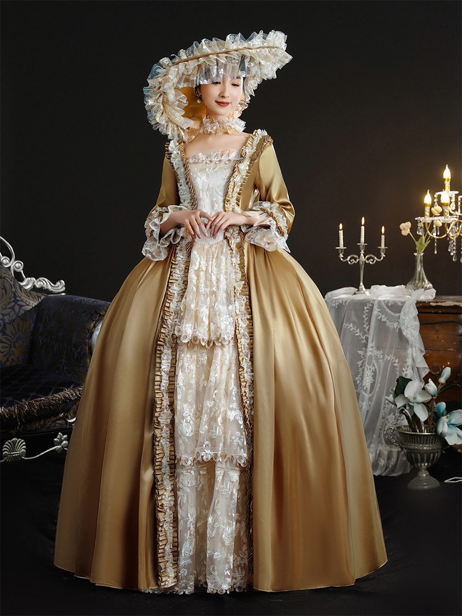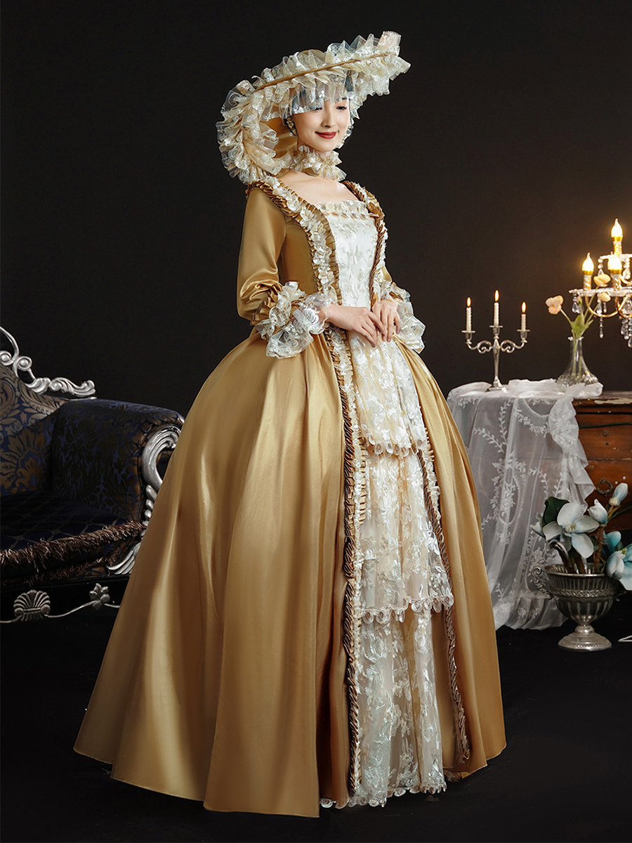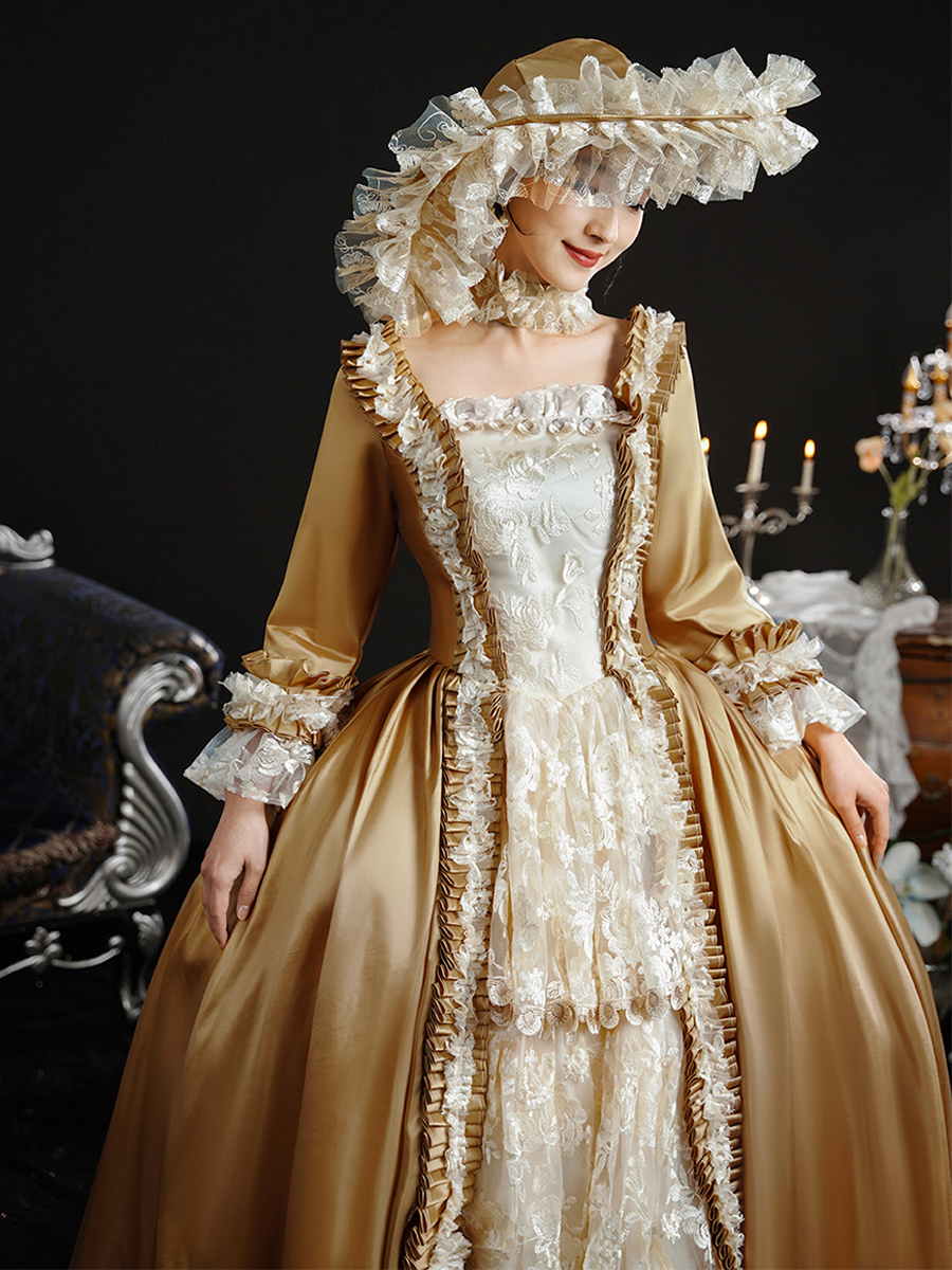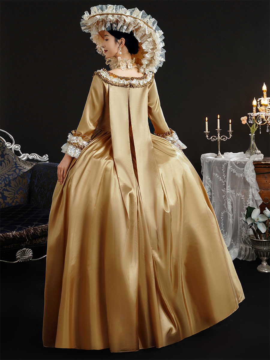 Robe baroque pour femme vêtement vintage jaune volants manches longues robe de soirée rétro Renaissance festival robe médiévale