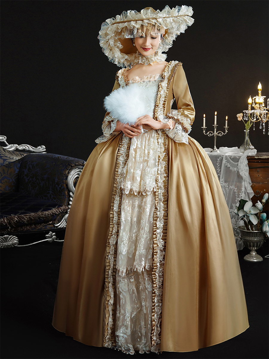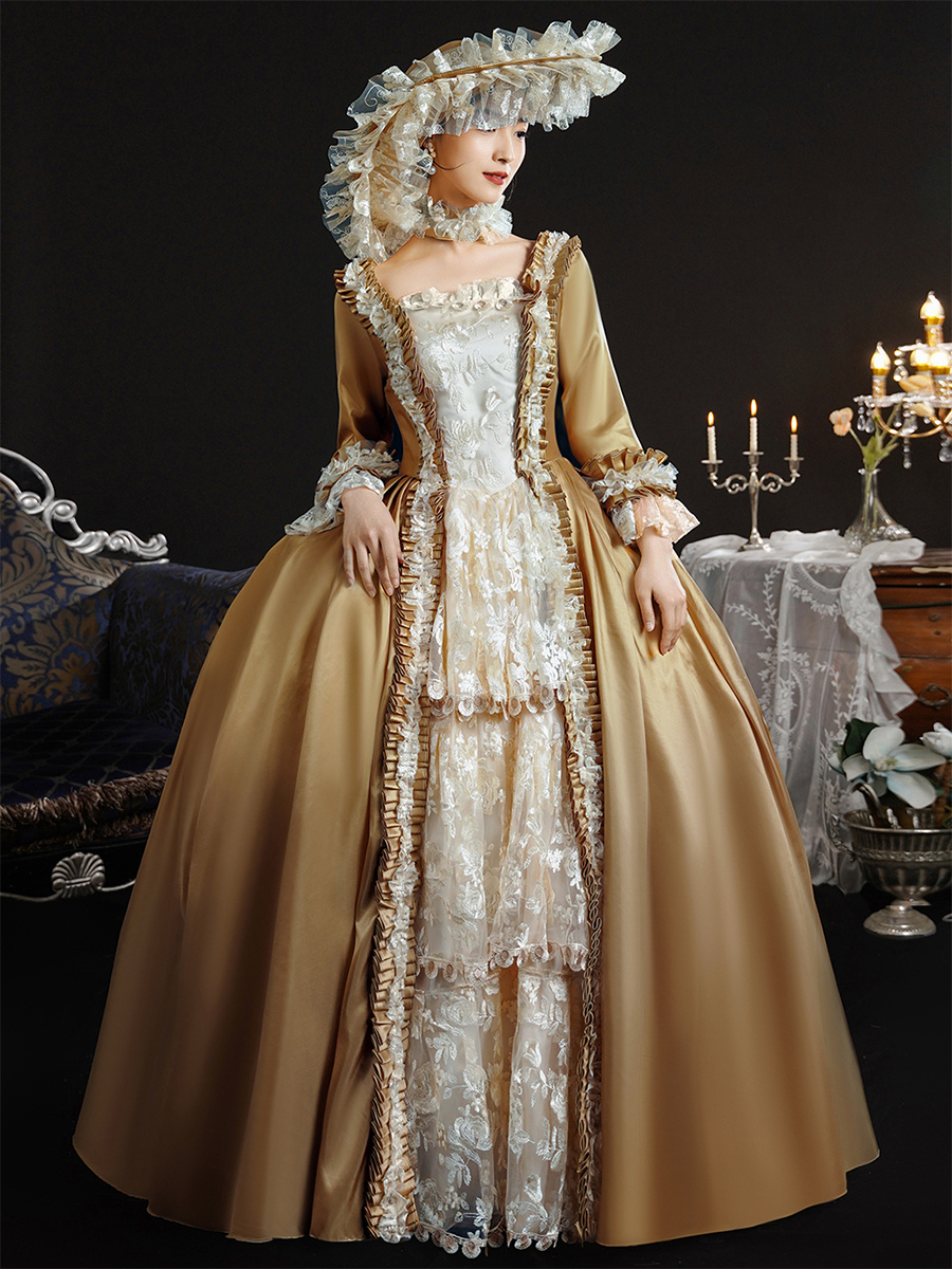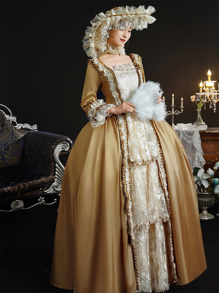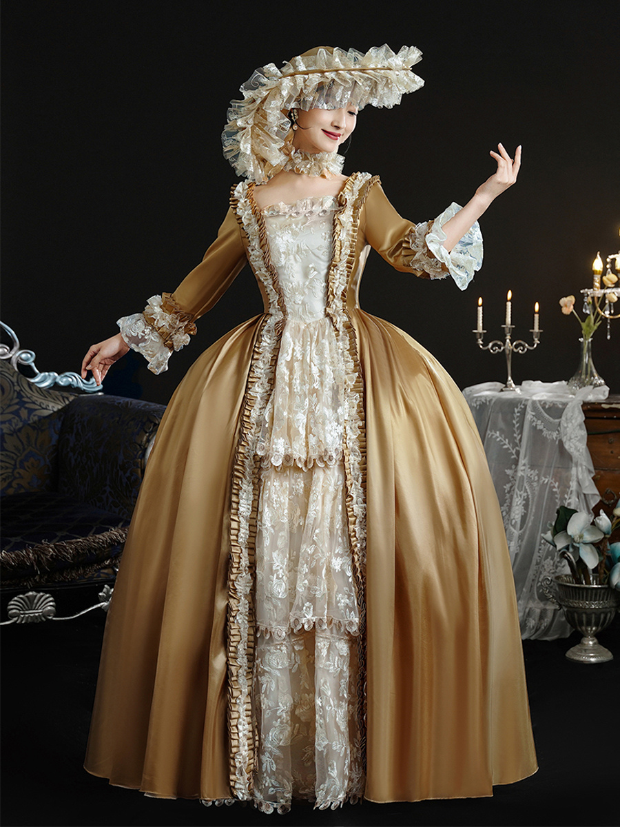 Robe baroque pour femme vêtement vintage jaune volants manches longues robe de soirée rétro Renaissance festival robe médiévale