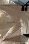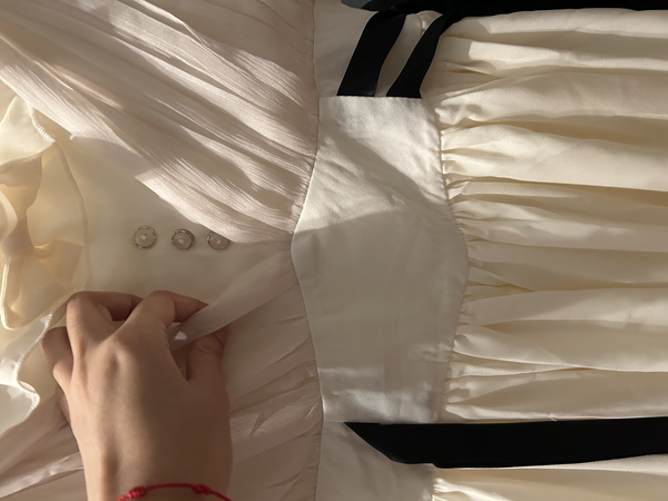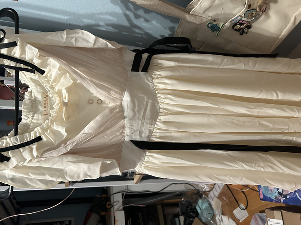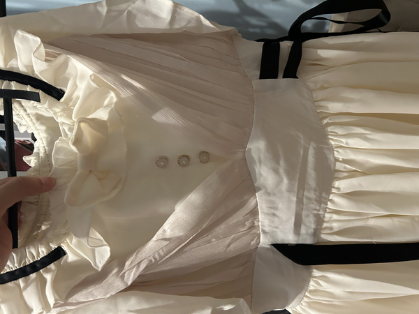 j****4Color:WhiteSize:MVestibilità generale:La giusta dimensioneVery pretty! It wasn’t the pure white color I was expecting, just an off white ivory color. Another thing, the bow, buttons, and center piece at the waist are ALL crooked! It doesn’t bother me too much since it’s an easy fix but I can imagine someone who can’t or doesn’t sew would be disappointed. Overall I’d give it a 4/5 star review!