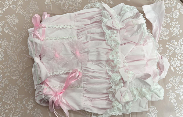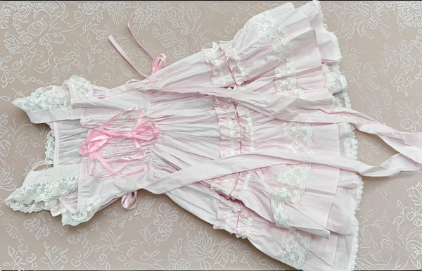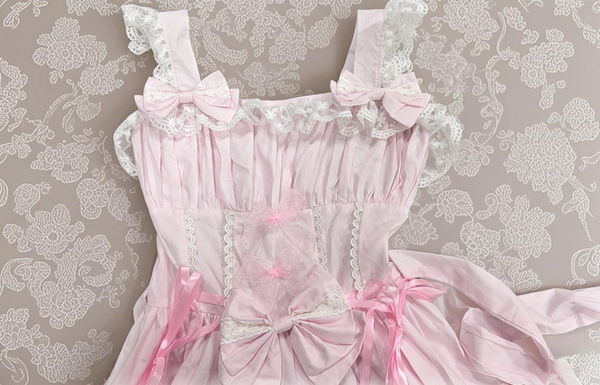フェアリーロリータ Lolitashow スウィート ピンク コットン ロリィタジャンパースカート レーストリム レースアップ フリル