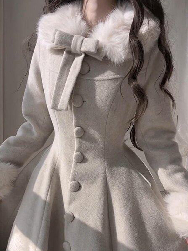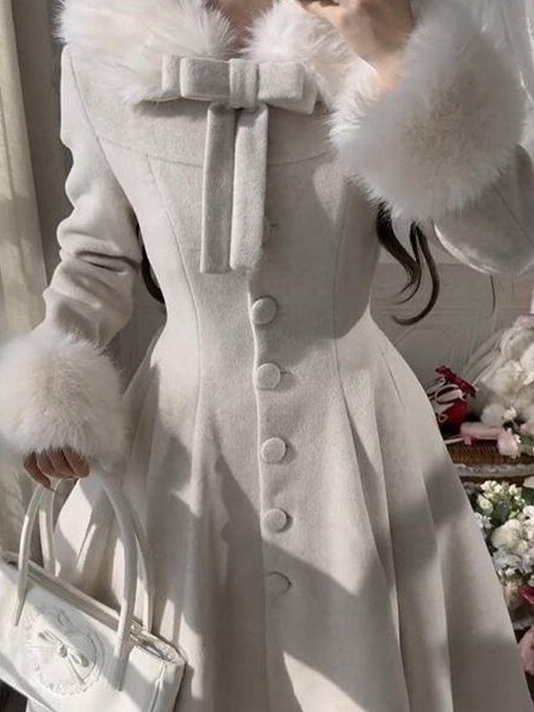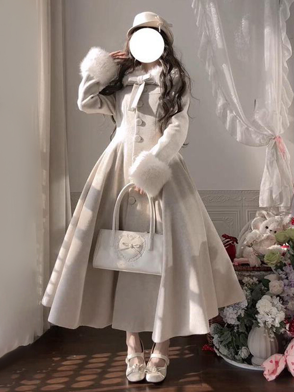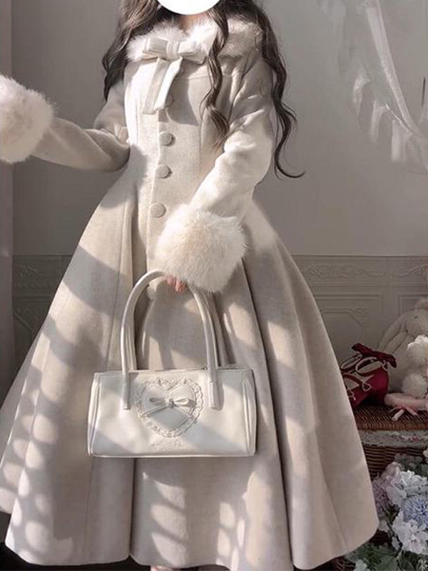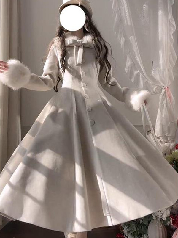 クラシックロリータコート エクリュホワイト レースアップオーバーコート ボウロリータコート