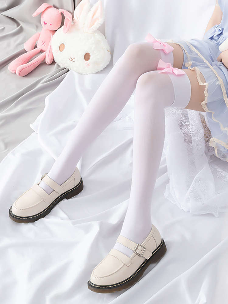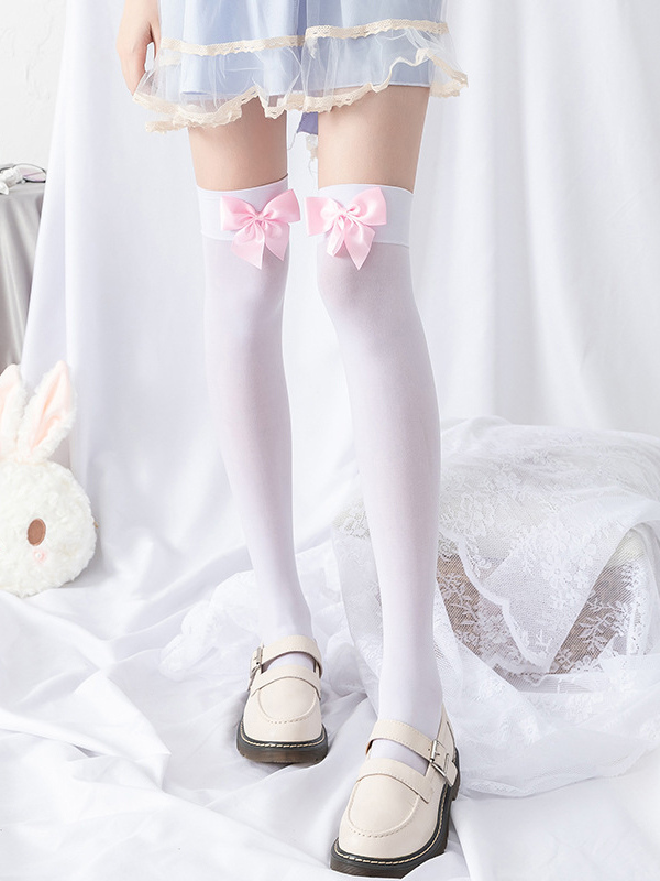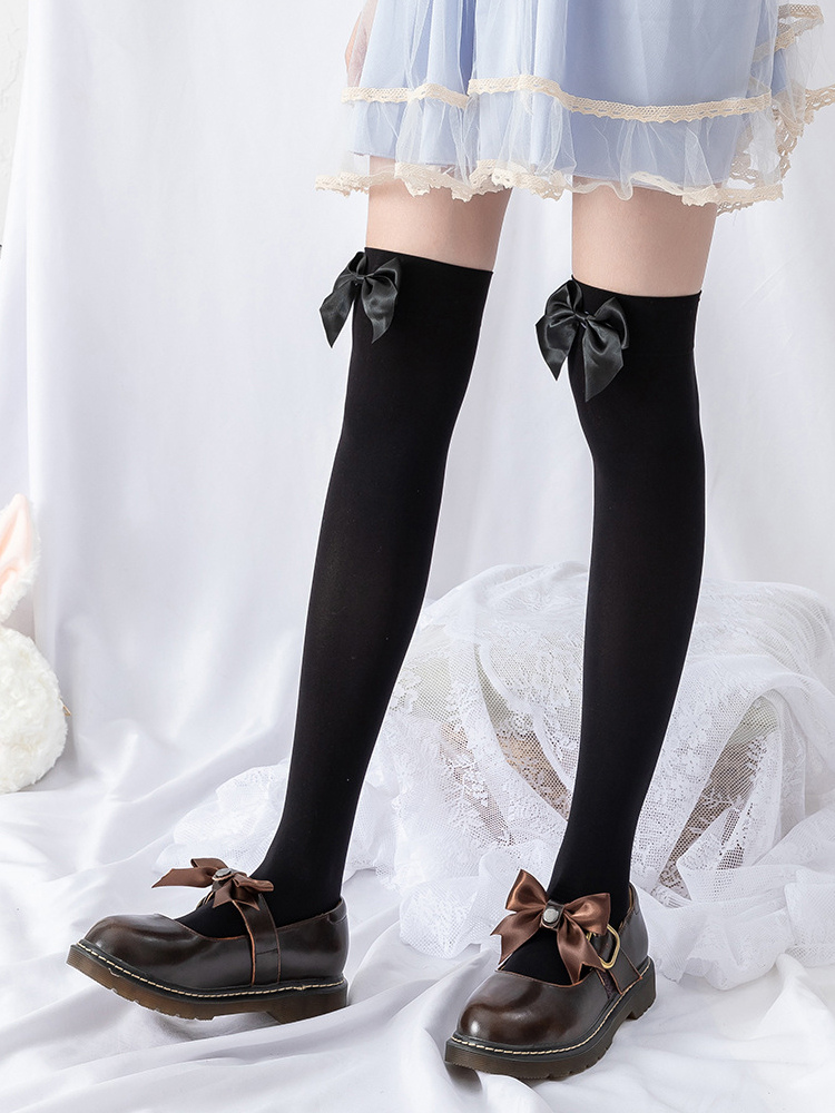 クラシックロリータソックス、黒のリボン、ピンクのベルベット、かわいいサイハイソックス、リボンニーハイソックス、スイートロリータソックス