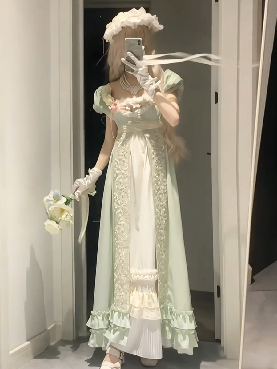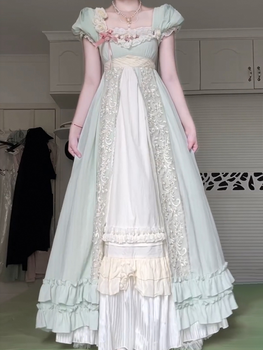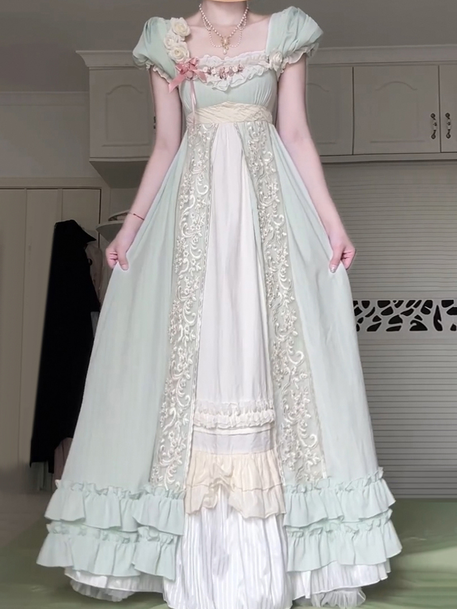 フェアリーロリータドレス グリーンフリル 半袖ドレス