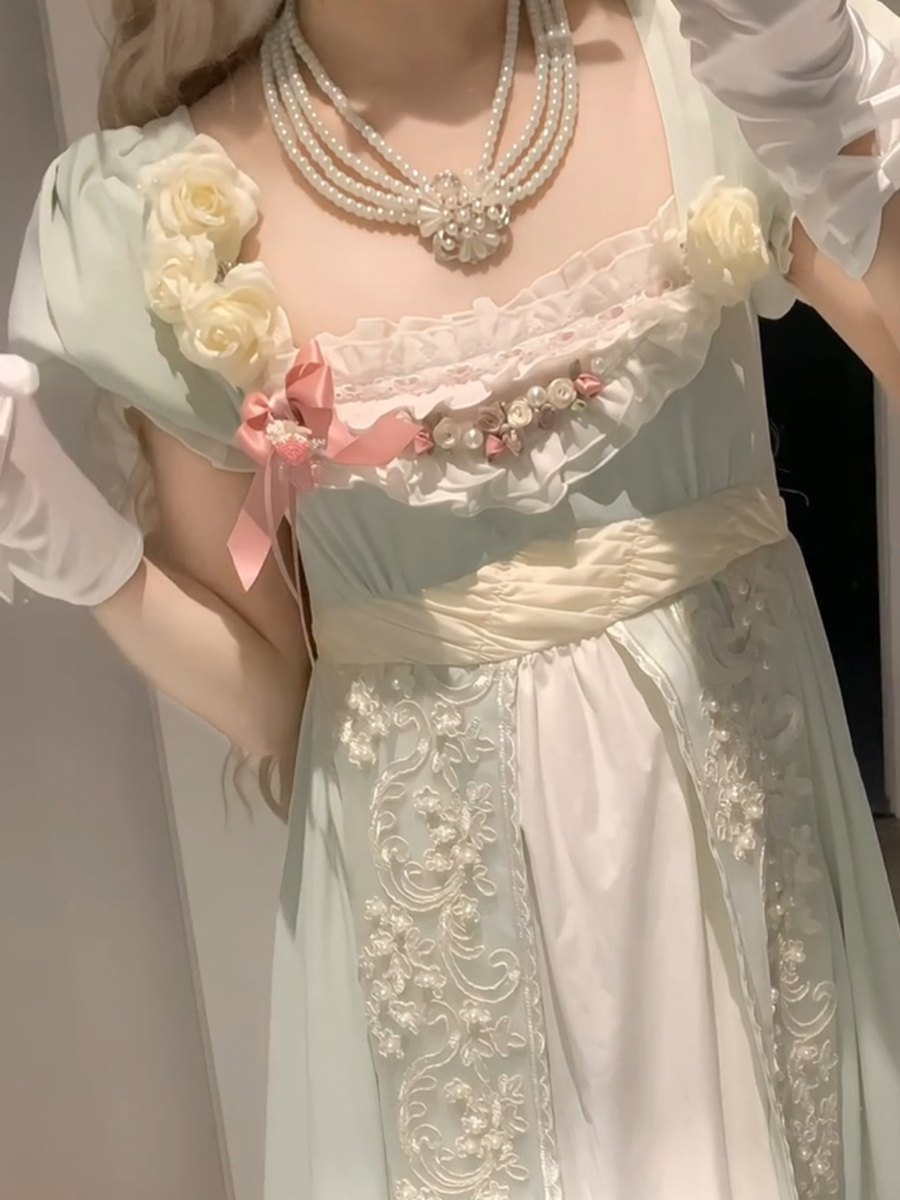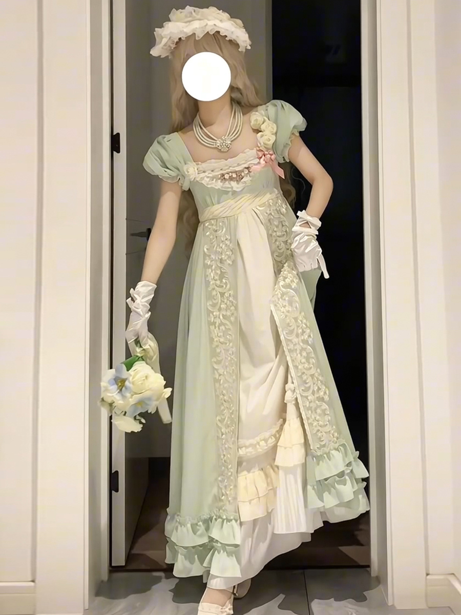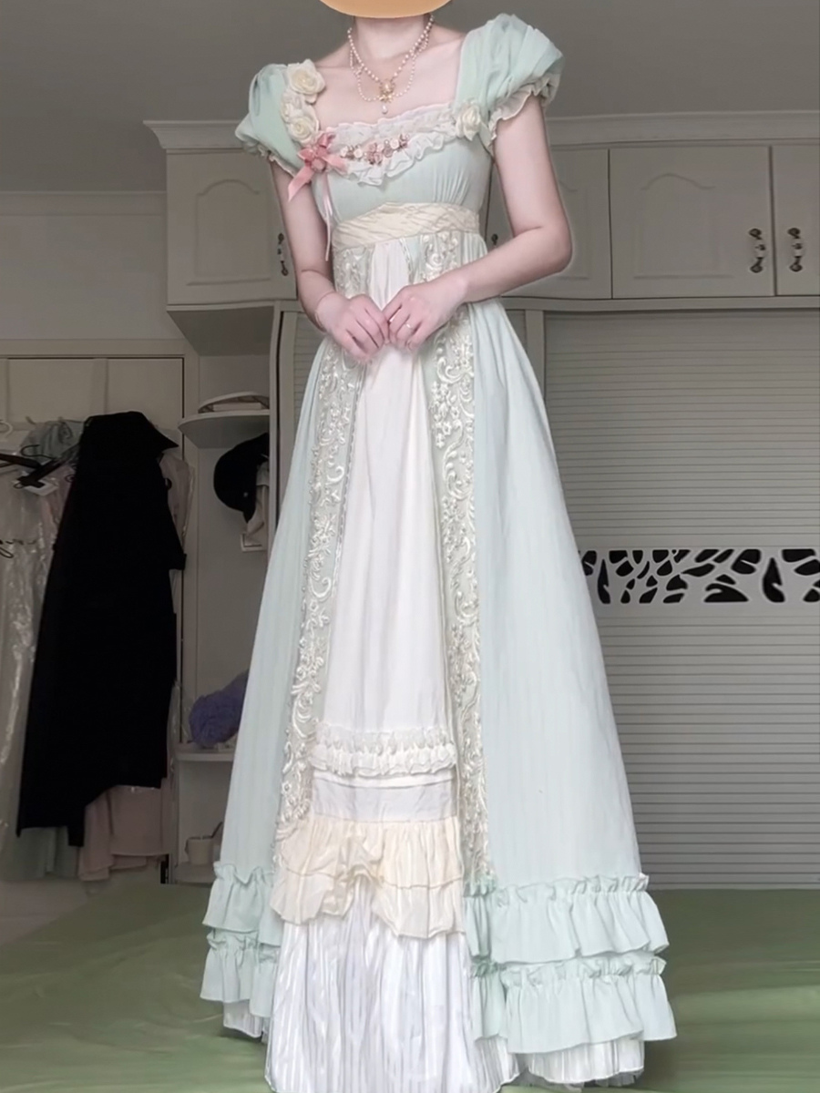 フェアリーロリータドレス グリーンフリル 半袖ドレス