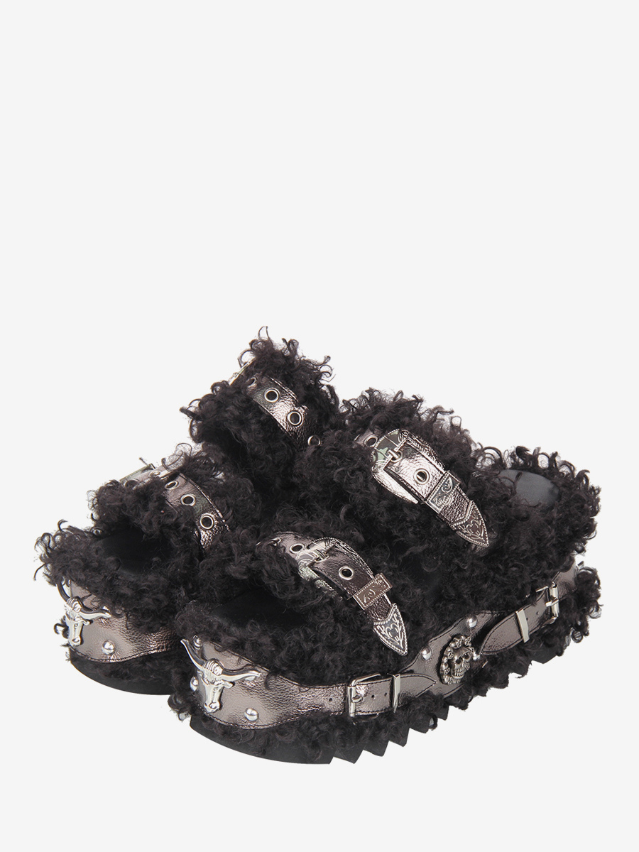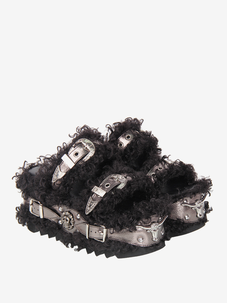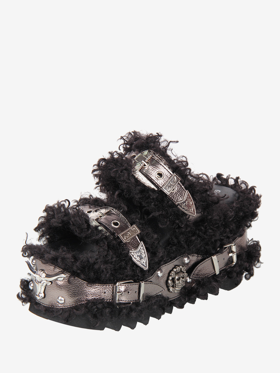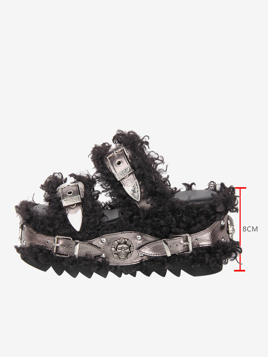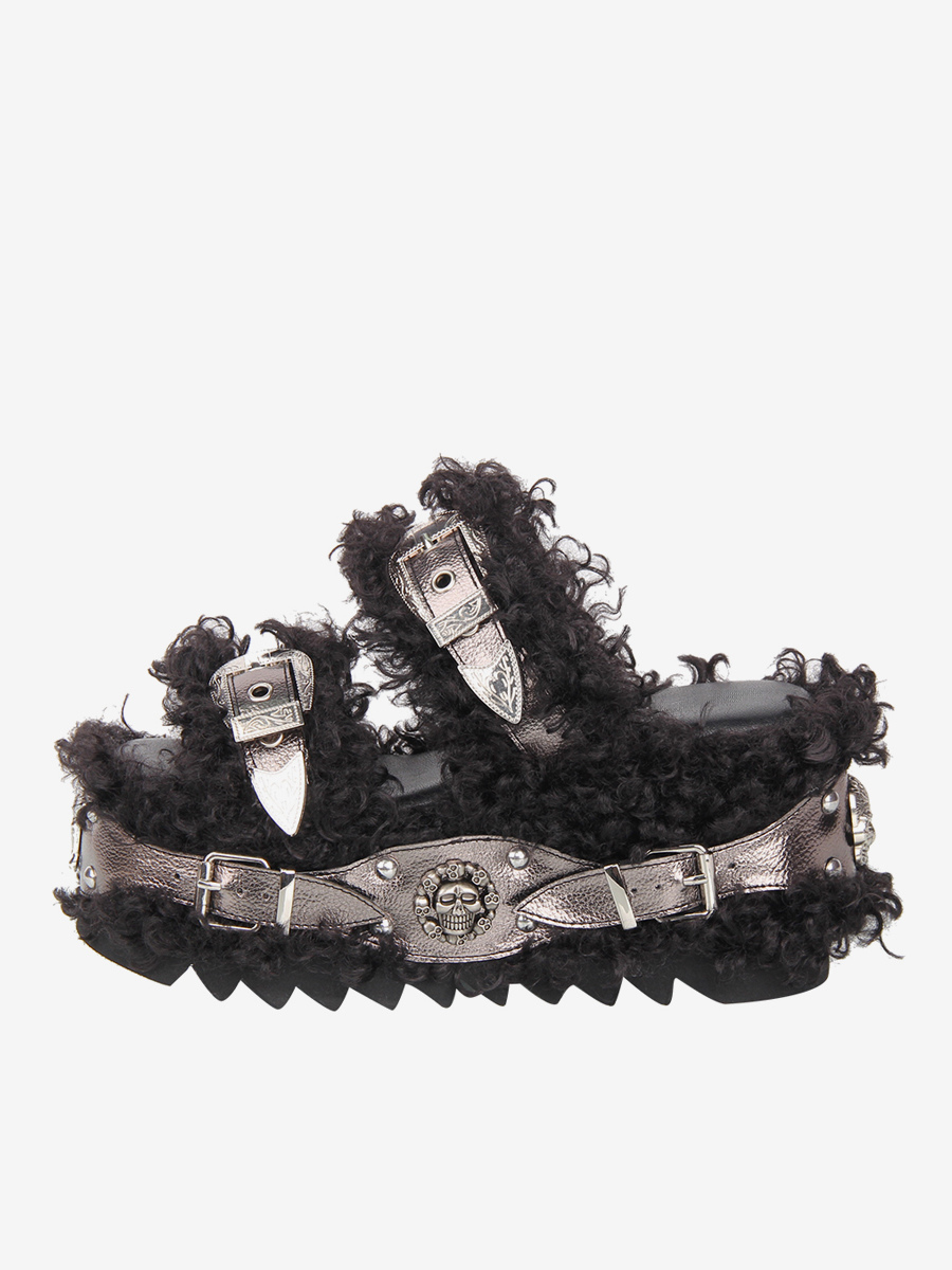 ゴシックロリータサンダル グロメット ラウンドトゥ PUレザー ブラック ウェッジヒール ロリータ サマーシューズ