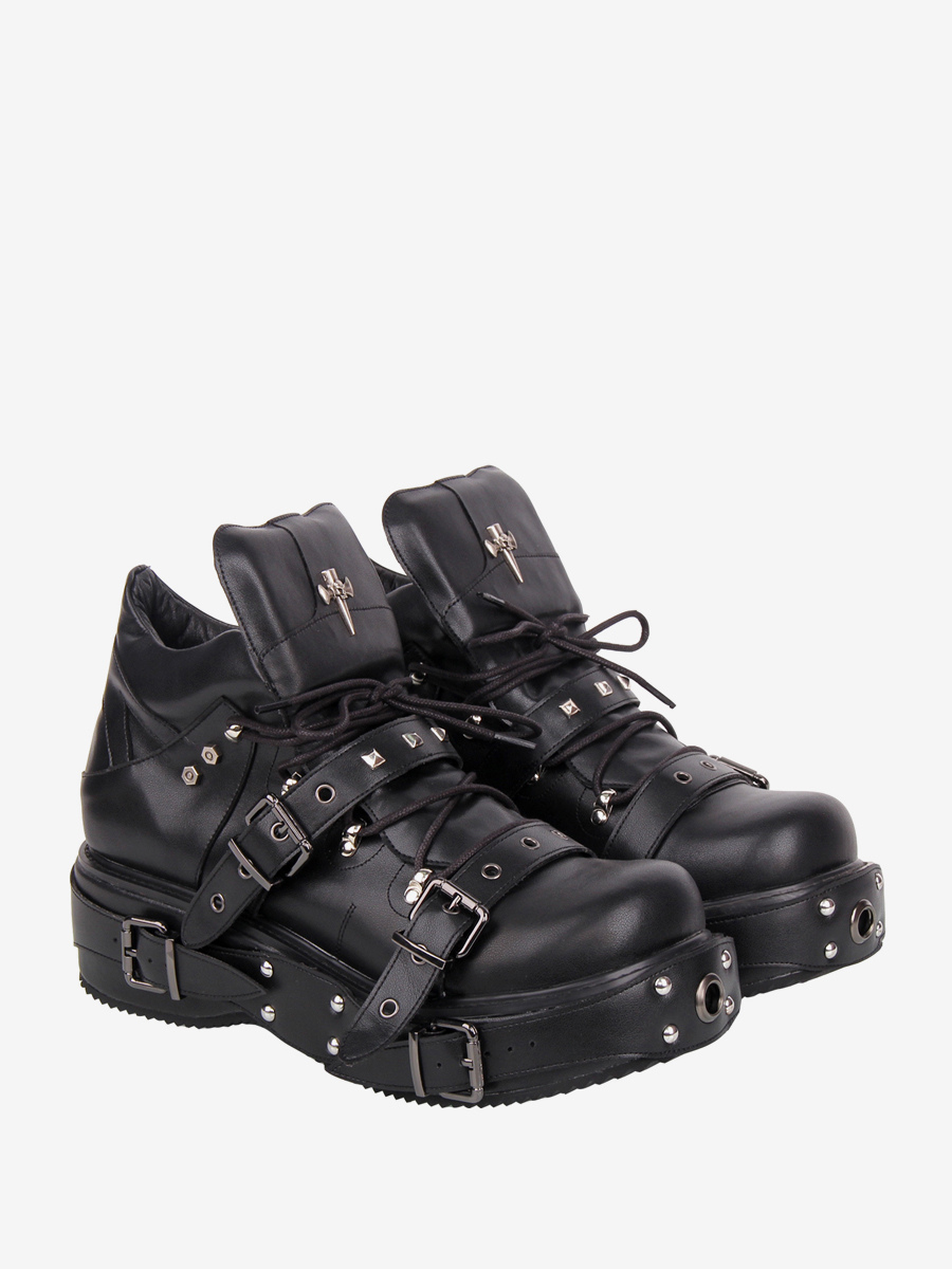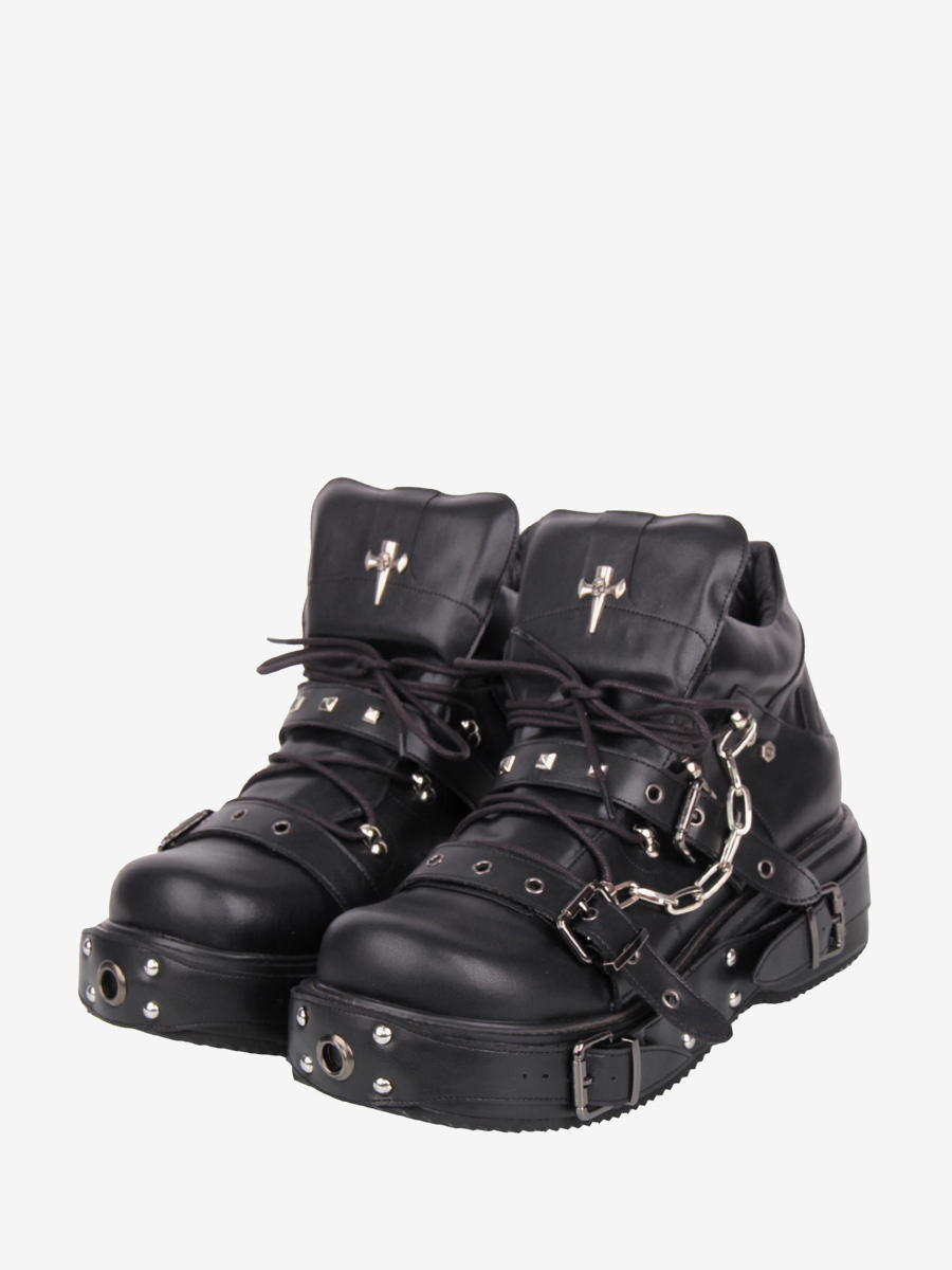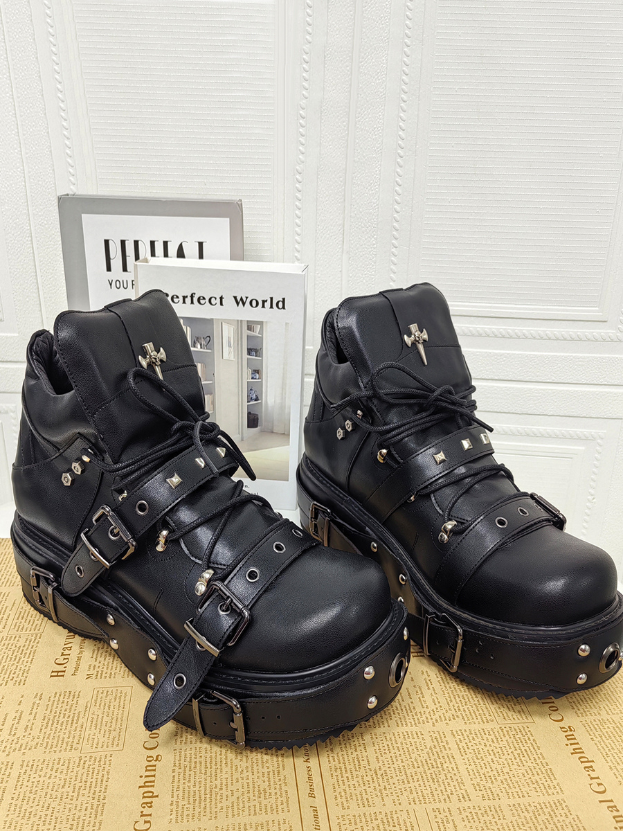 ゴシックロリータシューズ ブラック グロメット PUレザー ウェッジヒール ロリータパンプス