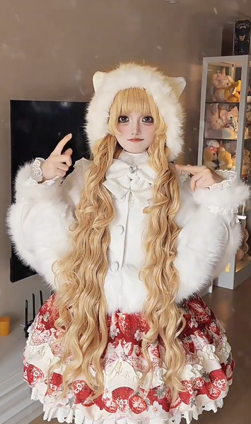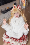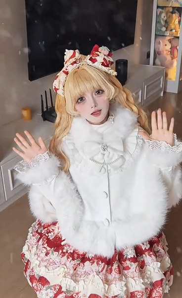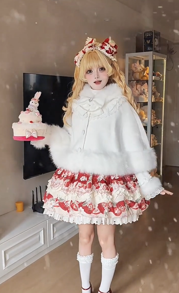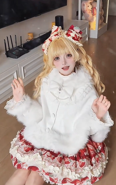 ロリータコート ホワイト リボン オーバーコート 長袖 冬用 ロリータコート マント