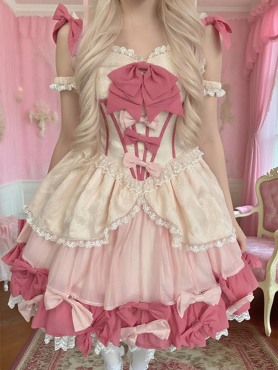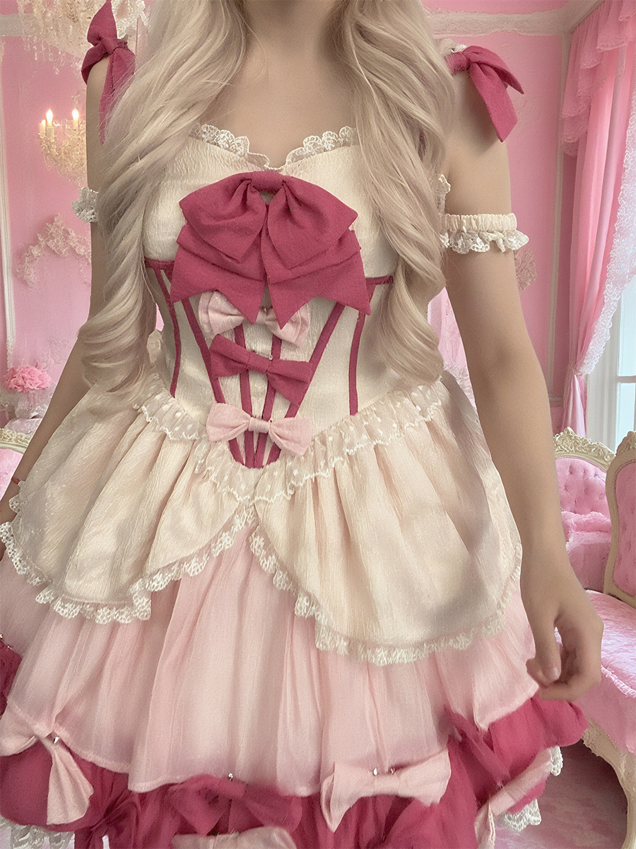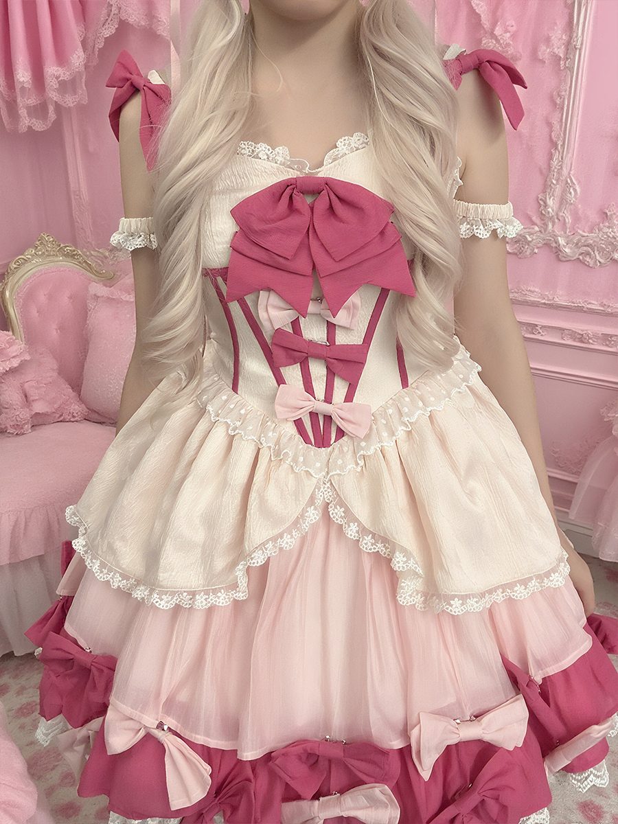 フェアリーロリータ Lolitashow スイートロリータドレス ポリエステル ノースリーブ リボン JSK ウェディングロリータドレス