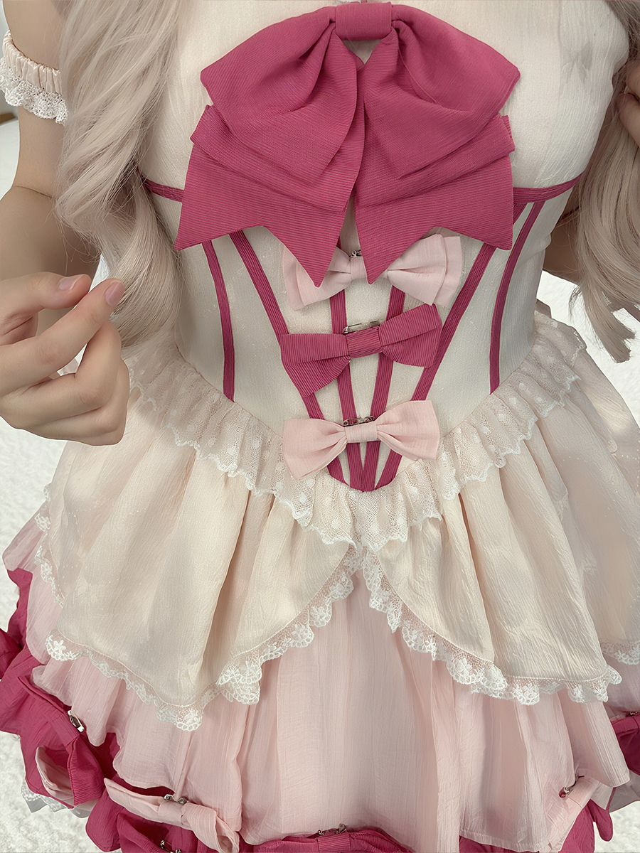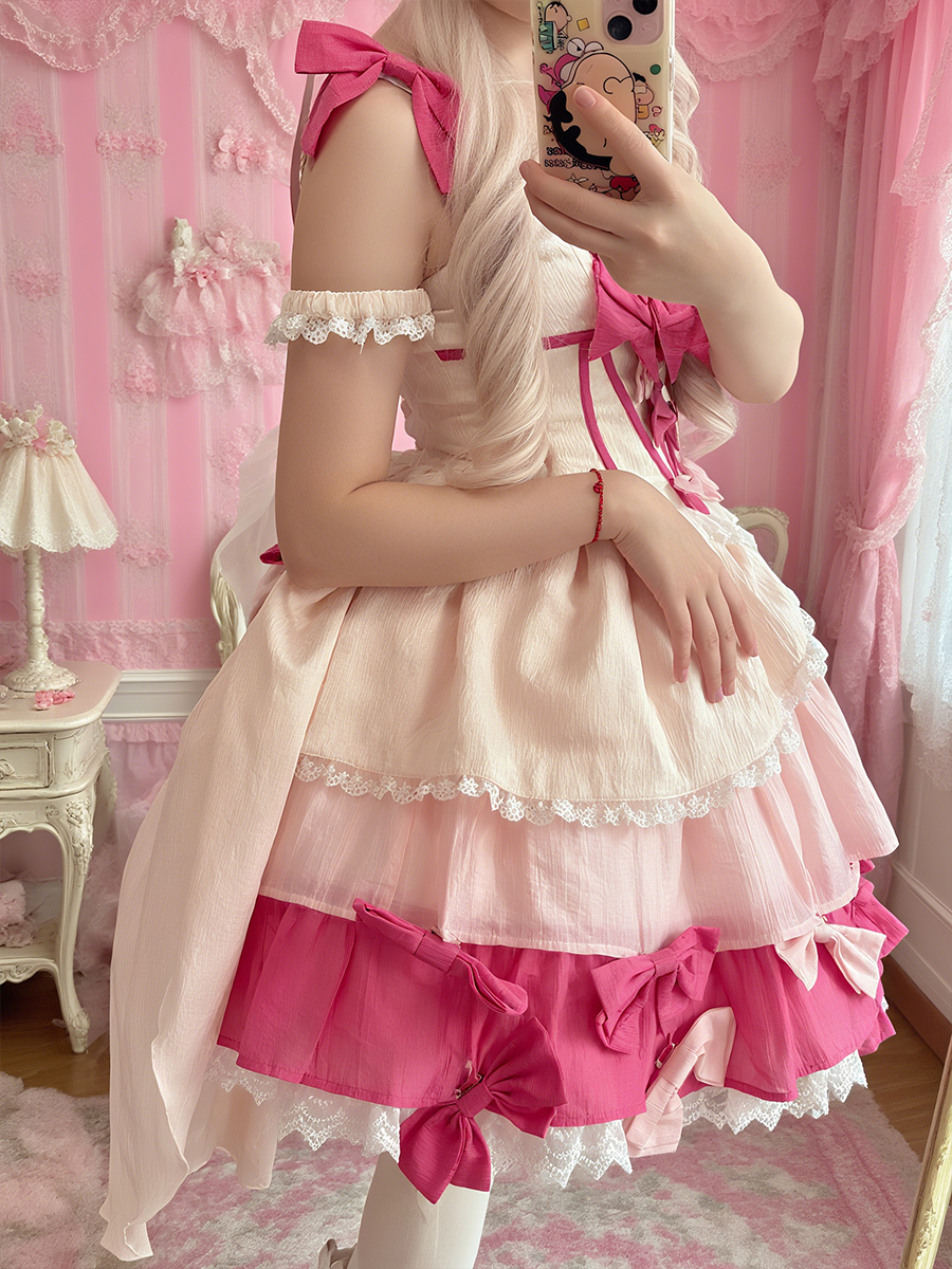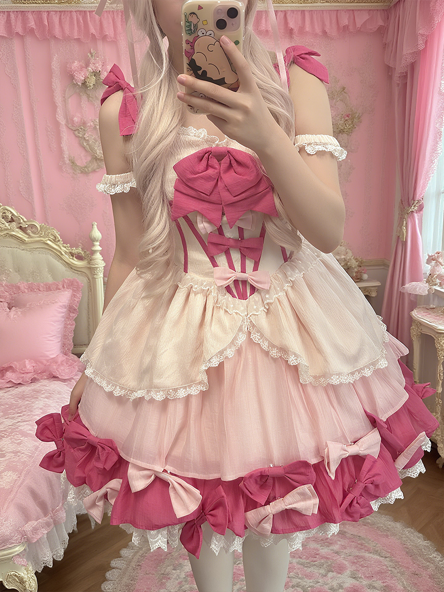 フェアリーロリータ Lolitashow スイートロリータドレス ポリエステル ノースリーブ リボン JSK ウェディングロリータドレス