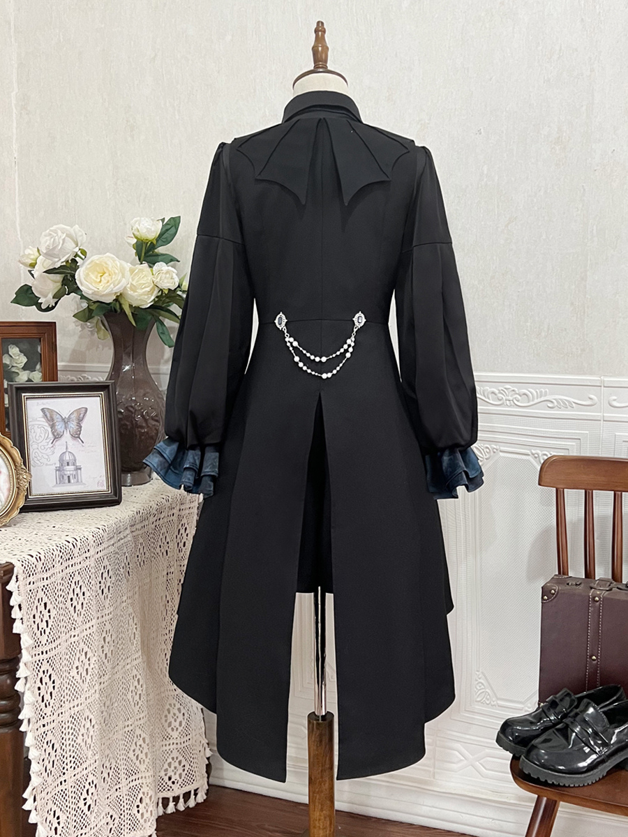 王子ロリータゴシックブラックパンツロングスリーブクラシックフリルオーバーコートクラバットドレスセット