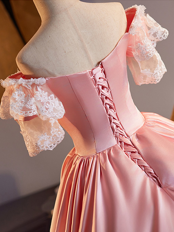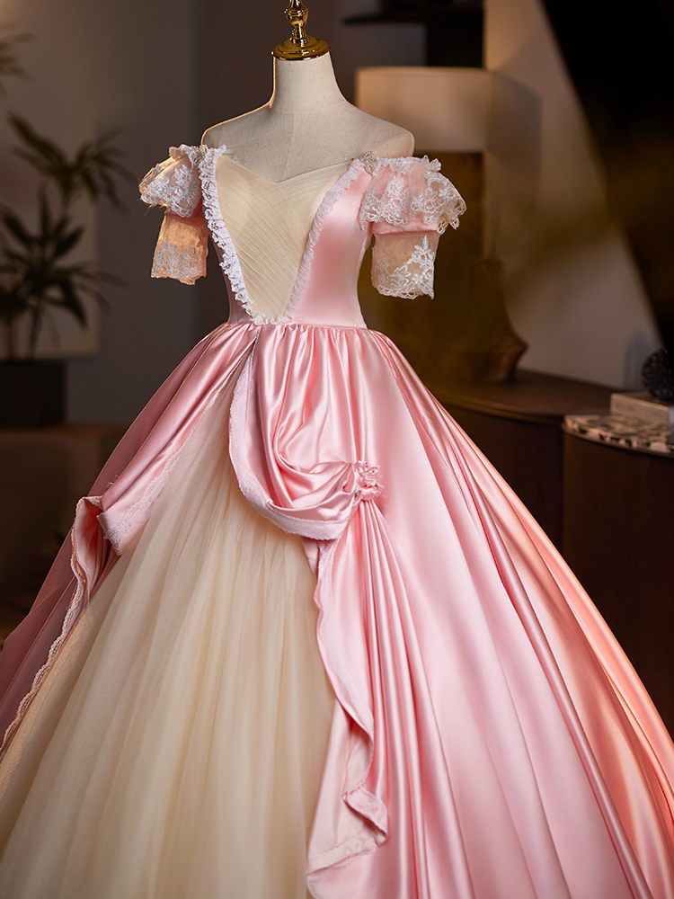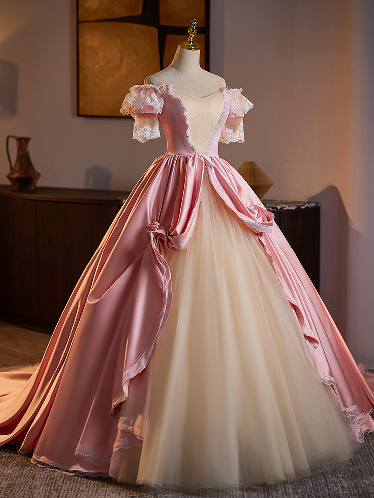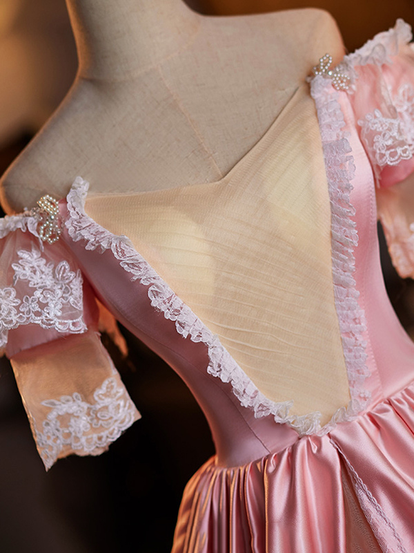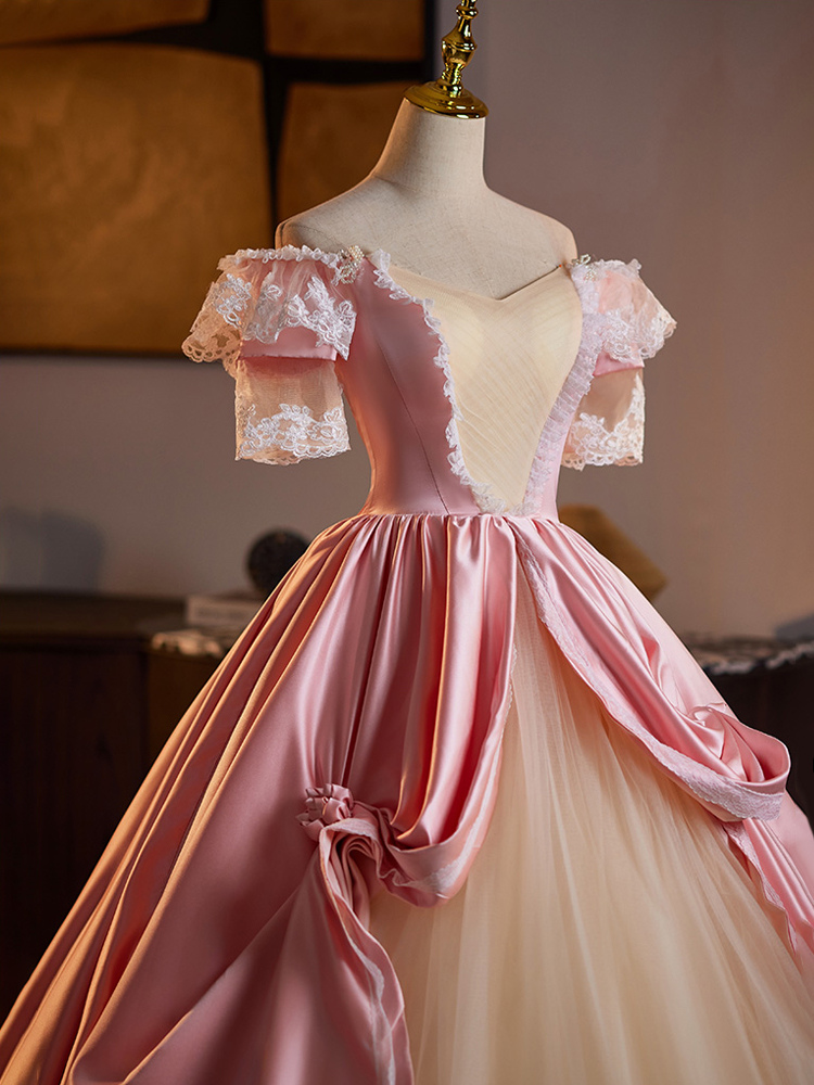 ロココ調レディースドレス ヴィンテージ 半袖 レース 編み上げ ツートン ボールガウン