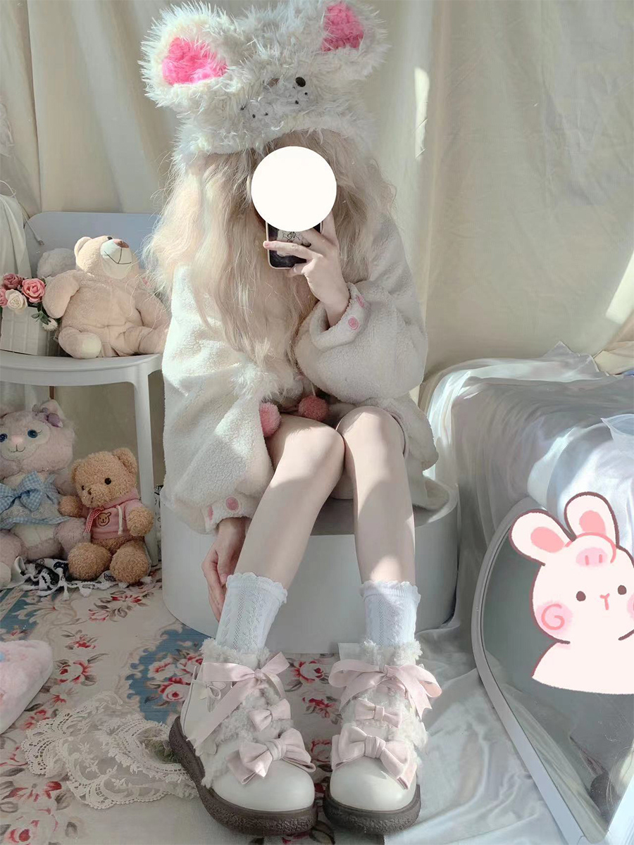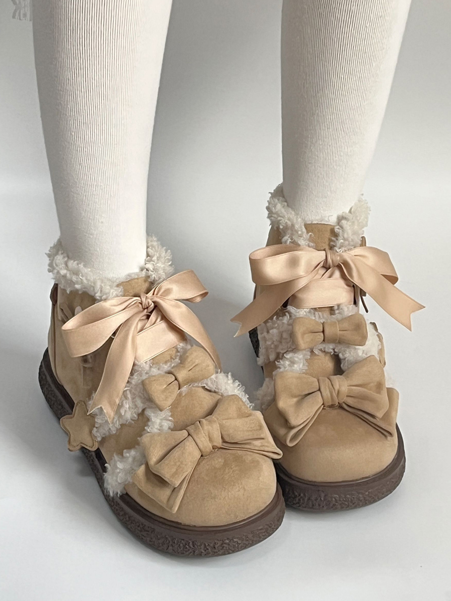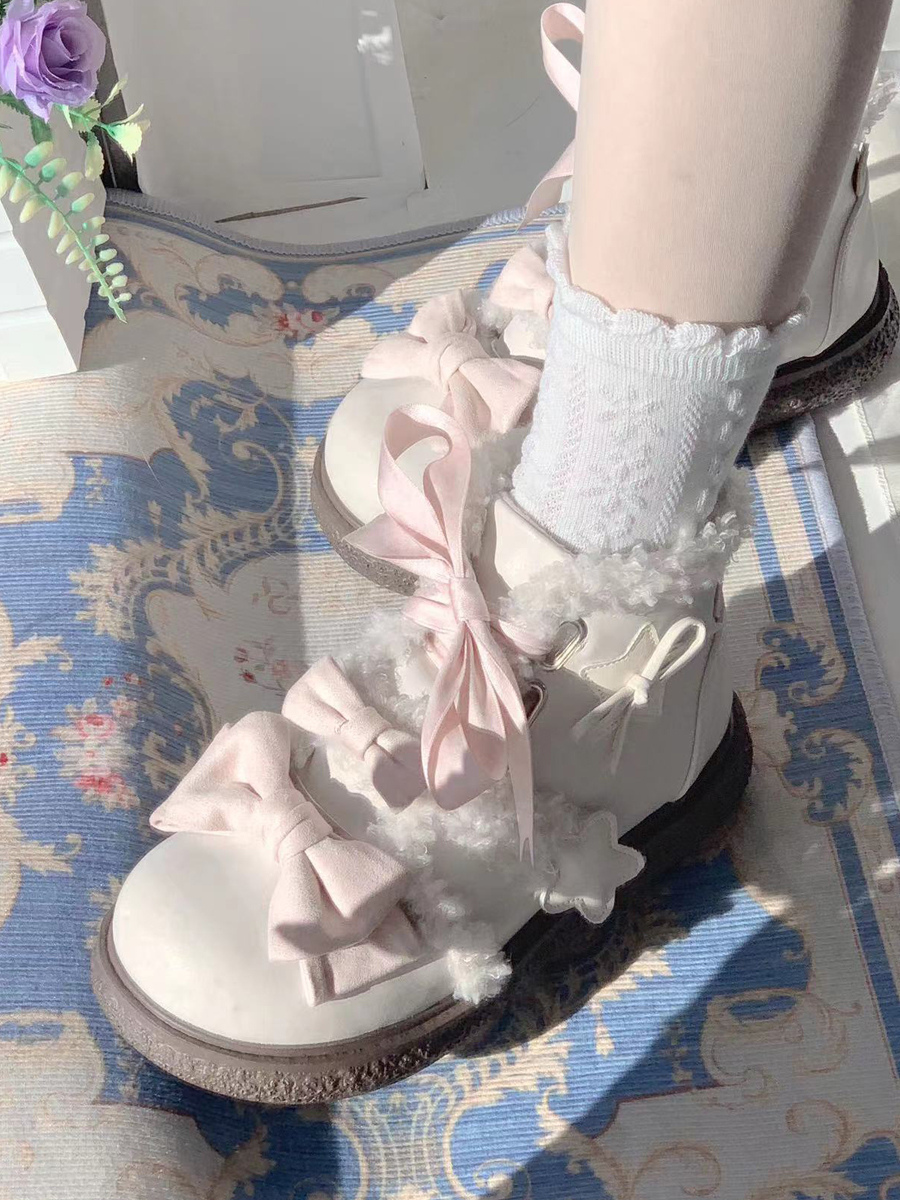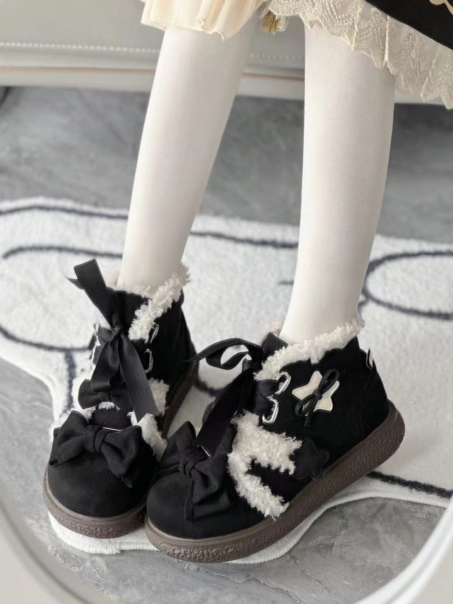 スイートロリータシューズ ブラックリボン マイクロスエードアッパー フラットロリータパンプス