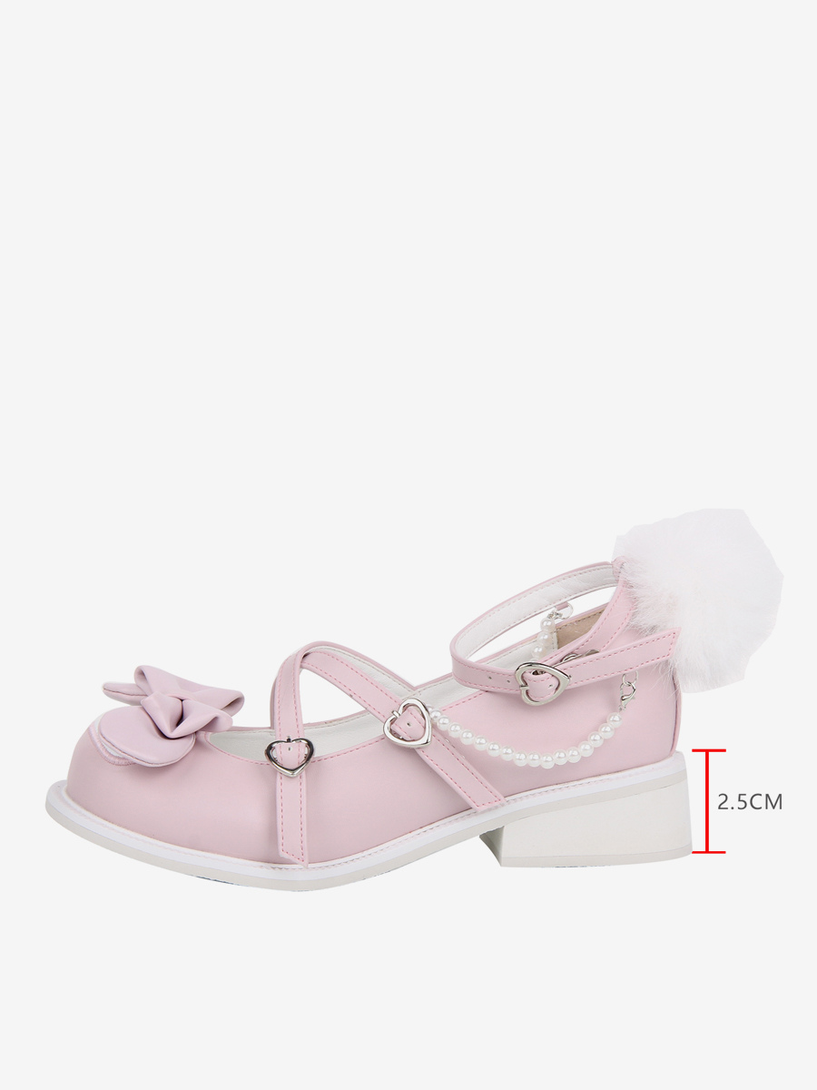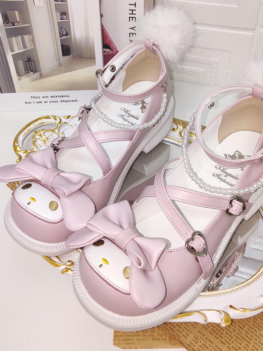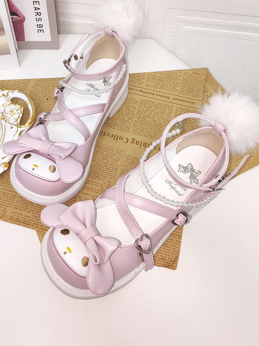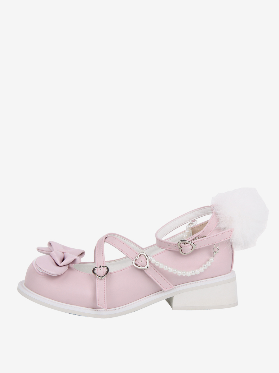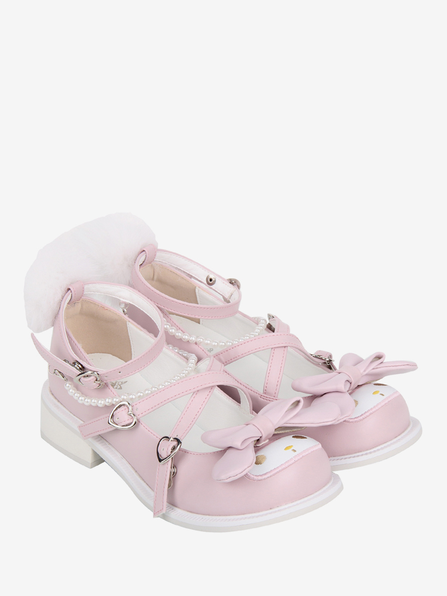 スイートロリータシューズ ピンクリボン ラウンドトゥ PUレザー フラットロリータシューズ