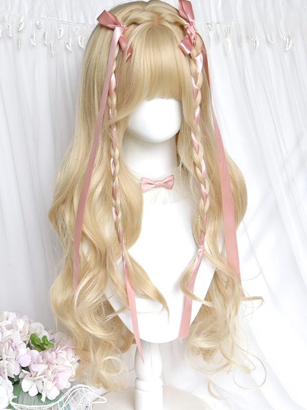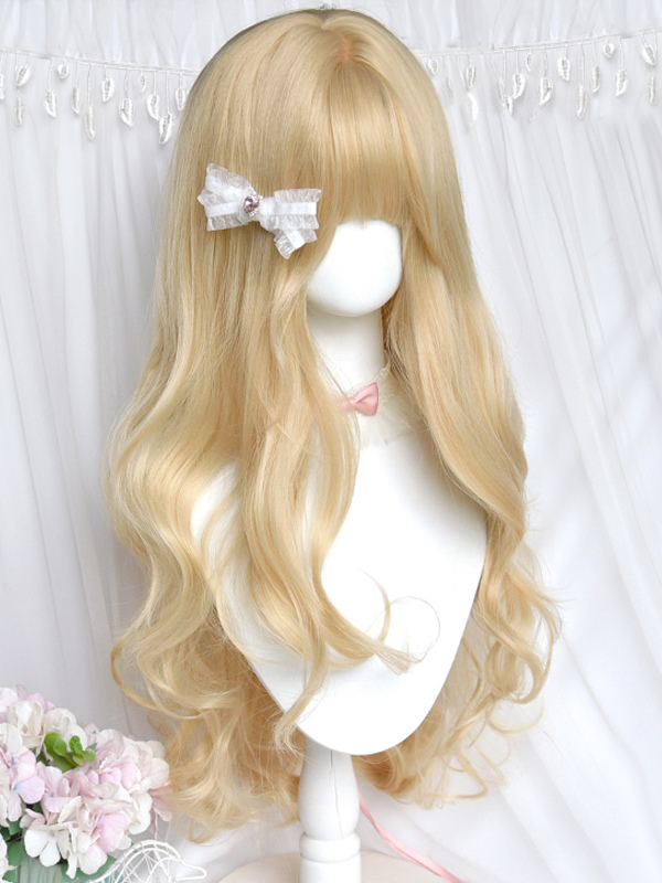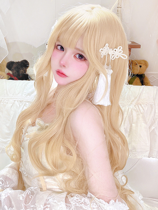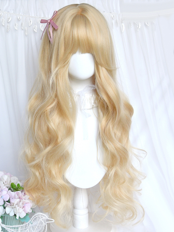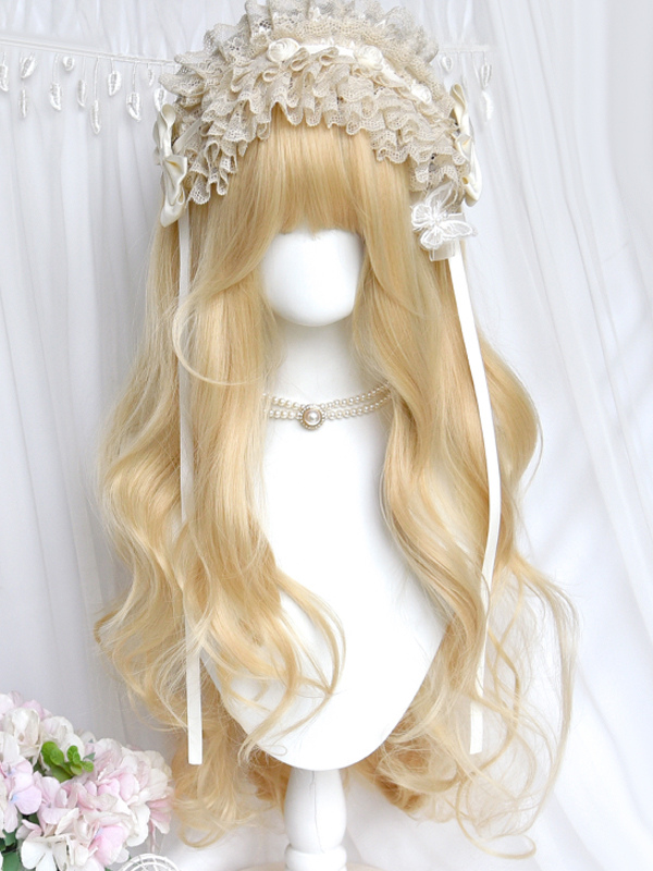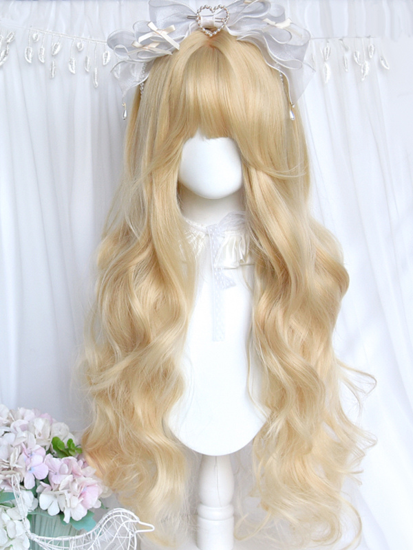 Sweet Lolita Wig Light Gold Heat-resistant Fiber Lolita Accessories Platinum Blonde 80cm Layered Curly Elegant Doll-style Wavy Synthetic Hair